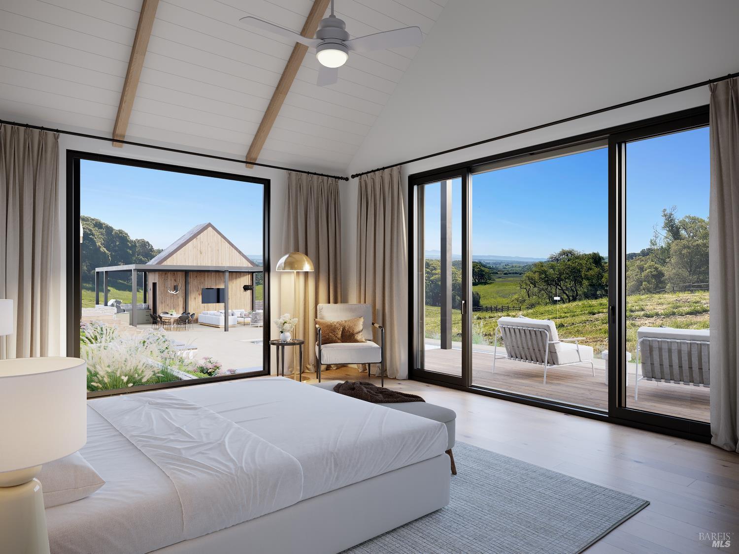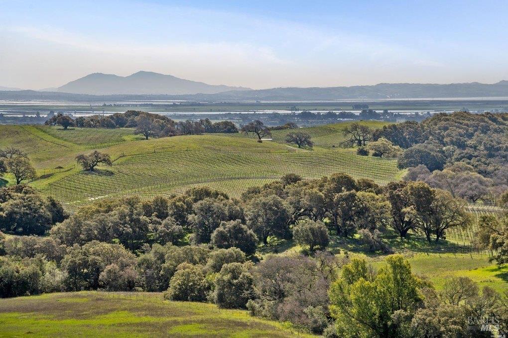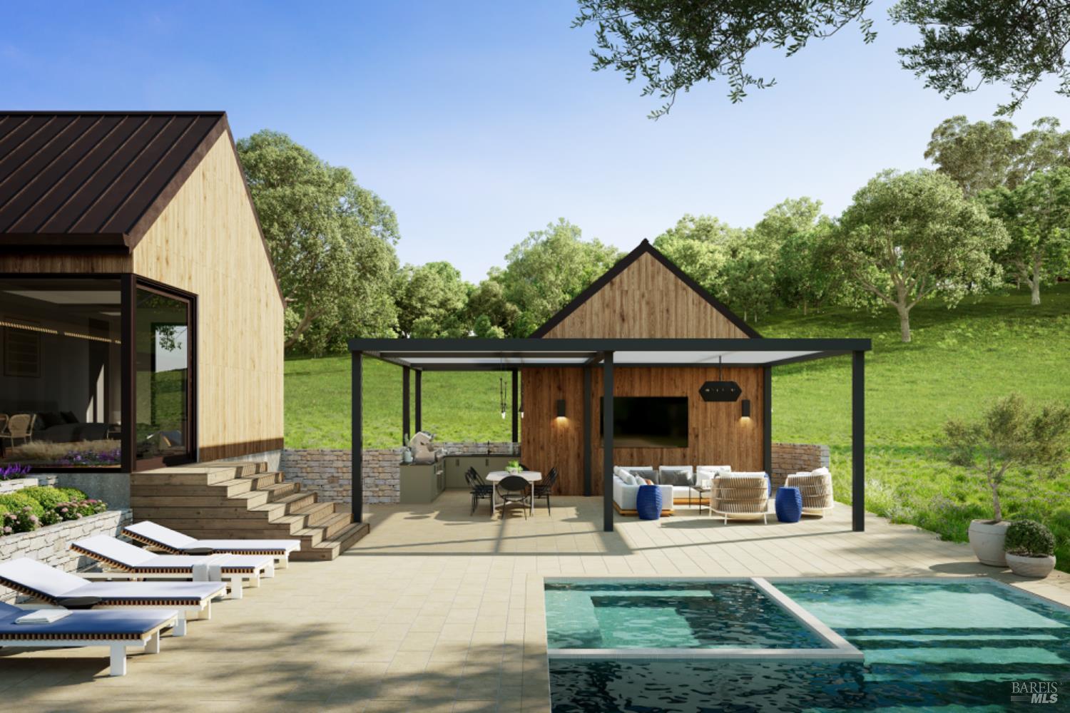 Exceptional new-build wine country estate in the gated George Ranch community. Just 45 min from San Francisco & 4.5 miles to Sonoma Plaza, this private 6.8-acre property offers sweeping vineyard, Mt. Diablo & Bay views. Approx. 5,000 sq ft single-level U-shaped design with 5 bedrooms, 6 baths and open-concept living. Luxury finishes include custom white oak cabinetry, Viola & Calacatta marble, Waterworks fixtures, Viking refrigeration, Wolf range, and butler's kitchen. 2 fireplaces, temp-controlled wine cellar, AV system, solar power & Toto toilets. Resort-style pool with spa & Baja shelf, cabana with outdoor kitchen & bath. 3-car garage plus guest parking. Community amenities: private hiking/equestrian trails & tennis court. Firewise accredited. Spring 2026 delivery with opportunity to customize finishes. Rare blend of privacy, luxury & convenience in the heart of Sonoma County wine country. Purchasing now provides the unique opportunity to select and customize final finishes, fixtures, and design details, ensuring the home reflects your personal style. With construction well underway, the completed estate is expected to command a significantly higher value upon delivery, offering both a bespoke residence and an exceptional investment *Photos of finished home are renderings