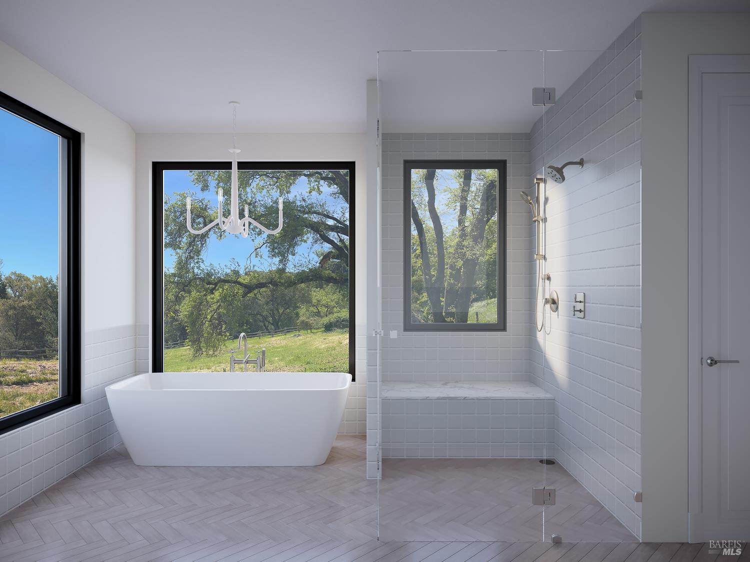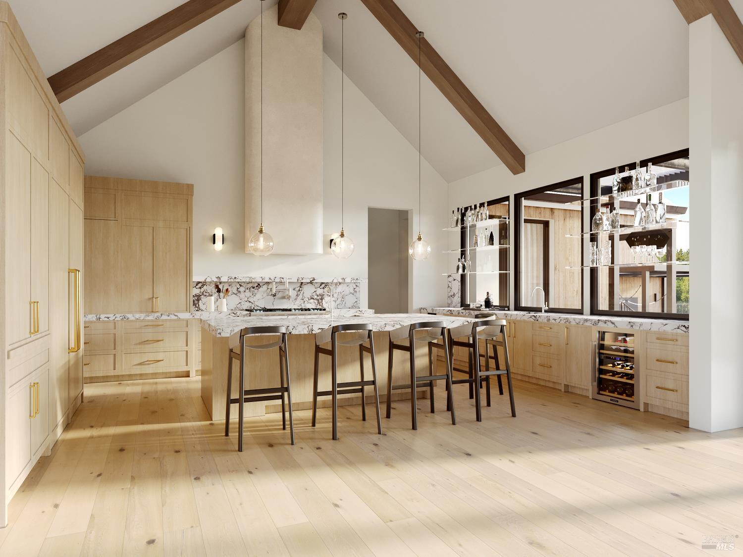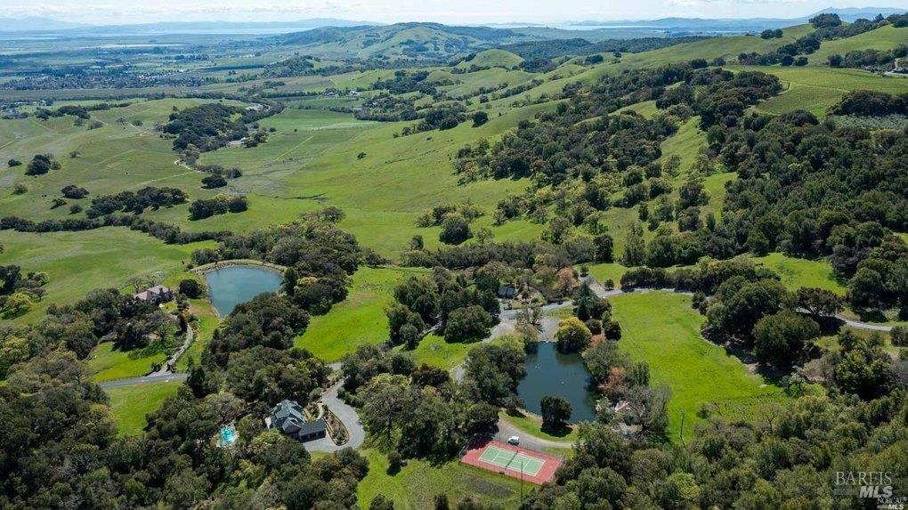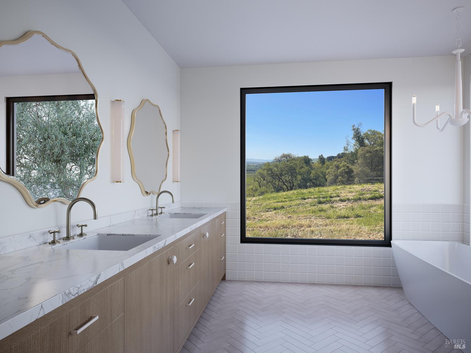 Exceptional new-build wine country estate in the gated George Ranch community. Just 45 min from San Francisco & 4.5 miles to Sonoma Plaza, this private 6.8-acre property offers sweeping vineyard, Mt. Diablo & Bay views. Approx. 5,000 sq ft single-level U-shaped design with 5 bedrooms, 6 baths and open-concept living. Luxury finishes include custom white oak cabinetry, Viola & Calacatta marble, Waterworks fixtures, Viking refrigeration, Wolf range, and butler's kitchen. 2 fireplaces, temp-controlled wine cellar, AV system, solar power & Toto toilets. Resort-style pool with spa & Baja shelf, cabana with outdoor kitchen & bath. 3-car garage plus guest parking. Community amenities: private hiking/equestrian trails & tennis court. Firewise accredited. Spring 2026 delivery with opportunity to customize finishes. Rare blend of privacy, luxury & convenience in the heart of Sonoma County wine country. Purchasing now provides the unique opportunity to select and customize final finishes, fixtures, and design details, ensuring the home reflects your personal style. With construction well underway, the completed estate is expected to command a significantly higher value upon delivery, offering both a bespoke residence and an exceptional investment *Photos of finished home are renderings
