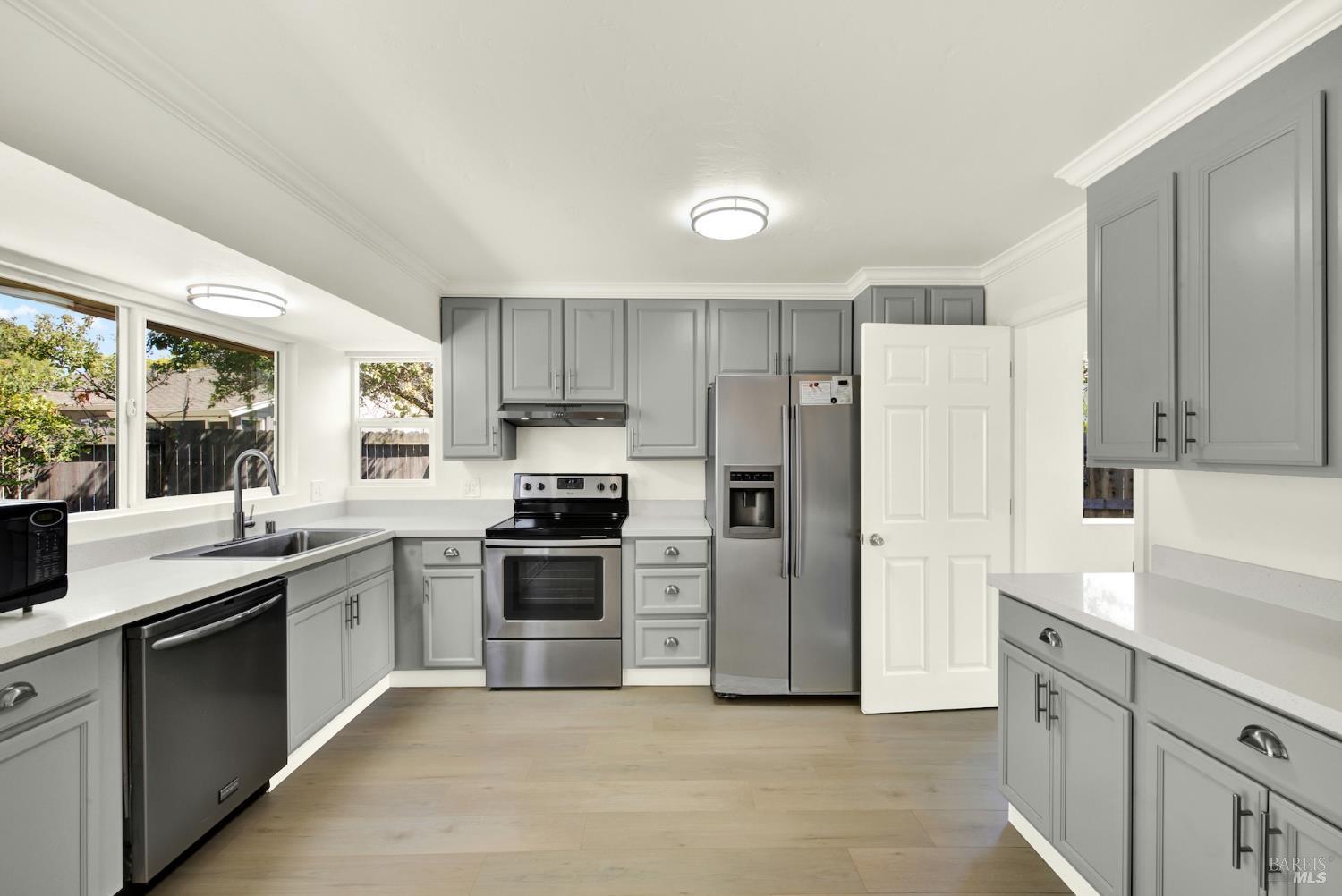 Welcome to this beautifully updated home, where modern style meets comfort. Step inside to find brand new windows, fresh interior and exterior paint, and new flooring throughout, including plush carpet in the bedrooms. The kitchen has been thoughtfully renovated with sleek quartz countertops, recessed lighting, and updated finishes, while the bathrooms have been refreshed with the same attention to detail. A newer AC provides peace of mind, ensuring efficiency and reliability for years to come. Outside, new landscaping enhances the curb appeal, and the expansive backyard offers endless possibilities for entertaining, gardening, or creating your dream outdoor retreat.