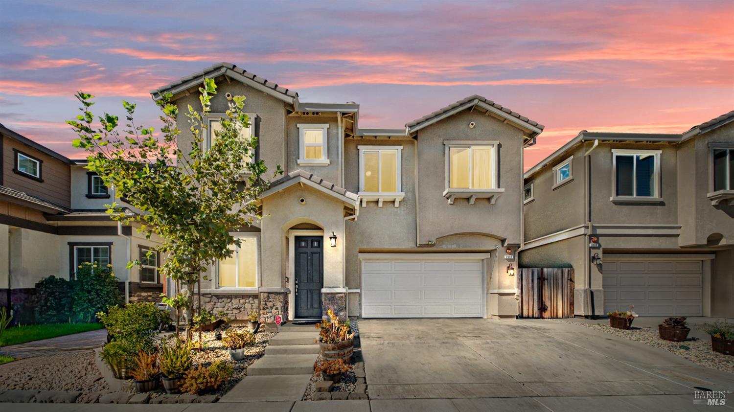 Beautiful spacious home comes with an assumable low interest rate VA loan. Built in 2021, this newer 4bd/2.5ba, 2-story, 2357sf attached home features a well-designed floor plan w/separate fam/living rooms, formal dining area, an upstairs loft area, and a large open kitchen appointed with a full-sized breakfast bar island, granite counters, pantry and SS appliances. Other features include a fireplace, raised ceilings, 8' paneled doors, spacious bdrms, tile and laminate flooring, ceiling fans, upstairs laundry room, tankless water heater, 2-car garage and low maintenance yards. The bathrooms have dual sinks, w/the primary bathroom also sporting a deep soaking tub, shower stall and huge walk-in closet. For the energy wary, this home comes with solar to help minimize your electric bill. Plus, don't miss the neighborhood park & playground! Additionally, with EZ access to Travis AFB this one checks off all the boxes!