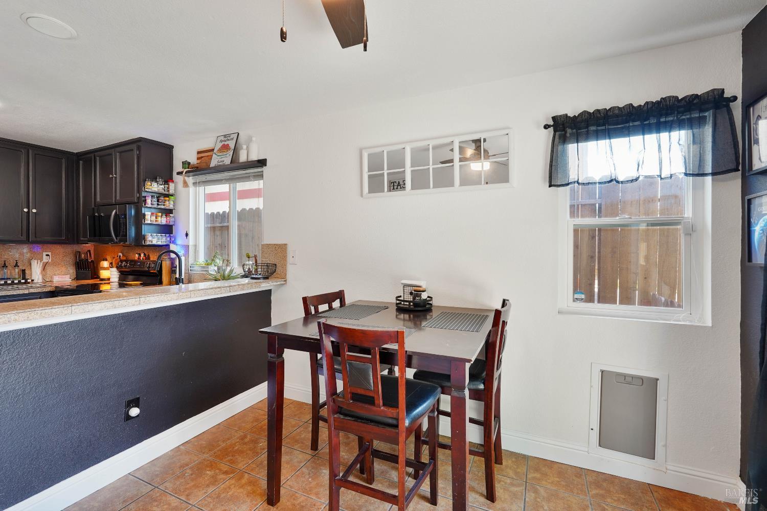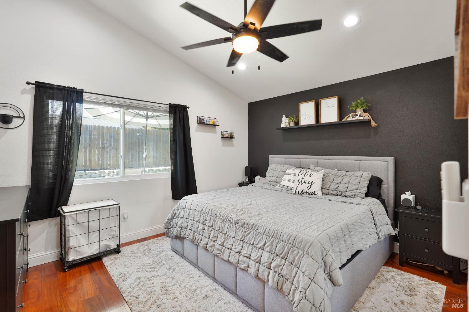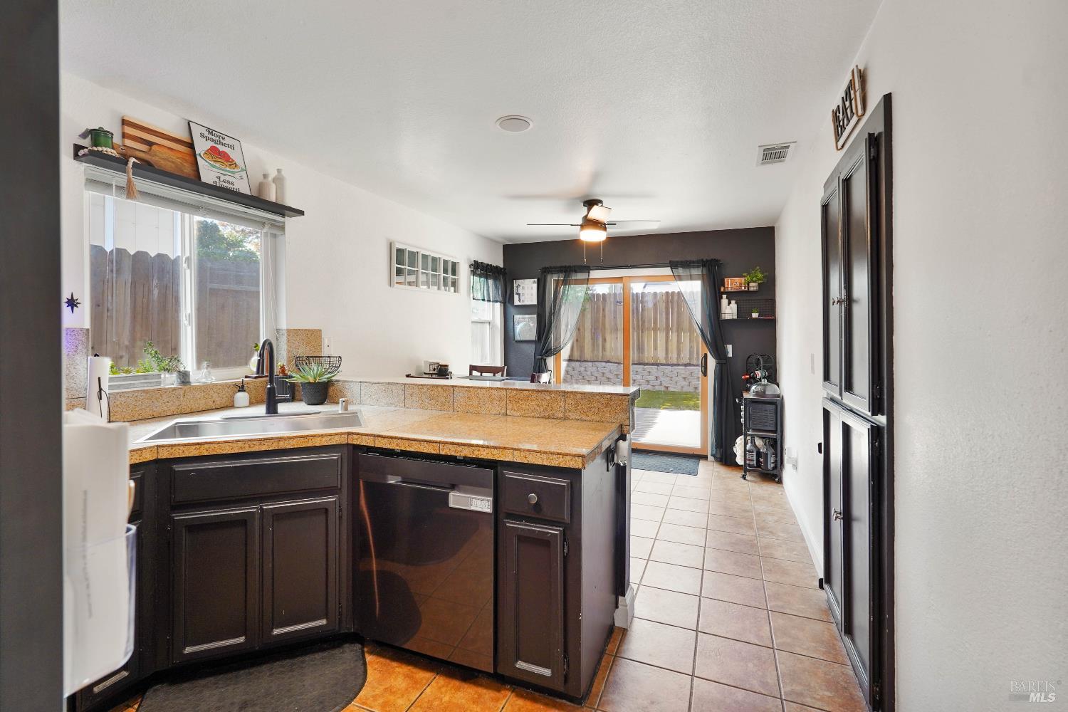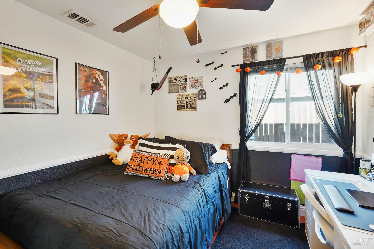 This Foxwood single story blends style, comfort, and smart efficiency. Inside, the kitchen shines with black stainless steel appliances while fresh ceiling fans, a whole house fan, and a brand new electric furnace and A/C system keep the space feeling just right. The primary suite has its own added vent for perfect airflow, and the new smart thermostat makes control effortless. Efficiency is the star here with 32 solar panels that keep the PG&E bill usually under ten dollars. A brand new water heater with warranty adds peace of mind, and every detail has been updated so you can move right in and start enjoying. Out back, the turf and extended concrete create a space made for summer BBQs, weekend projects, or just kicking back with friends. There's boat parking, a welcoming front porch, and side yard access for extra convenience. Set in a quiet neighborhood within Travis Unified School District, close to parks and schools, this home makes daily life easy and the weekends even better.