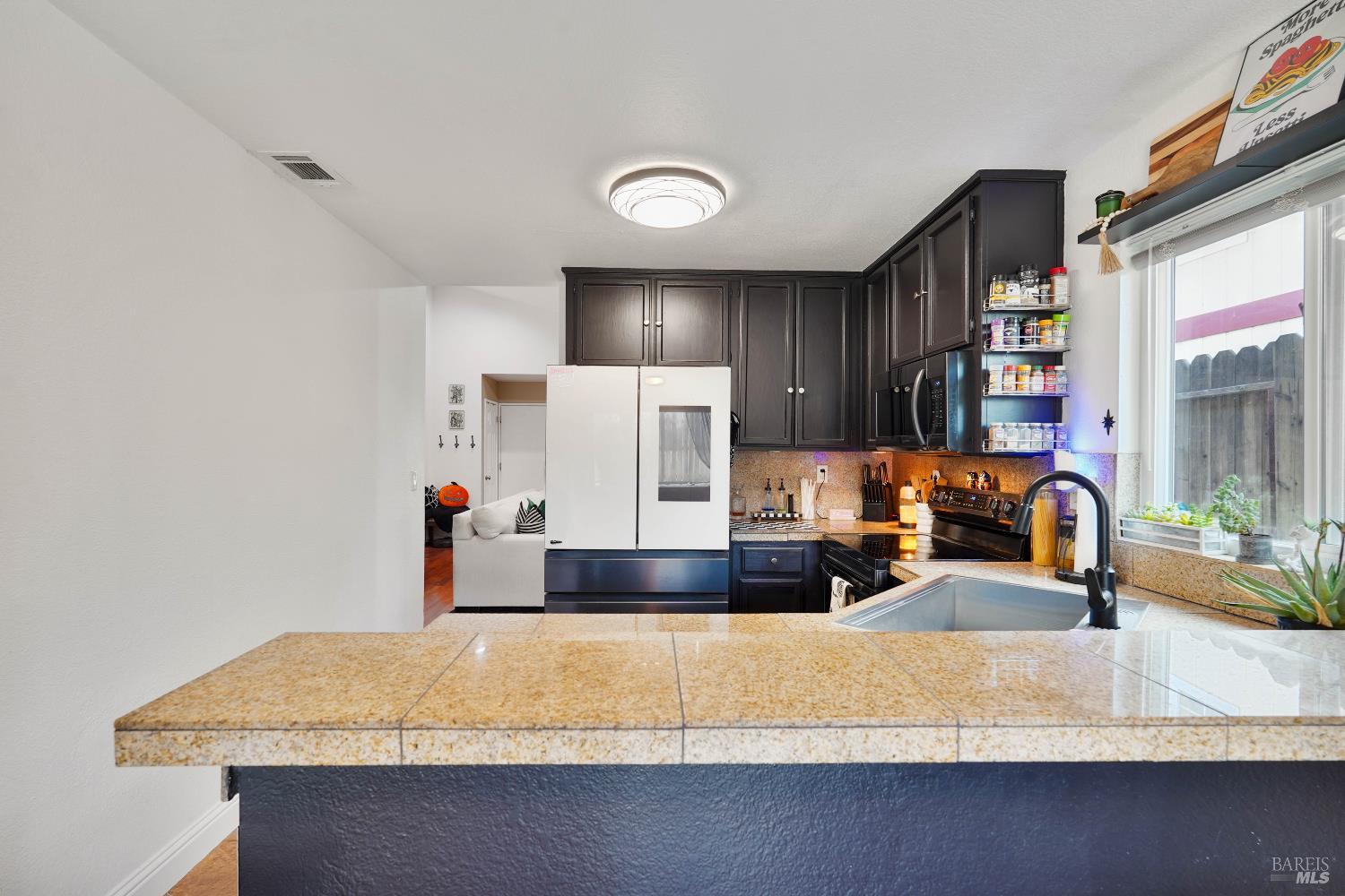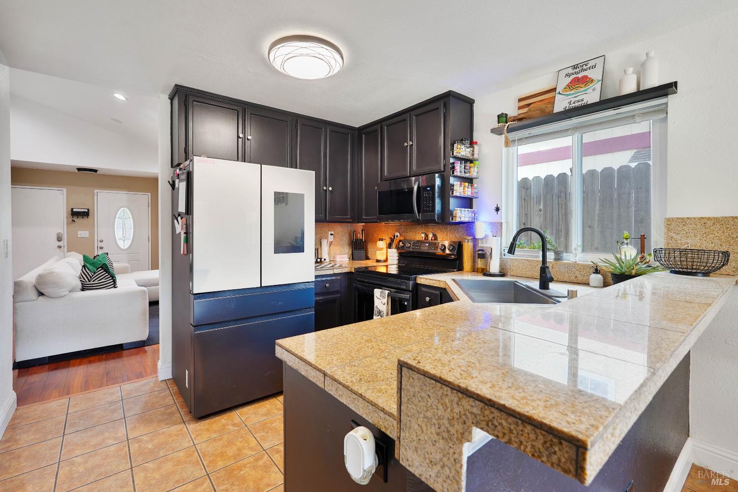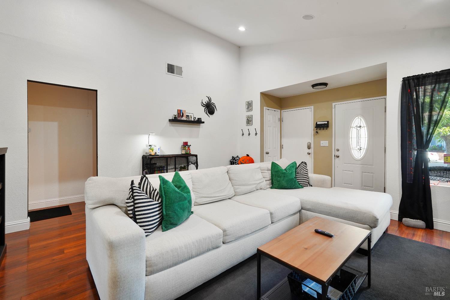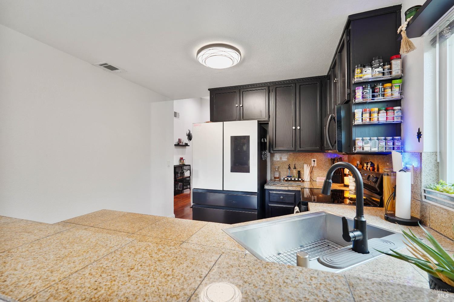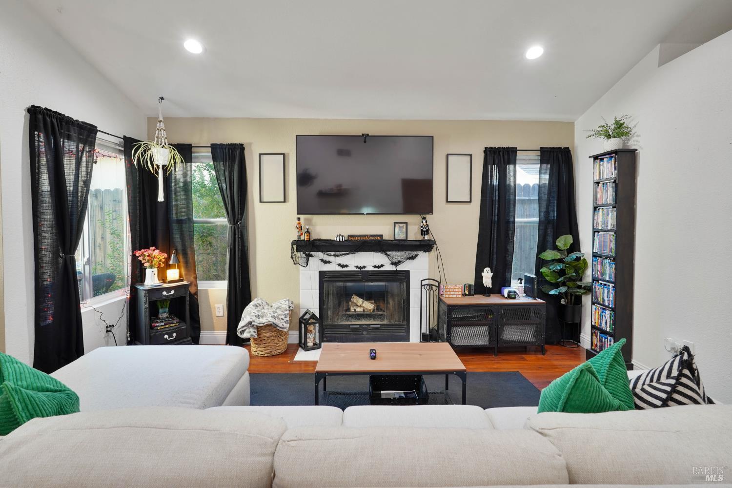 This Foxwood single story blends style, comfort, and smart efficiency. Inside, the kitchen shines with black stainless steel appliances while fresh ceiling fans, a whole house fan, and a brand new electric furnace and A/C system keep the space feeling just right. The primary suite has its own added vent for perfect airflow, and the new smart thermostat makes control effortless. Efficiency is the star here with 32 solar panels that keep the PG&E bill usually under ten dollars. A brand new water heater with warranty adds peace of mind, and every detail has been updated so you can move right in and start enjoying. Out back, the turf and extended concrete create a space made for summer BBQs, weekend projects, or just kicking back with friends. There's boat parking, a welcoming front porch, and side yard access for extra convenience. Set in a quiet neighborhood within Travis Unified School District, close to parks and schools, this home makes daily life easy and the weekends even better.