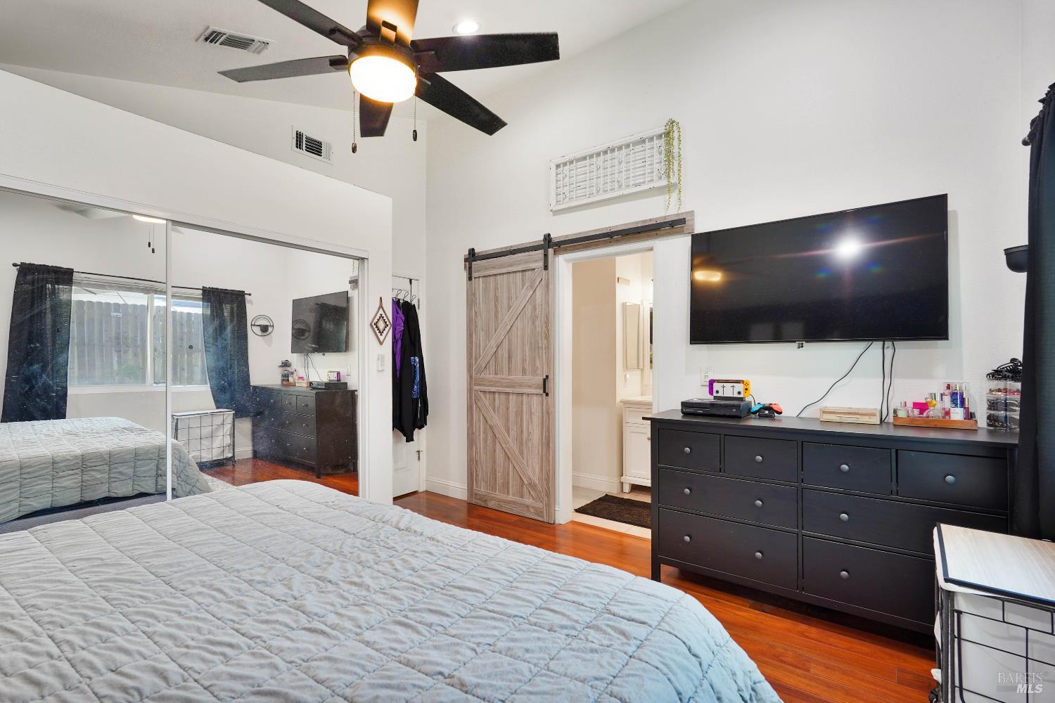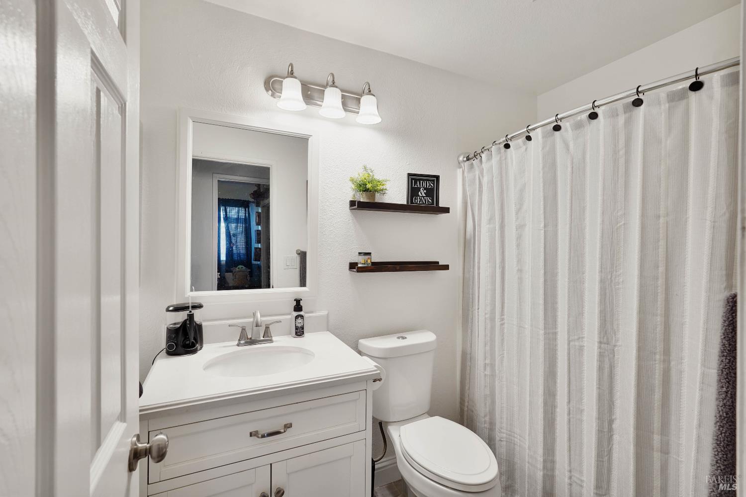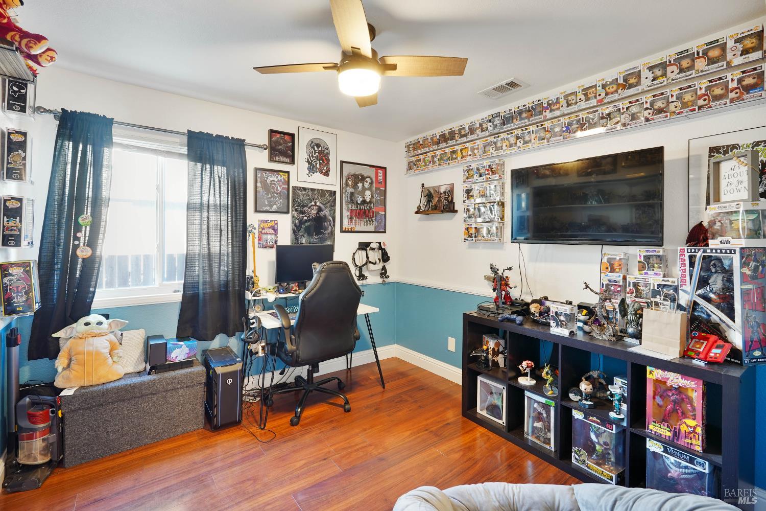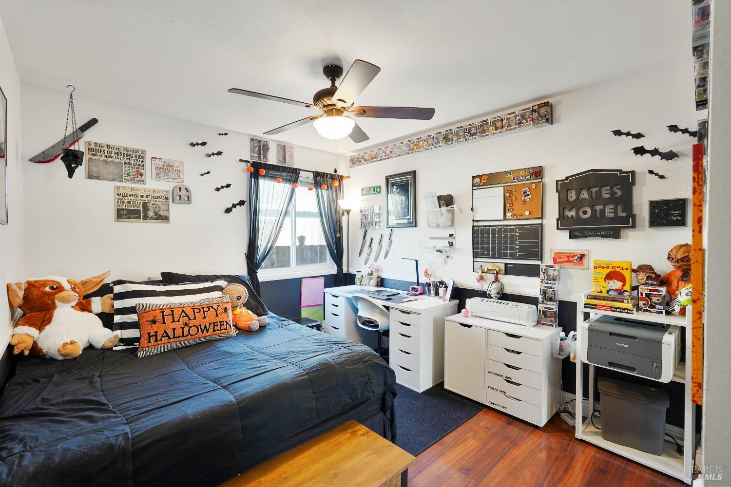This Foxwood single story blends style, comfort, and smart efficiency. Inside, the kitchen shines with black stainless steel appliances while fresh ceiling fans, a whole house fan, and a brand new electric furnace and A/C system keep the space feeling just right. The primary suite has its own added vent for perfect airflow, and the new smart thermostat makes control effortless. Efficiency is the star here with 32 solar panels that keep the PG&E bill usually under ten dollars. A brand new water heater with warranty adds peace of mind, and every detail has been updated so you can move right in and start enjoying. Out back, the turf and extended concrete create a space made for summer BBQs, weekend projects, or just kicking back with friends. There's boat parking, a welcoming front porch, and side yard access for extra convenience. Set in a quiet neighborhood within Travis Unified School District, close to parks and schools, this home makes daily life easy and the weekends even better.