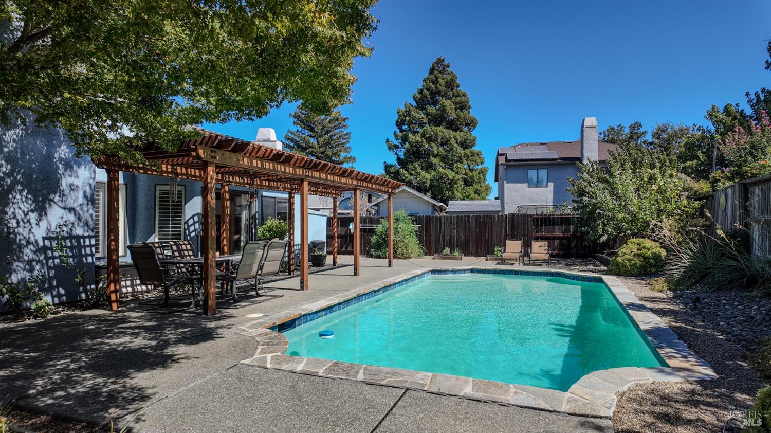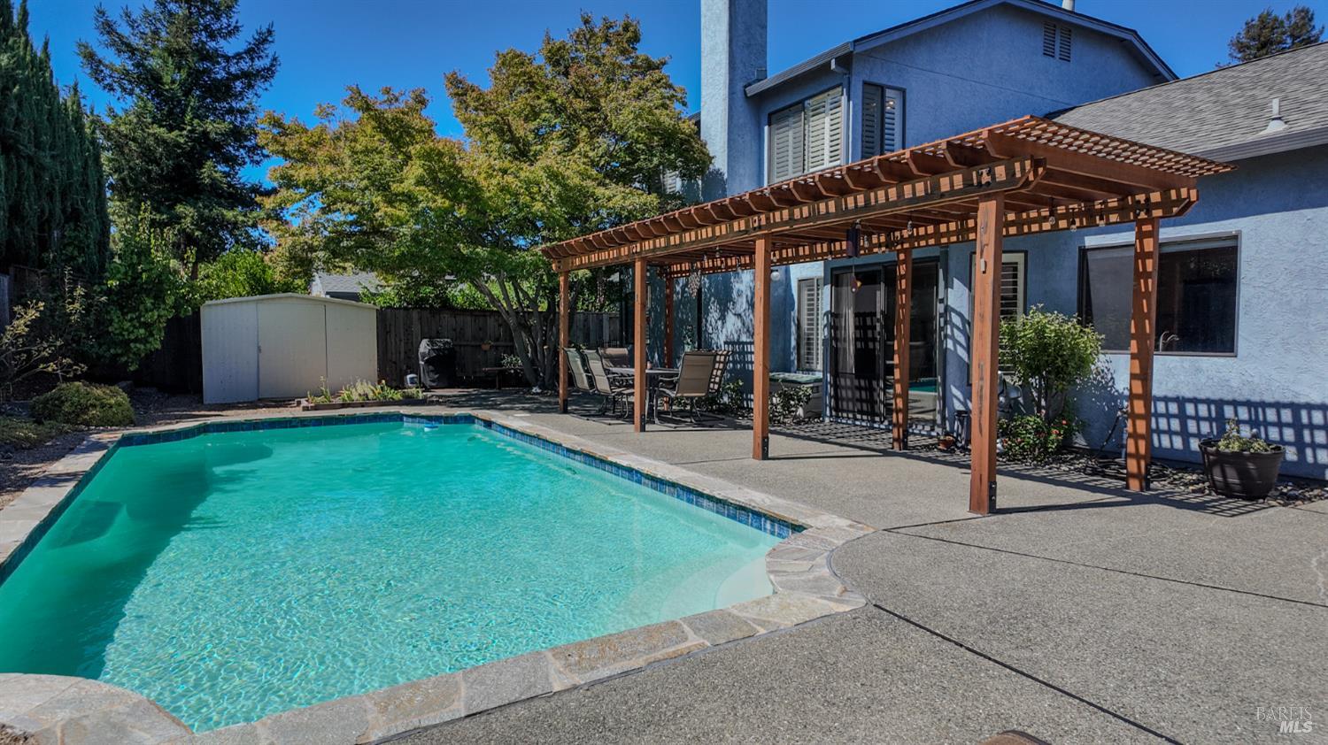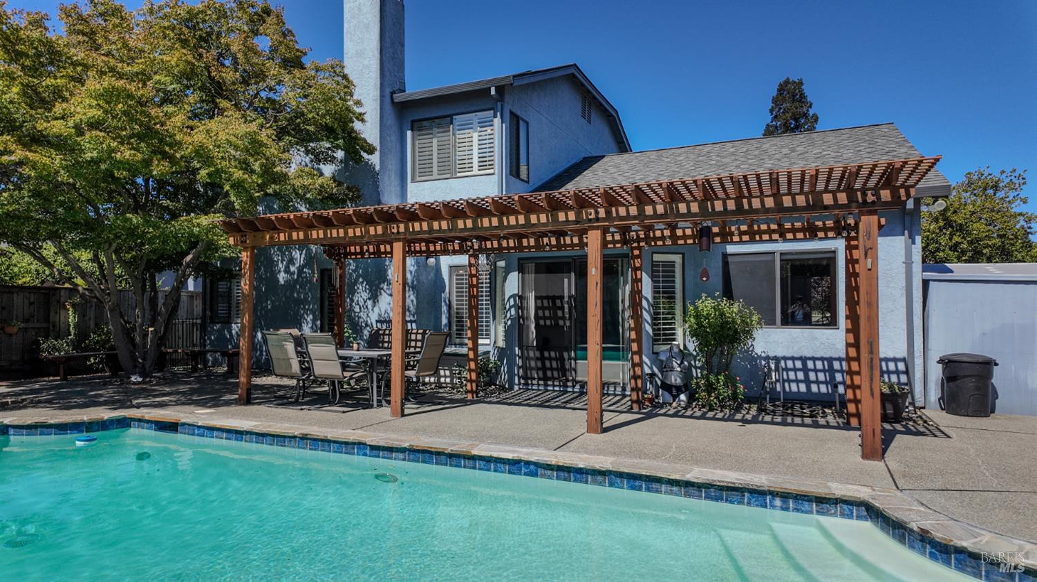This house will definitely make you stop! Darling 4 bedroom and 3 full bathroom house with 2 fireplaces and gorgeous backyard featuring a swimming pool, a pergola, seating and gardening areas. This house has carefully been cared for and you will see it in the details. Loan may be assumable.