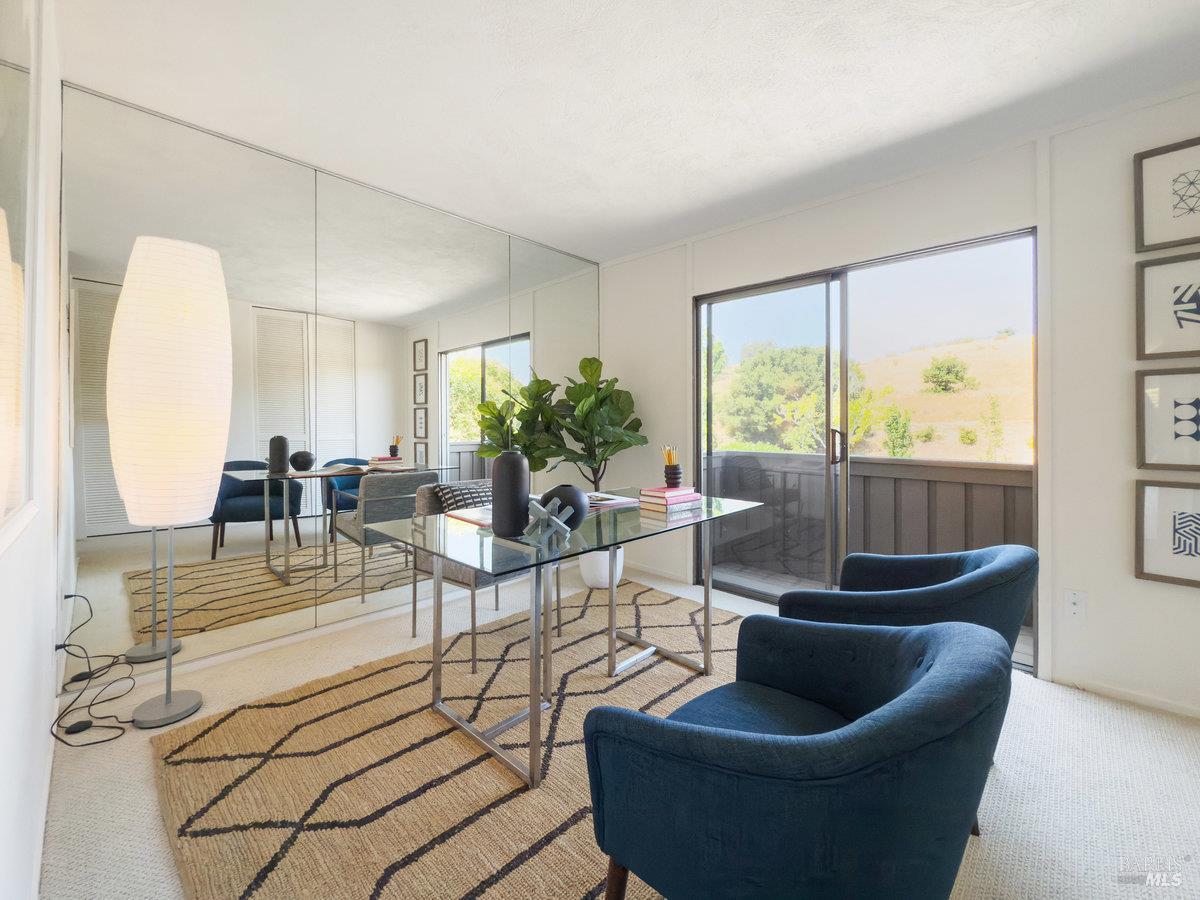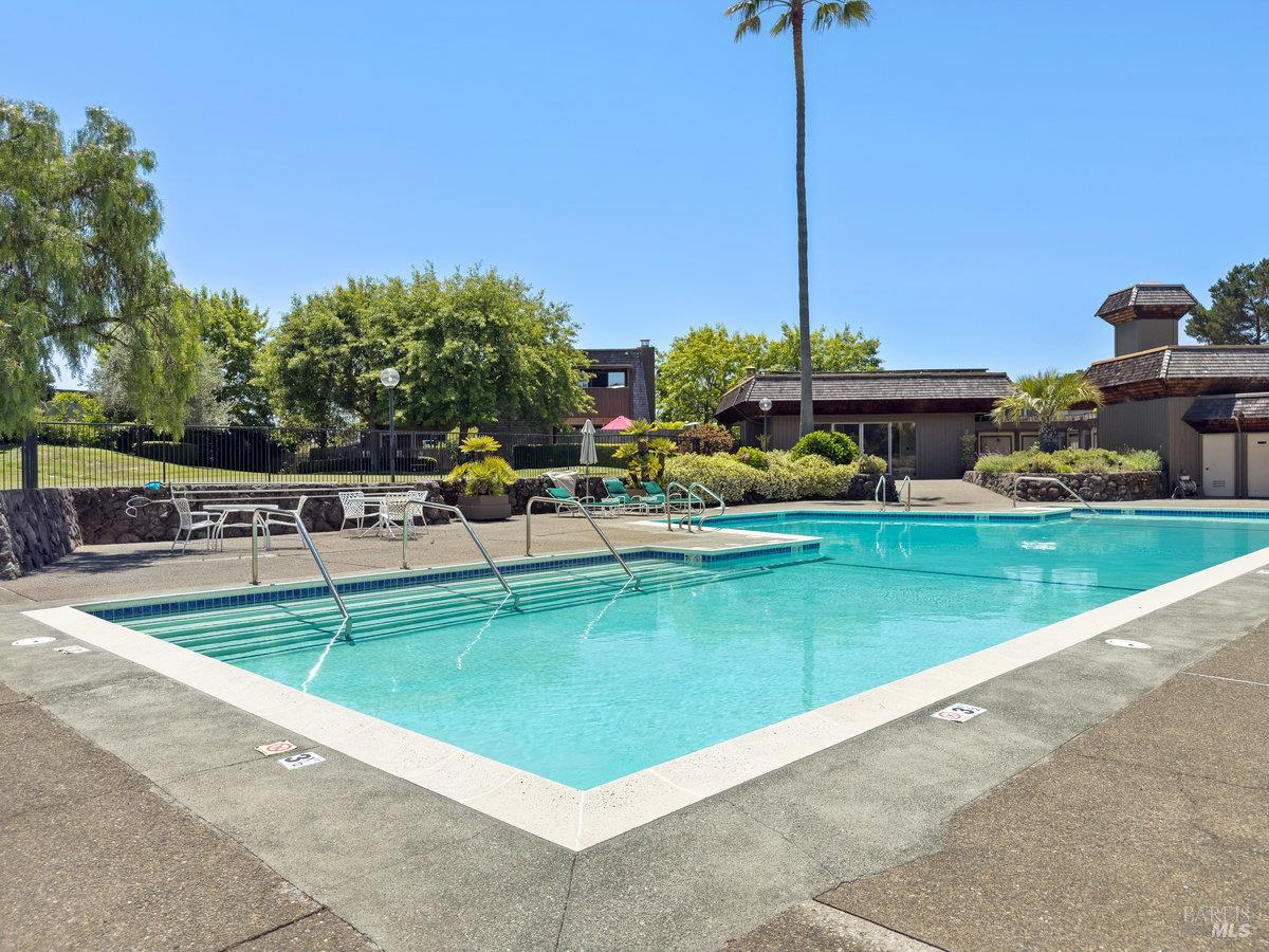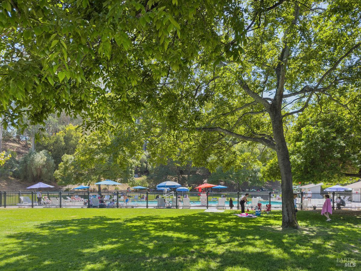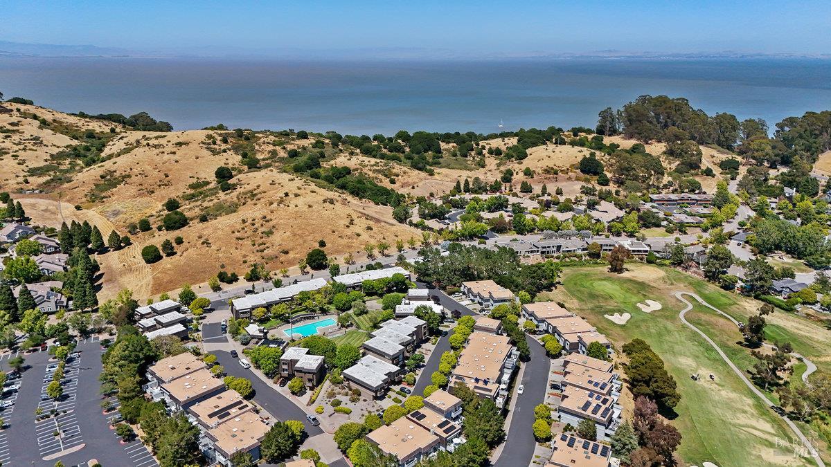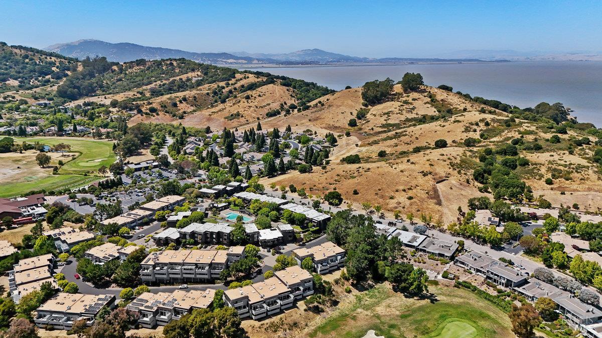 This sunlit townhouse offers resort-style living surrounded by open space and nature, creating a calm, low-key vibe that feels more like a peaceful getaway than an everyday home. A formal entry leads upstairs to the main living level, featuring a cozy fireplace and a kitchen with brand-new stainless steel appliances, plenty of storage, and an open flow to the dining and living areas. The living room features soaring ceilings and sliding glass doors that open to a private brick patio with gated access to a beautifully landscaped path leading directly to the pool and clubhouse. Also on this floor is a full bath and a flexible bedroom with a private balcony facing China Camp open spaceperfect as a guest room, home office, or gym. Upstairs, you'll find another bedroom with its own balcony, a full bath, and a spacious lofted primary suite with a large bathroom, generous closet space, and a third balcony overlooking the grounds. A two-car tandem garage with laundry and extra storage completes the home, along with guest parking and easy street parking nearby. Close to Andy's Market, Peacock Gap Golf Course, McNear's Beach, and miles of trails at China Camp - true indoor-outdoor Marin living!