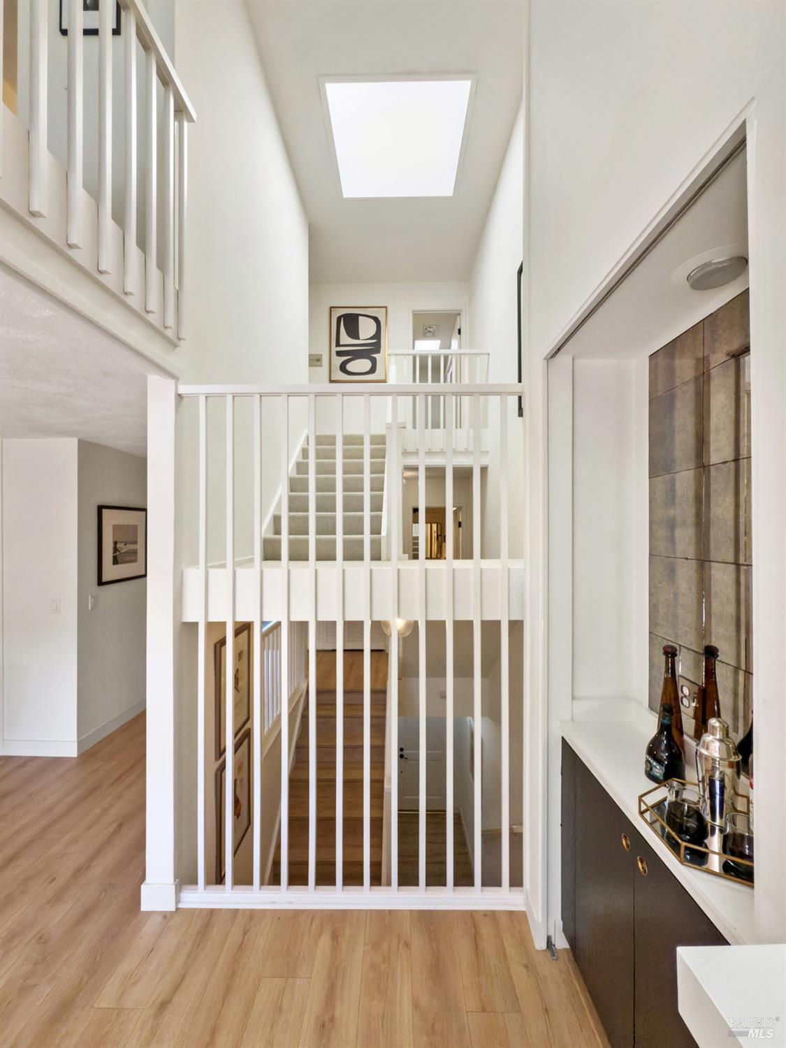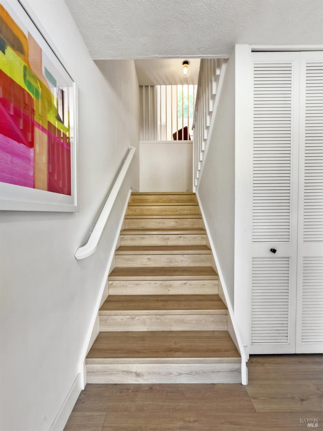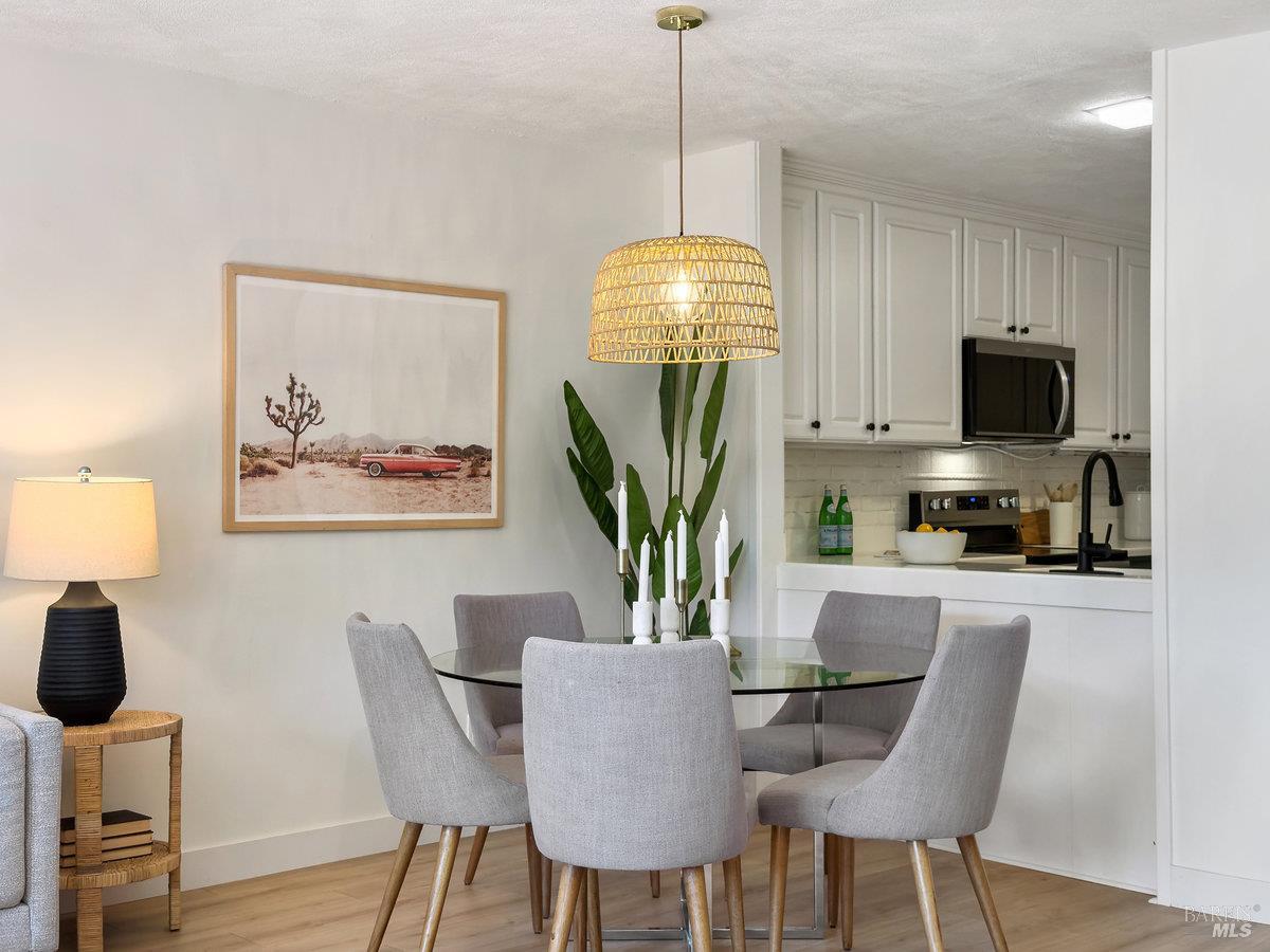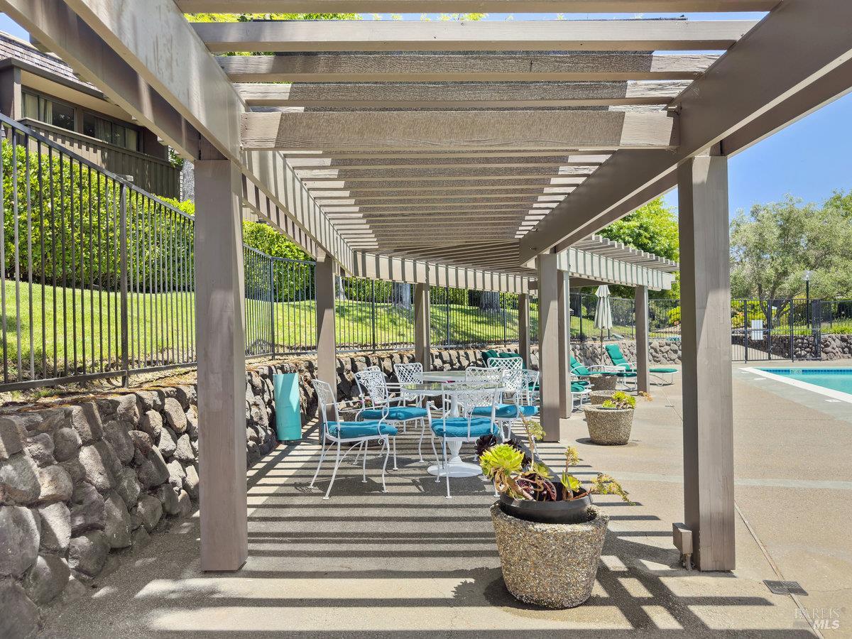 This sunlit townhouse offers resort-style living surrounded by open space and nature, creating a calm, low-key vibe that feels more like a peaceful getaway than an everyday home. A formal entry leads upstairs to the main living level, featuring a cozy fireplace and a kitchen with brand-new stainless steel appliances, plenty of storage, and an open flow to the dining and living areas. The living room features soaring ceilings and sliding glass doors that open to a private brick patio with gated access to a beautifully landscaped path leading directly to the pool and clubhouse. Also on this floor is a full bath and a flexible bedroom with a private balcony facing China Camp open spaceperfect as a guest room, home office, or gym. Upstairs, you'll find another bedroom with its own balcony, a full bath, and a spacious lofted primary suite with a large bathroom, generous closet space, and a third balcony overlooking the grounds. A two-car tandem garage with laundry and extra storage completes the home, along with guest parking and easy street parking nearby. Close to Andy's Market, Peacock Gap Golf Course, McNear's Beach, and miles of trails at China Camp - true indoor-outdoor Marin living!