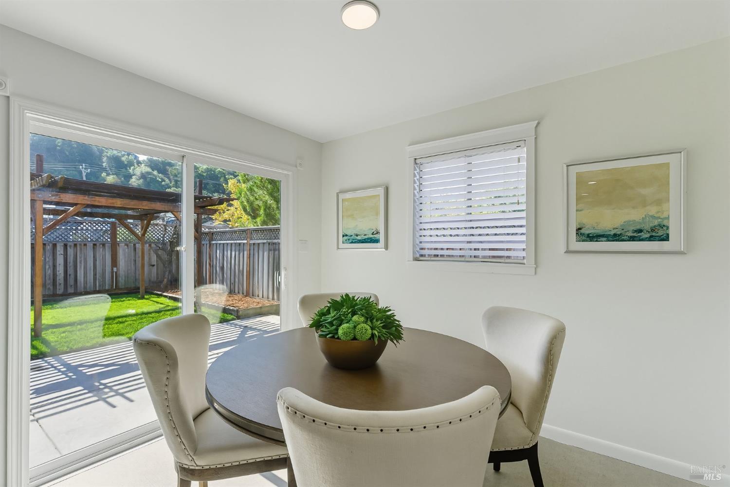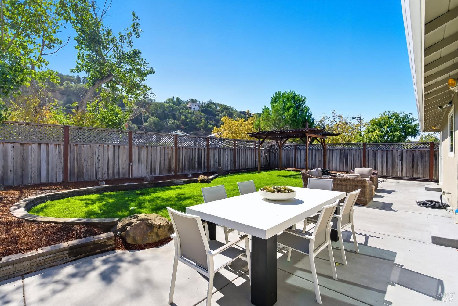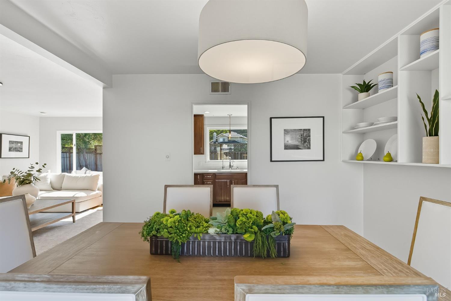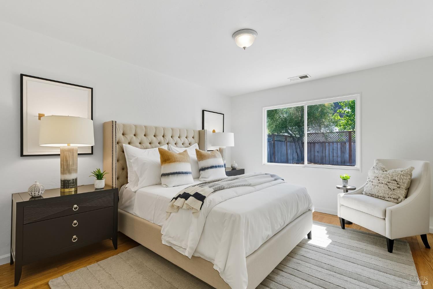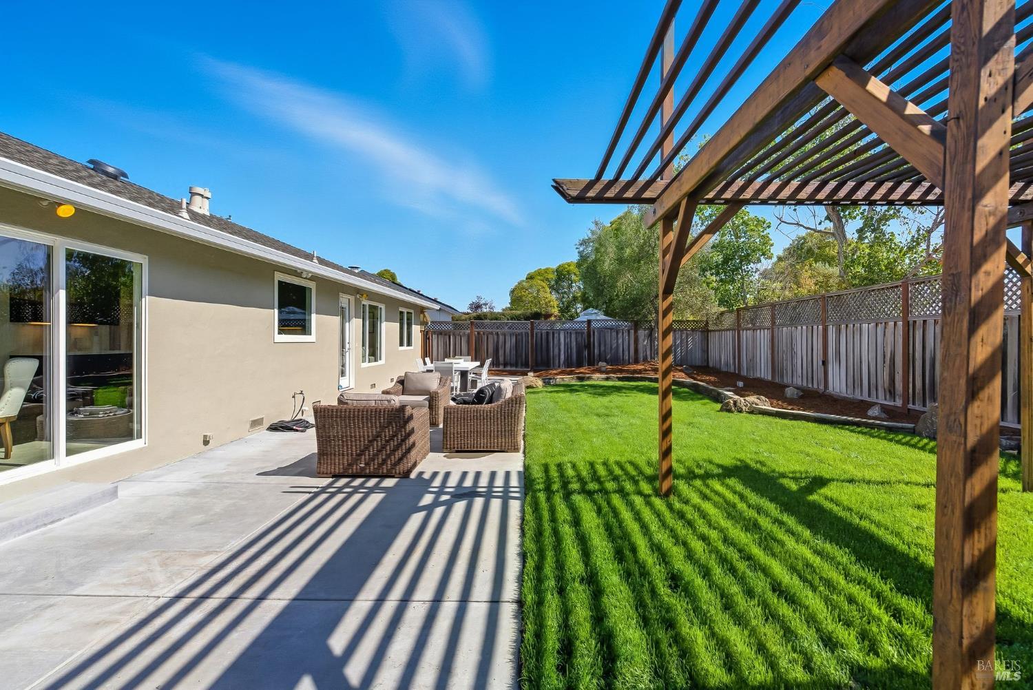 This inviting single-level home offers easy living with a great layout and flow, a flat and private yard with a patio for dining al fresco - perfect for relaxation or entertaining. A spacious primary bedroom opens to the recently landscaped back yard and patio, while two additional bedrooms offer versatility as sleeping quarters or work from home space. Conveniently located in a desirable neighborhood with easy access to 101 for commuters, while being just moments from the renowned San Rafael Civic Center Farmer's Market, and just a few minutes from the miles of trails and outdoor space at China Camp and McNear's Beach. Numerous recent system upgrades include A/C, new furnace, new electrical panel, new water heater, EV car charger, and more. The exterior includes a recently updated patio and a beautiful new lawn front and back.