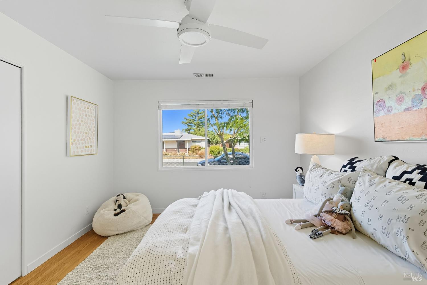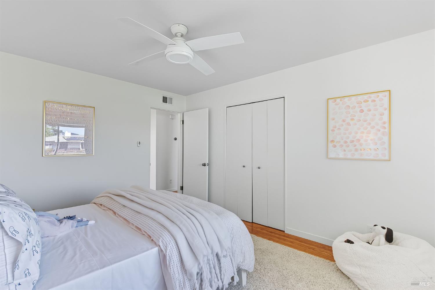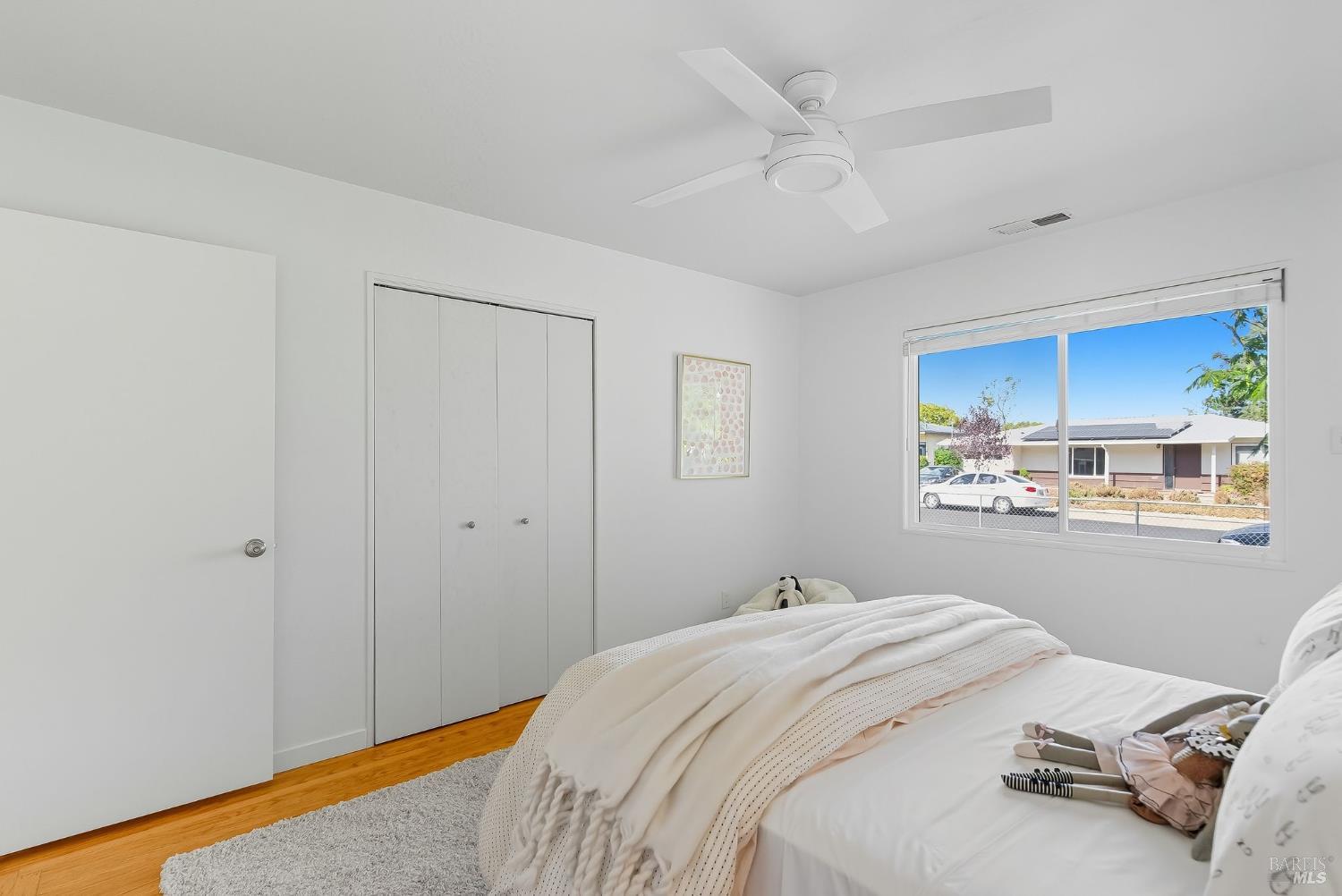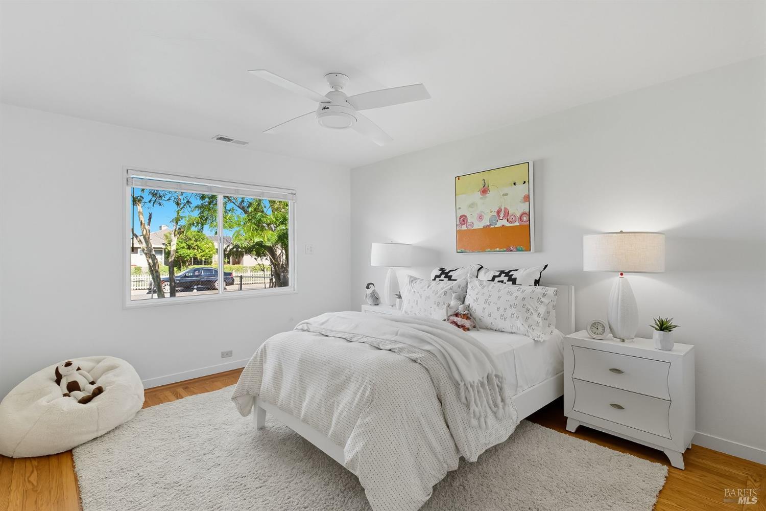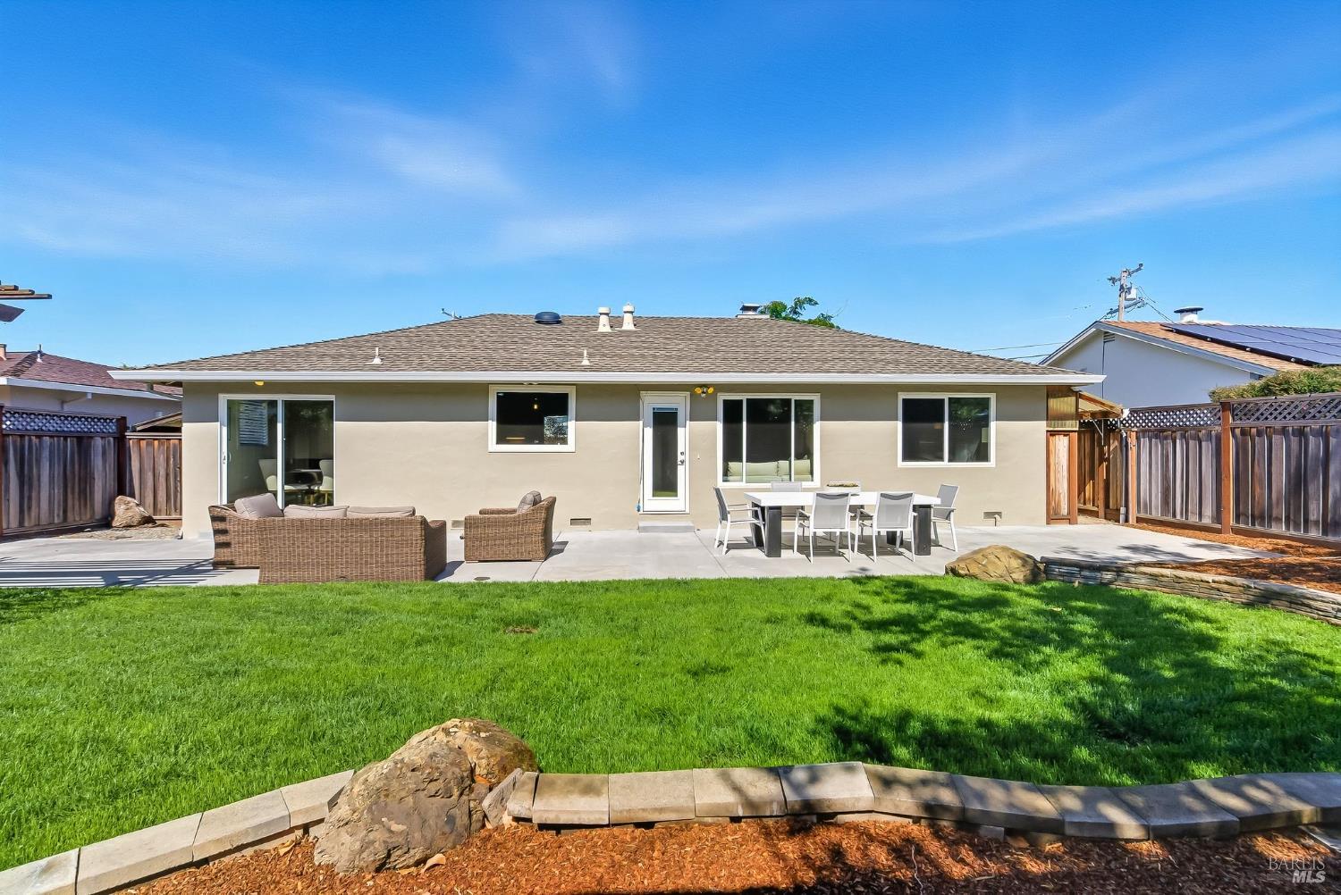 This inviting single-level home offers easy living with a great layout and flow, a flat and private yard with a patio for dining al fresco - perfect for relaxation or entertaining. A spacious primary bedroom opens to the recently landscaped back yard and patio, while two additional bedrooms offer versatility as sleeping quarters or work from home space. Conveniently located in a desirable neighborhood with easy access to 101 for commuters, while being just moments from the renowned San Rafael Civic Center Farmer's Market, and just a few minutes from the miles of trails and outdoor space at China Camp and McNear's Beach. Numerous recent system upgrades include A/C, new furnace, new electrical panel, new water heater, EV car charger, and more. The exterior includes a recently updated patio and a beautiful new lawn front and back.