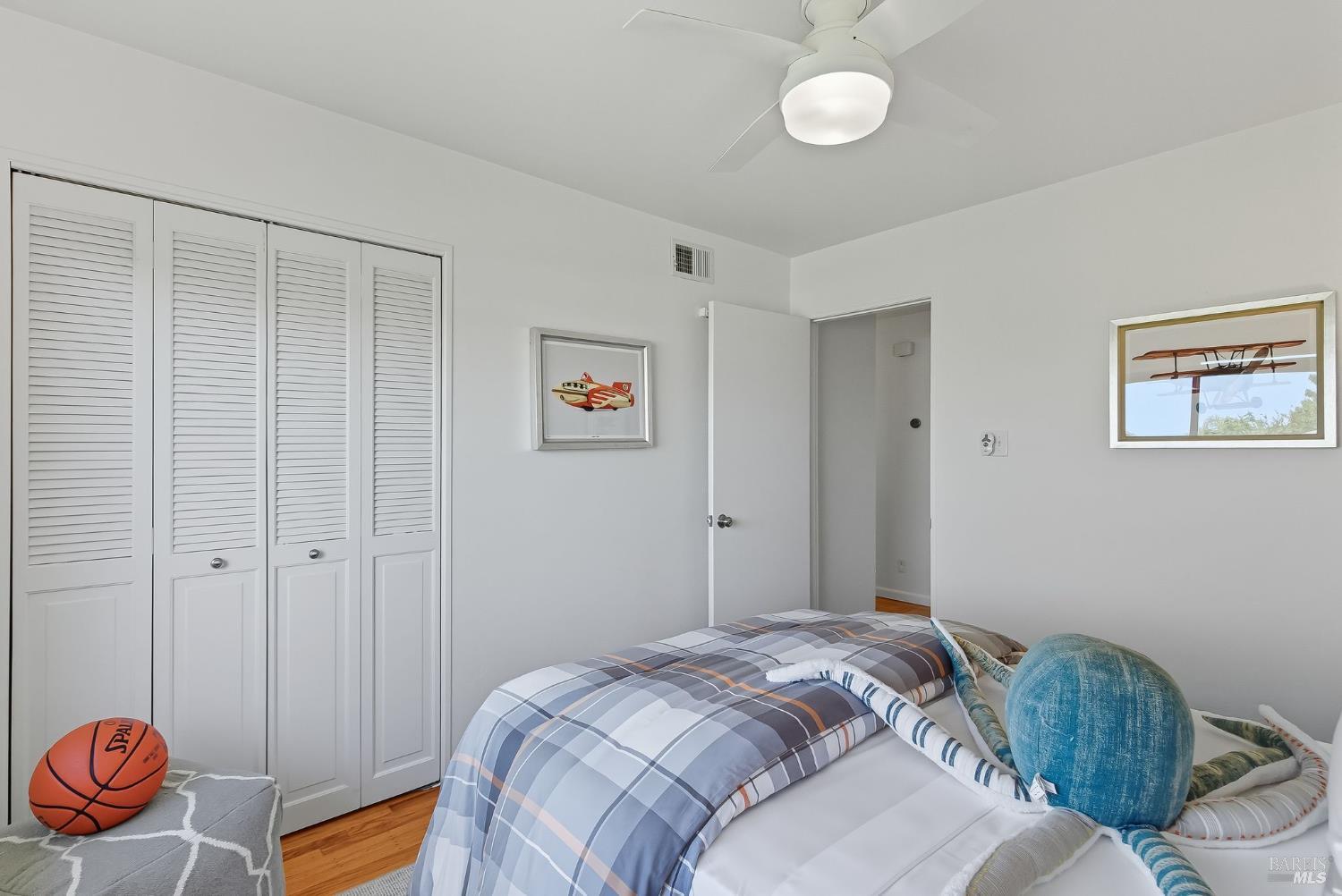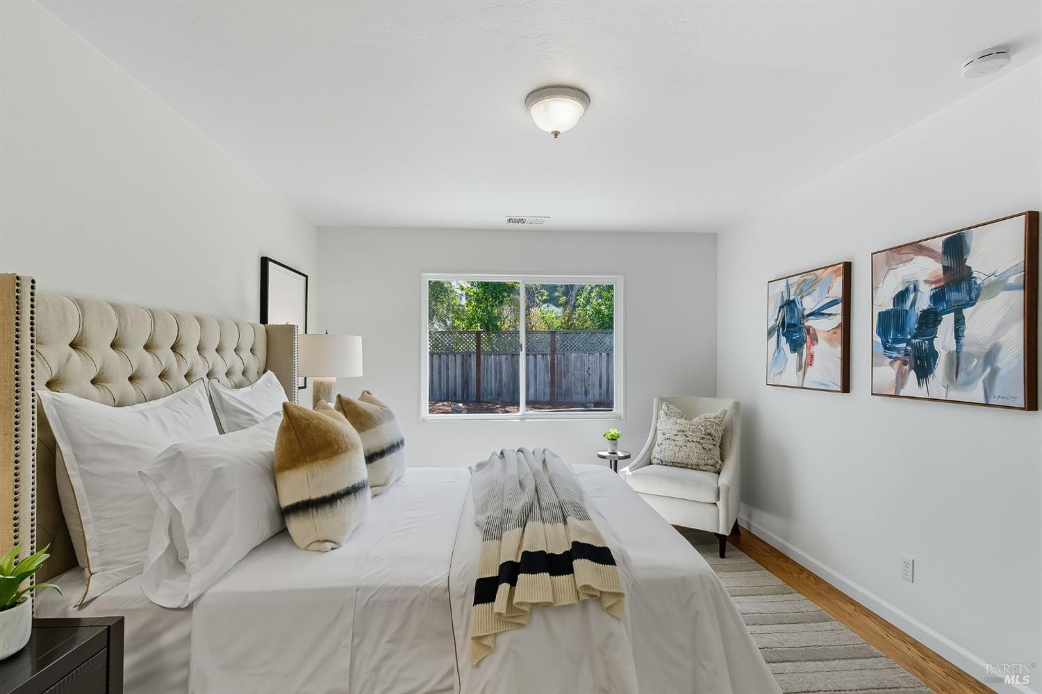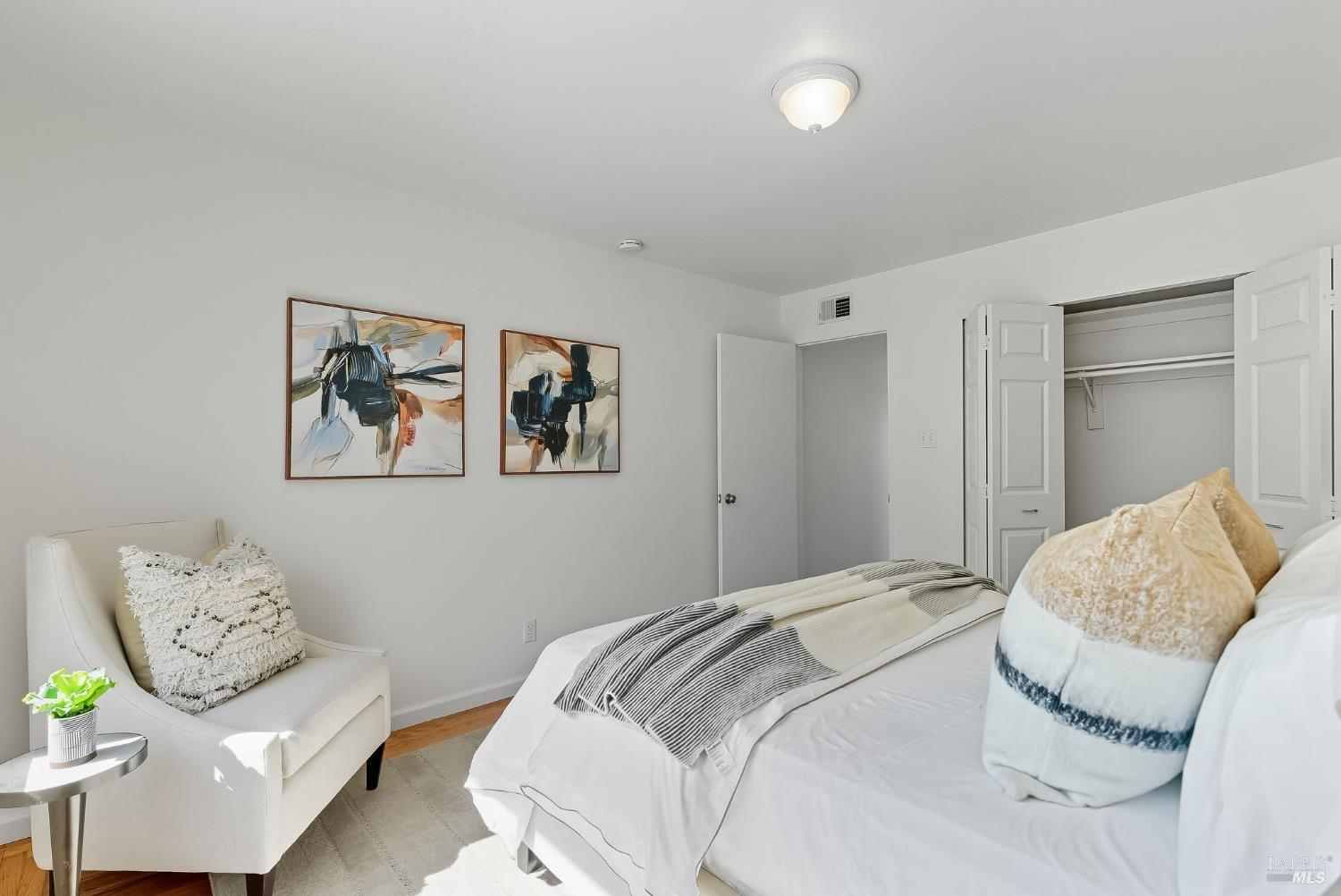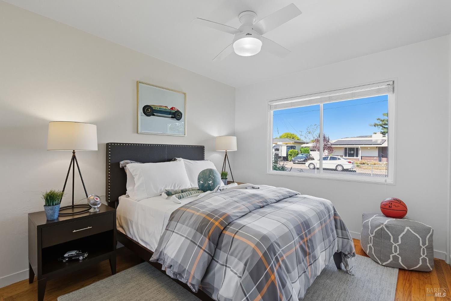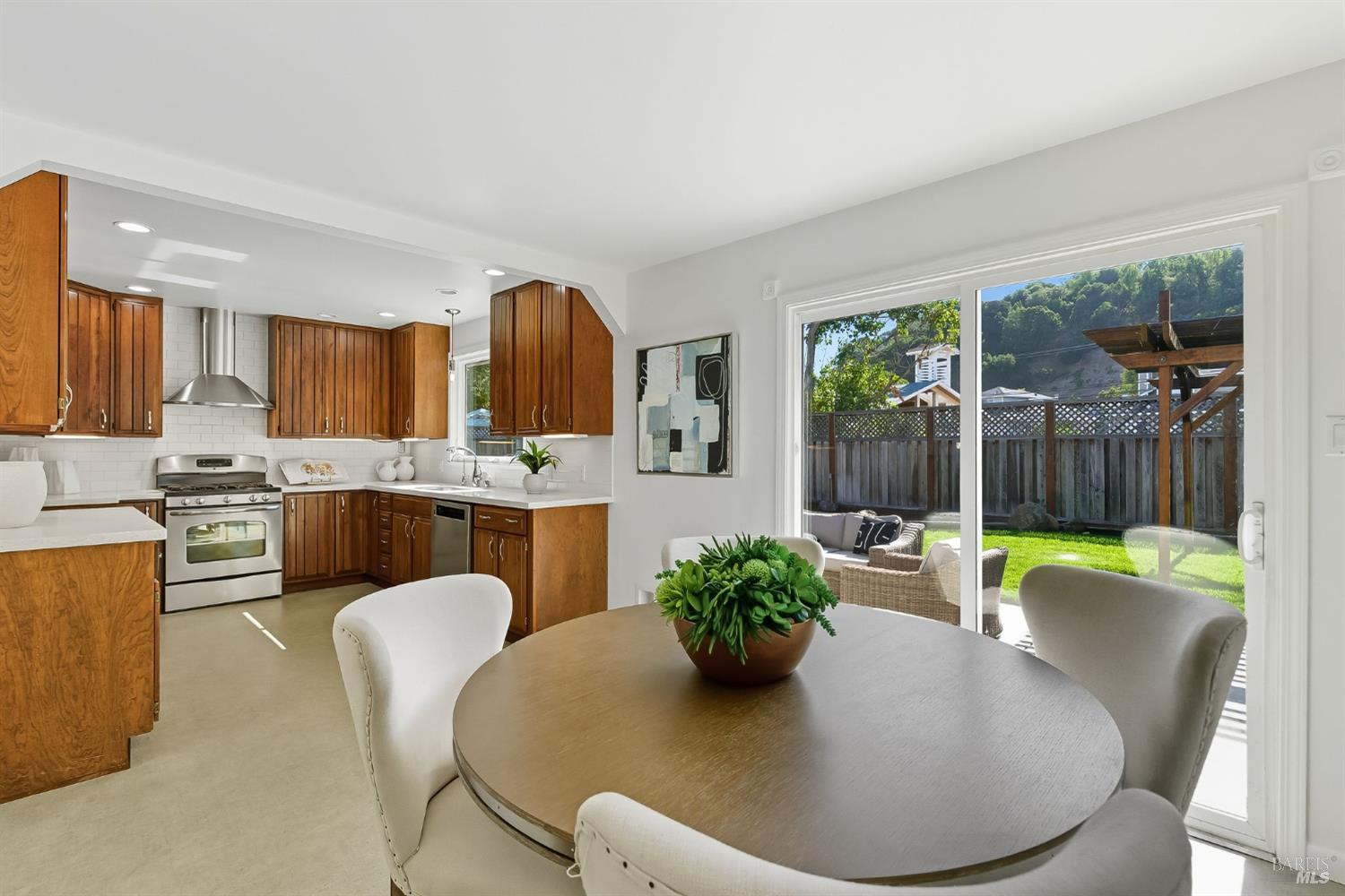 This inviting single-level home offers easy living with a great layout and flow, a flat and private yard with a patio for dining al fresco - perfect for relaxation or entertaining. A spacious primary bedroom opens to the recently landscaped back yard and patio, while two additional bedrooms offer versatility as sleeping quarters or work from home space. Conveniently located in a desirable neighborhood with easy access to 101 for commuters, while being just moments from the renowned San Rafael Civic Center Farmer's Market, and just a few minutes from the miles of trails and outdoor space at China Camp and McNear's Beach. Numerous recent system upgrades include A/C, new furnace, new electrical panel, new water heater, EV car charger, and more. The exterior includes a recently updated patio and a beautiful new lawn front and back.