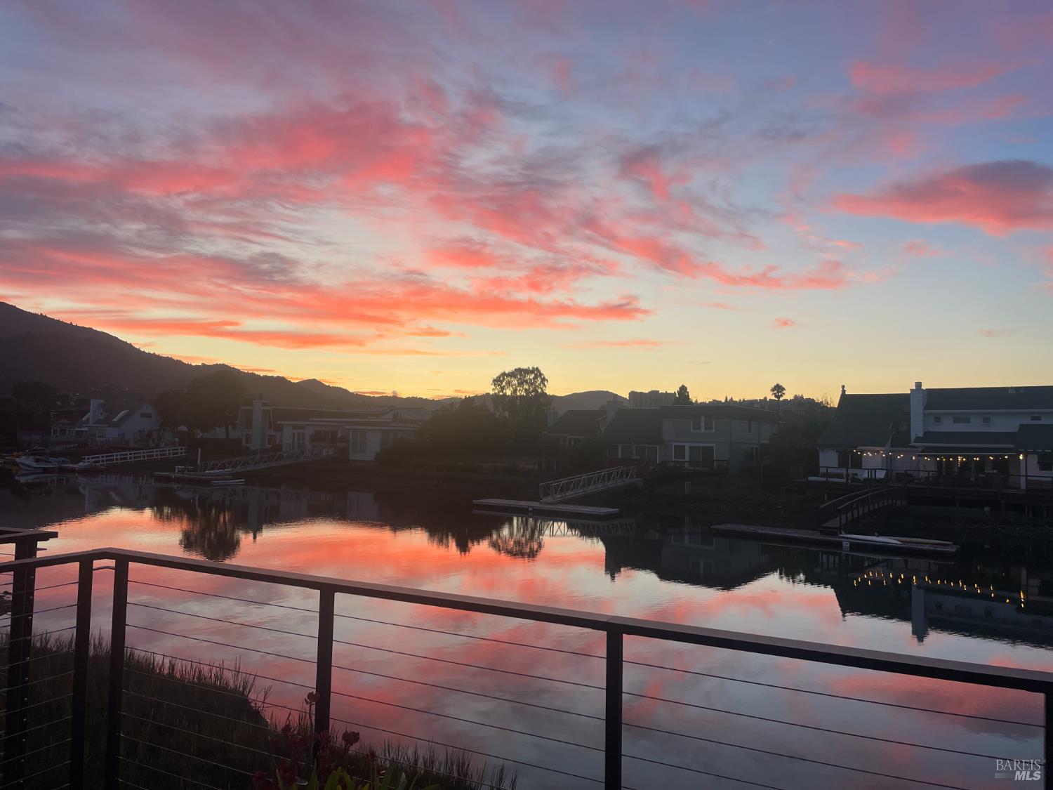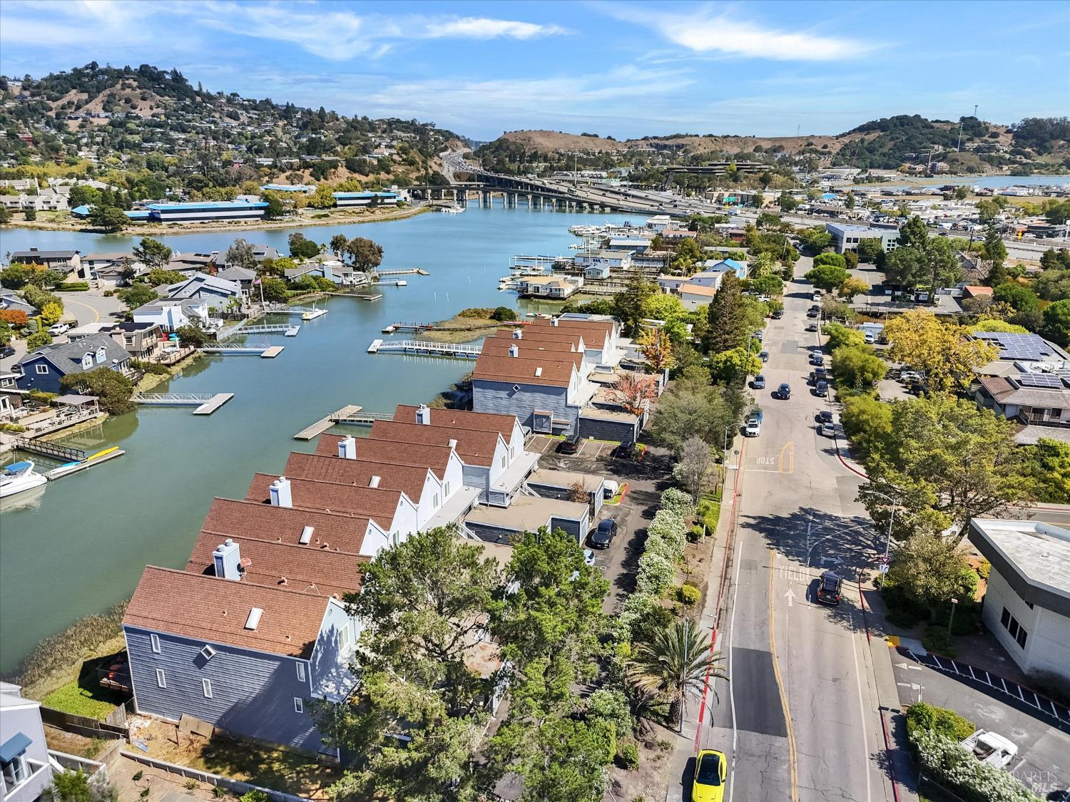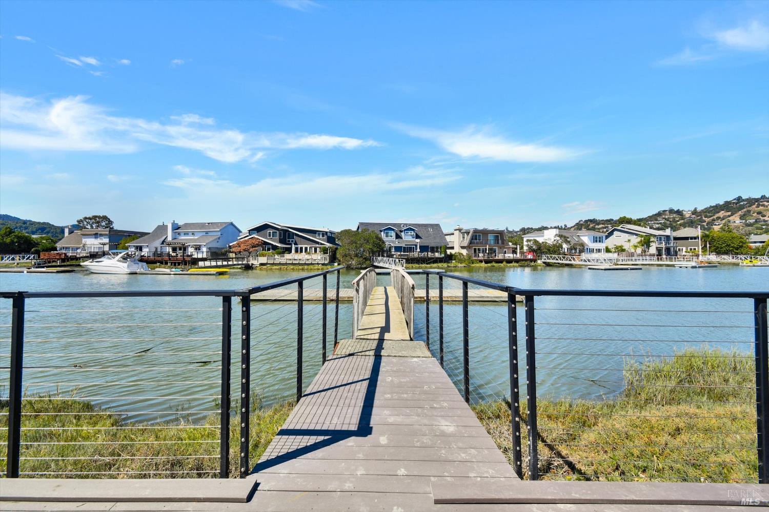 Enjoy the quintessential Marin lifestyle from this sun-filled waterfront townhome featuring majestic views of Mt Tam and stunning sunsets from an expansive wall of glass and 2 spacious outdoor decks, it's the perfect blend of beauty and convenience with a stellar location. This 2 story townhome features a gated garden entrance, a 1 car garage, and once inside, you'll find new flooring, a spacious kitchen with new stainless appliances, granite countertops, a breakfast nook plus an updated powder room perfect for guests. The dining area and expansive living room leads to the sunny oversized outdoor deck then once back inside, you'll enjoy warming up in front of the updated gas fireplace, a perfect way to wrap up a day on the bay. Upstairs there's a sunny primary suite with with a private balcony, a perfect spot for morning coffee. The updated bathroom features quartz countertops, dual sinks and a storage closet. Down the hall is the spacious 2nd bedroom with an oversized closet and full bath. Take advantage of the shared boat dock, perfect for launching your kayak/SUP. Superb location with access to trails, the ferry, top rated schools + nearby charming towns, this coveted waterfront home offers the dreamy Marin lifestyle you've been waiting for!