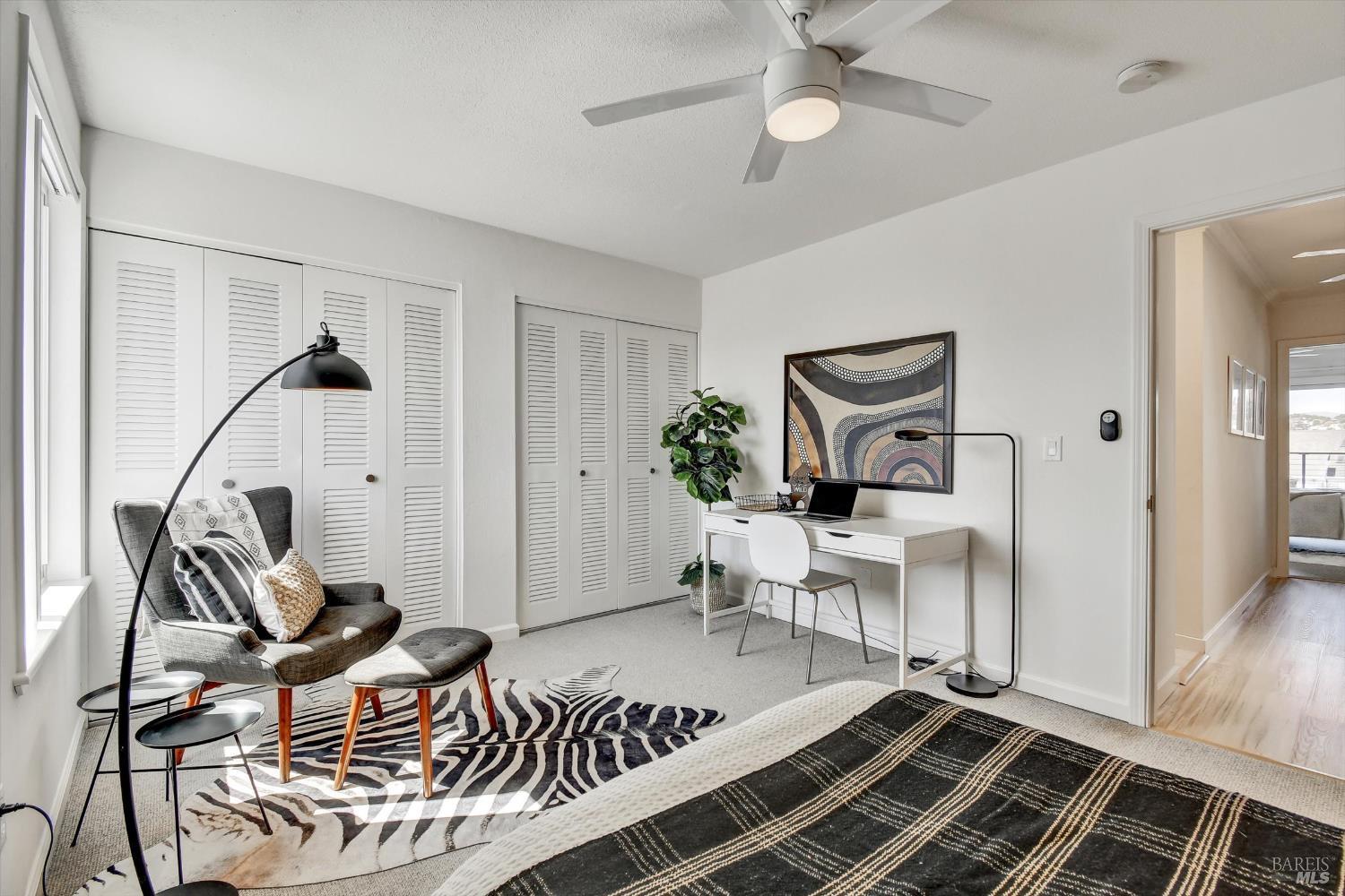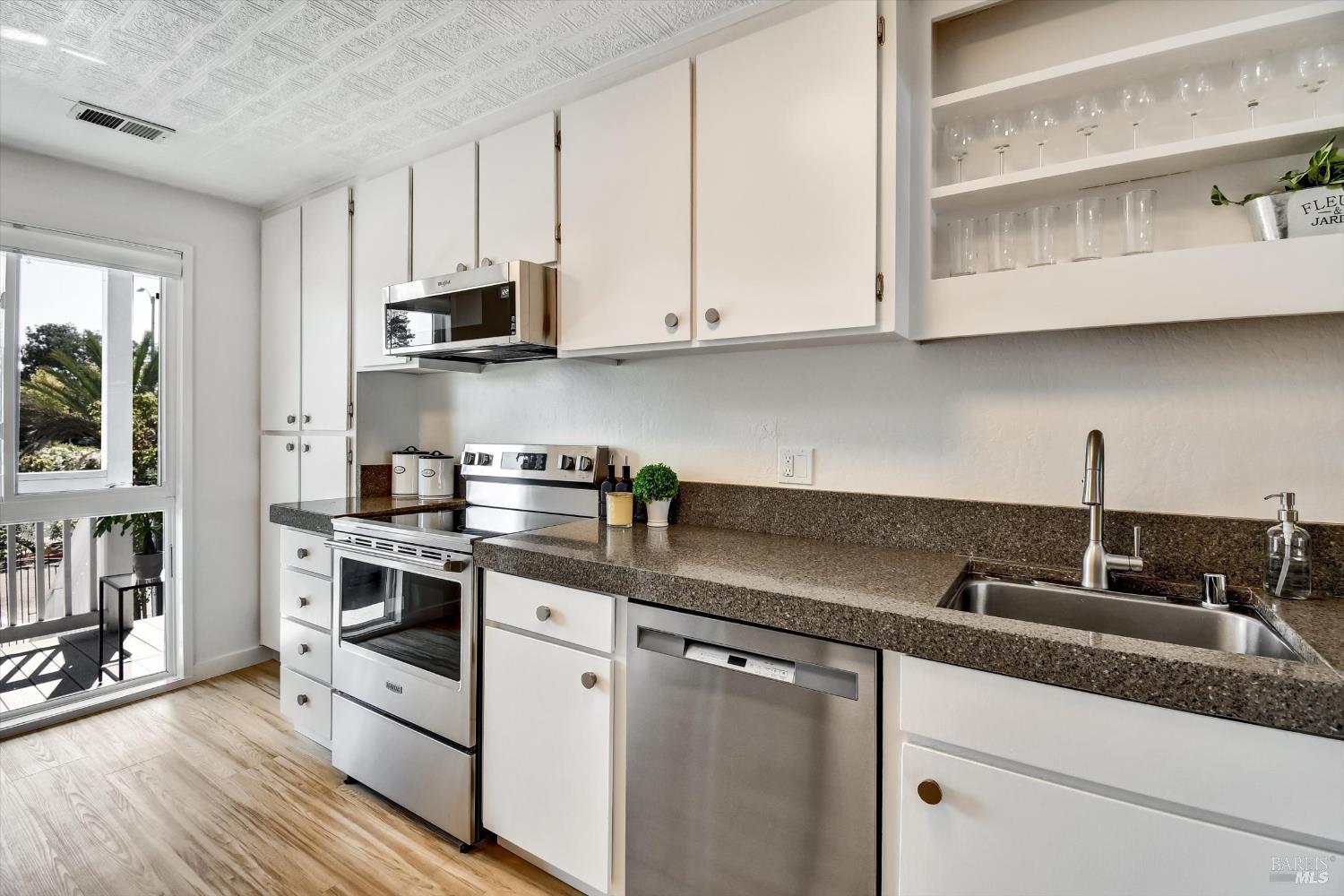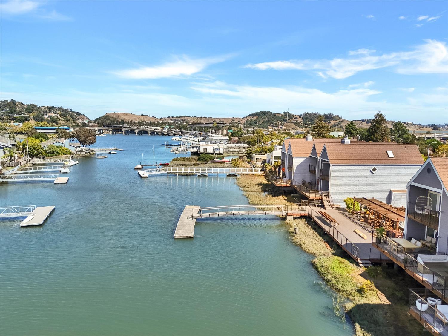 Enjoy the quintessential Marin lifestyle from this sun-filled waterfront townhome featuring majestic views of Mt Tam and stunning sunsets from an expansive wall of glass and 2 spacious outdoor decks, it's the perfect blend of beauty and convenience with a stellar location. This 2 story townhome features a gated garden entrance, a 1 car garage, and once inside, you'll find new flooring, a spacious kitchen with new stainless appliances, granite countertops, a breakfast nook plus an updated powder room perfect for guests. The dining area and expansive living room leads to the sunny oversized outdoor deck then once back inside, you'll enjoy warming up in front of the updated gas fireplace, a perfect way to wrap up a day on the bay. Upstairs there's a sunny primary suite with with a private balcony, a perfect spot for morning coffee. The updated bathroom features quartz countertops, dual sinks and a storage closet. Down the hall is the spacious 2nd bedroom with an oversized closet and full bath. Take advantage of the shared boat dock, perfect for launching your kayak/SUP. Superb location with access to trails, the ferry, top rated schools + nearby charming towns, this coveted waterfront home offers the dreamy Marin lifestyle you've been waiting for!