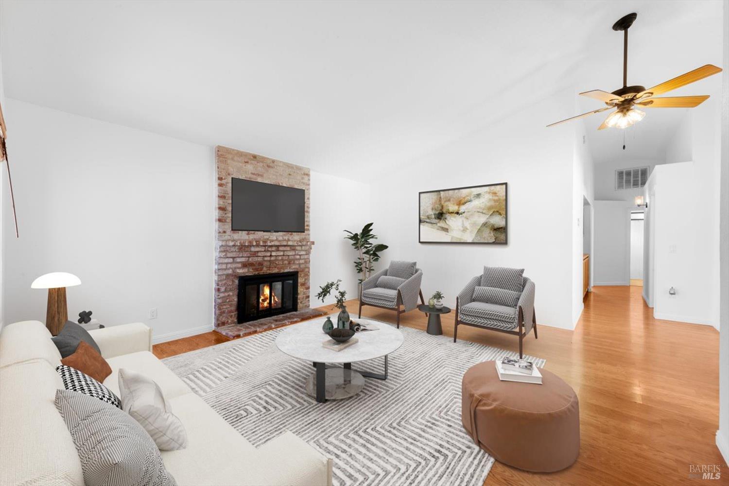 Step into this inviting single-story home that combines comfort, functionality, and location. With no rear neighbors, you'll enjoy privacy and tranquility, while RV parking offers added convenience for those with extra vehicles or outdoor toys. A newer roof, newer HVAC, fresh interior and exterior paint, and updated fixtures provide peace of mind, while vaulted ceilings and ceiling fans enhance the airy, open feel. The home features three bedrooms, with a flexible option for a fourth, making it ideal for growing families or those needing extra space for a home office or guest room. The cozy wood-burning fireplace anchors the living area, and sliding glass doors invite natural light while offering easy access to the backyard. Outside, the low-maintenance yard is perfect for relaxing or entertaining without the hassle of heavy upkeep. Located in a highly desirable area, this home sits next to the Alamo Creek bike trail, close to top-rated schools, and just minutes from downtown. A wonderful opportunity for those seeking a home that blends comfort, convenience, and a great location.
