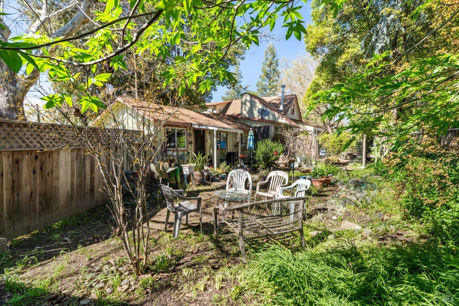 This 3-bed/1.5-bath with attached second unit and studio is situated on a parklike 1/3rd of an acre with a large back yard, established fruit trees, many ornamentals and a rustic barn at the back. Entering the house you will find a spacious living/dining room with old style wood stove. The quaint farmhouse style kitchen faces into the back yard. Off the living room is a sunny tiled multi-purpose room with French doors leading to the back deck and yard. Proceeding down the hall you find a large bedroom with walk-in closet, a smaller bedroom or office, and a full bath. Up the stairs takes you to the large newly carpeted primary bedroom with half bath, walk-in closet, and a sunny balcony overlooking the spacious backyard. At the back of the house, accessed along a path from the driveway, you will find two additional spaces with separate yards (one currently rented) and an old rustic barn with a new roof. Throughout the property you will find a wide array of established fruit trees, including figs, lemon, persimmon, nectarines, apples, pears, loquats and plums along with a large redwood, culinary Bay, grape vines, roses, agave, and a Japanese privet hedge with arch at the front entrance. Sewer lateral recently replaced. C2 zoning allows for residential or commercial uses.