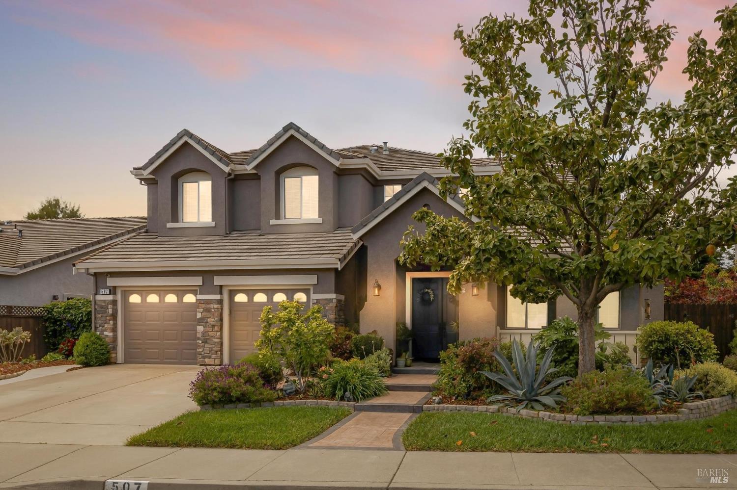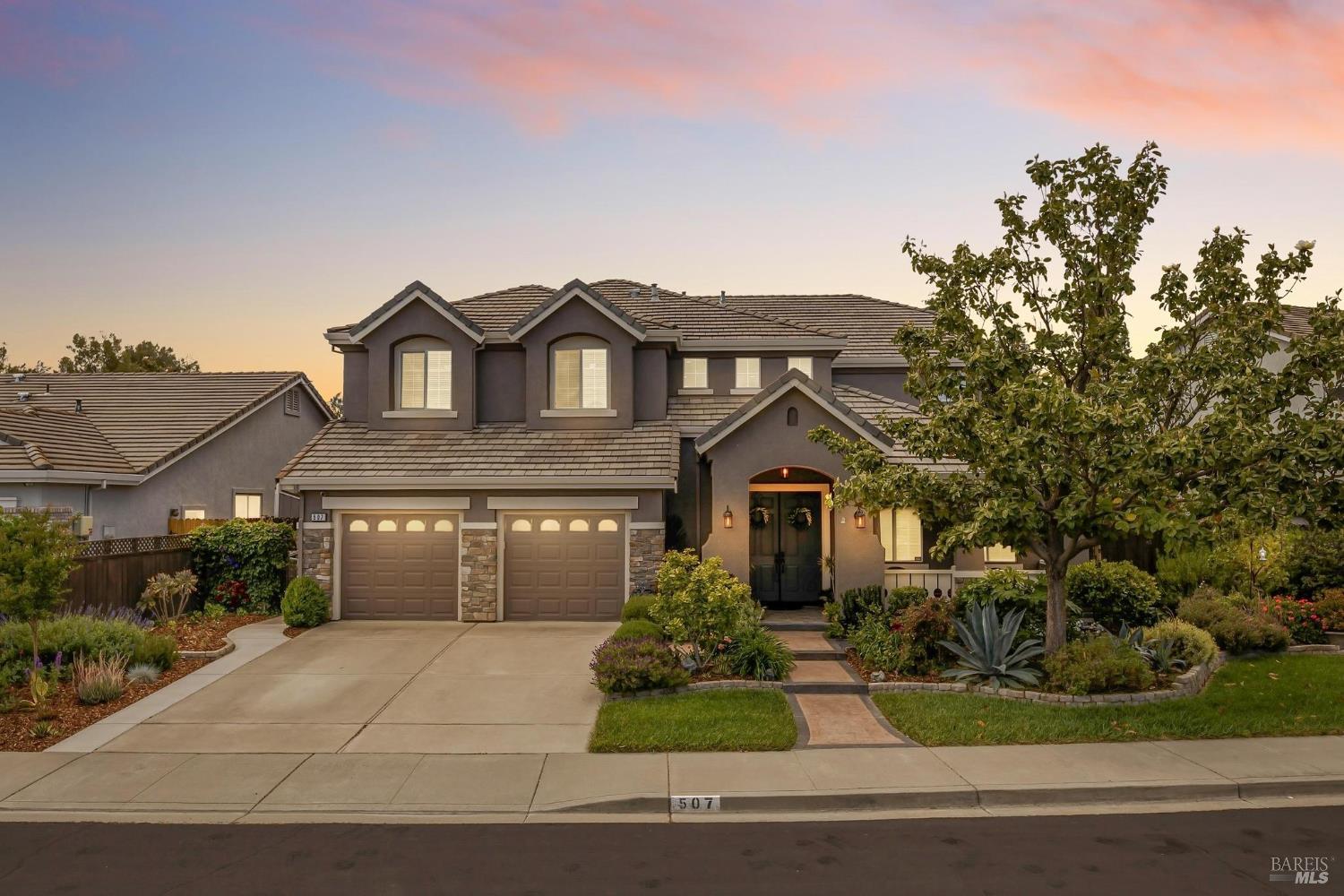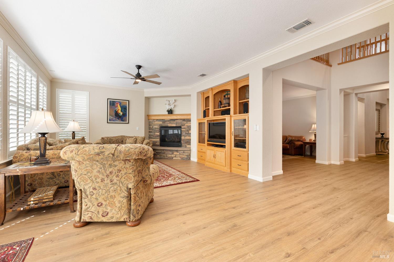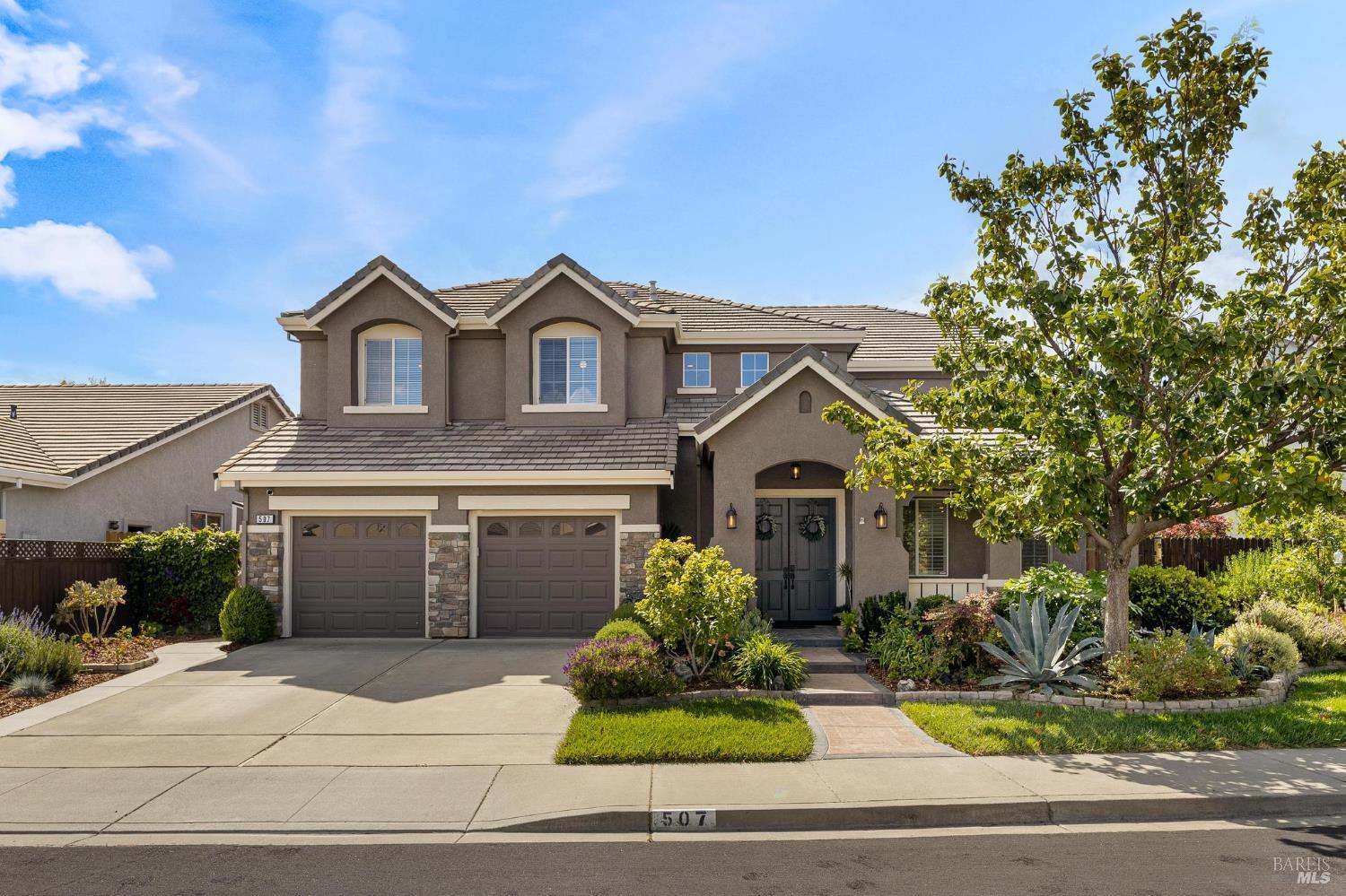Welcome to this extraordinary home in the sought-after Canterfield neighborhood, where elegance, comfort, and modern convenience meet. With 5 spacious bedrooms, 4 full baths, and over 4,000 sq. ft. of thoughtfully designed living space, this residence blends style and functionality. An inviting entry opens to the formal living and dining rooms, ideal for entertaining. The deluxe kitchen is a chef's dream with natural oak cabinetry, central island, and butler's pantry for extra storage and serving. The breakfast area and adjoining family room provide a warm gathering space with views of the backyard oasis. A main-level bedroom and full bath offer flexibility for guests, extended family, or a home office. Upstairs, the primary suite is a private retreat with a 3-sided fireplace, sitting room, walk-in closet plus cedar wardrobe, and spa-like ensuite with dual vanities and jetted tub. A versatile loft and study area are surrounded by three additional bedrooms and two baths. Added highlights: 3-car tandem garage, dual heat & air, whole house fan, no HOA, no high fire insurance, and NO Mello Roos!