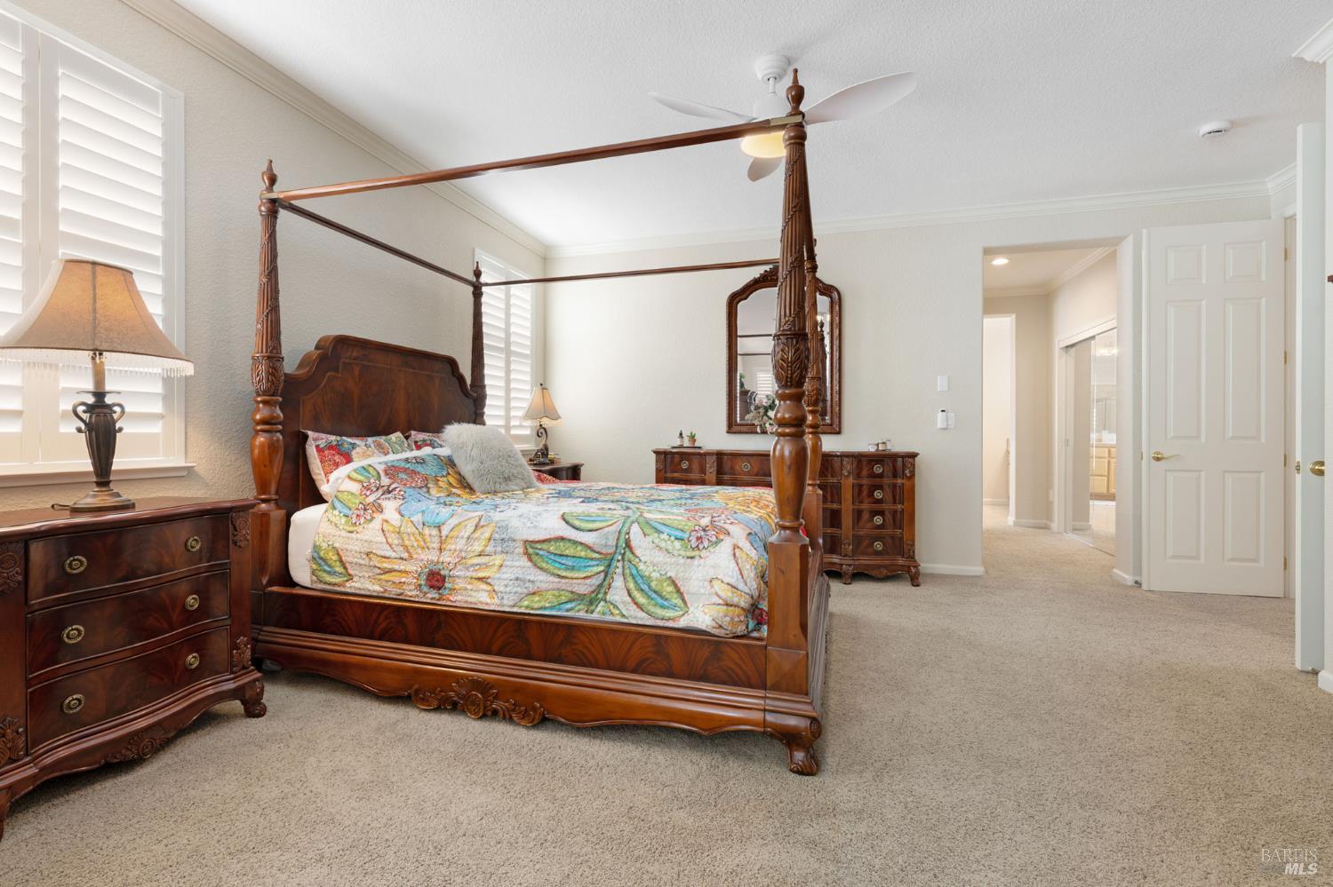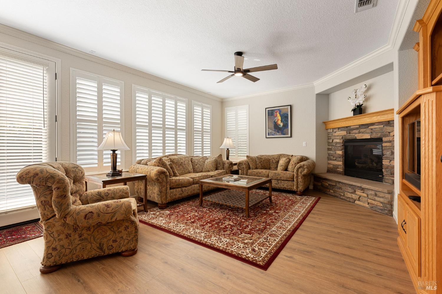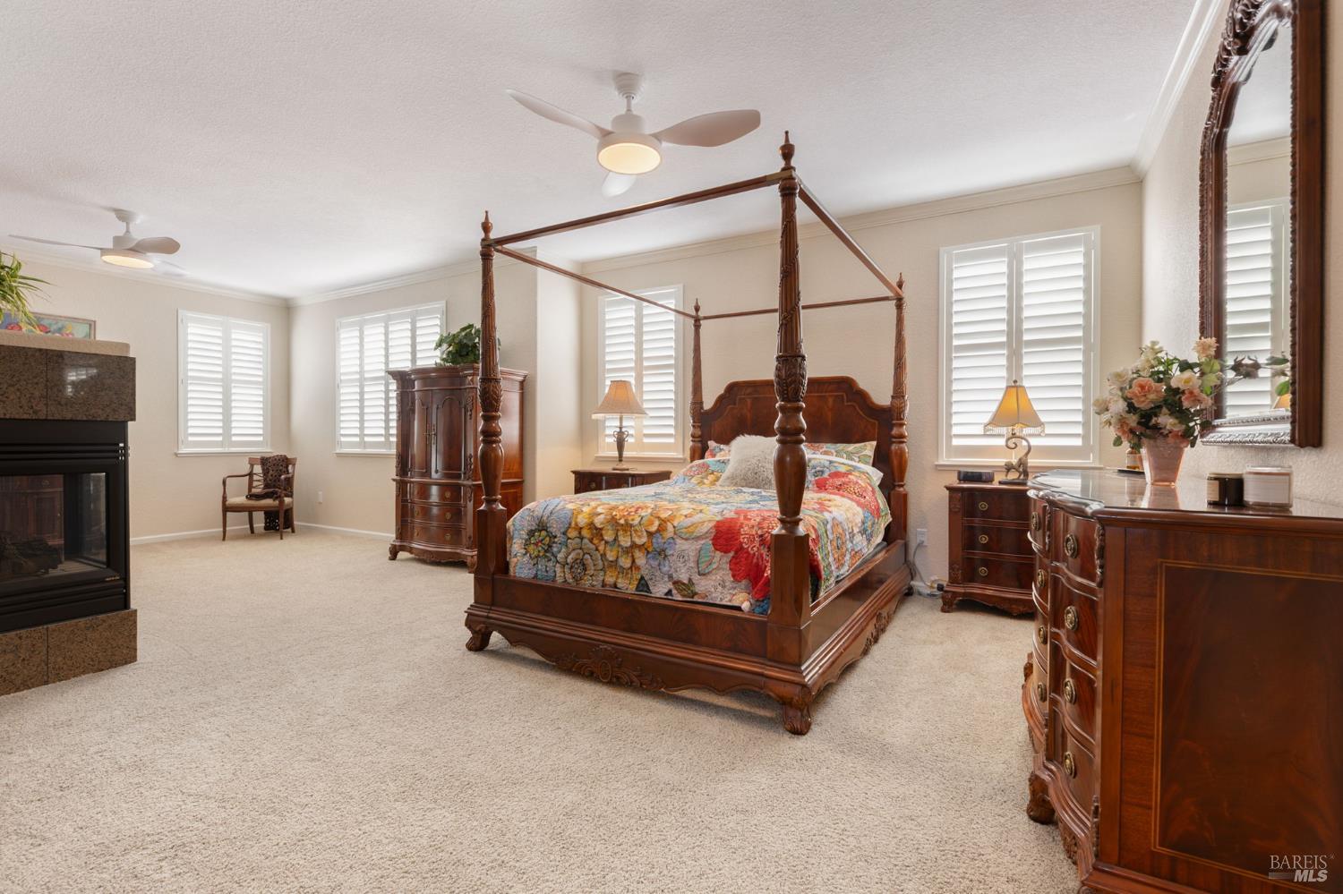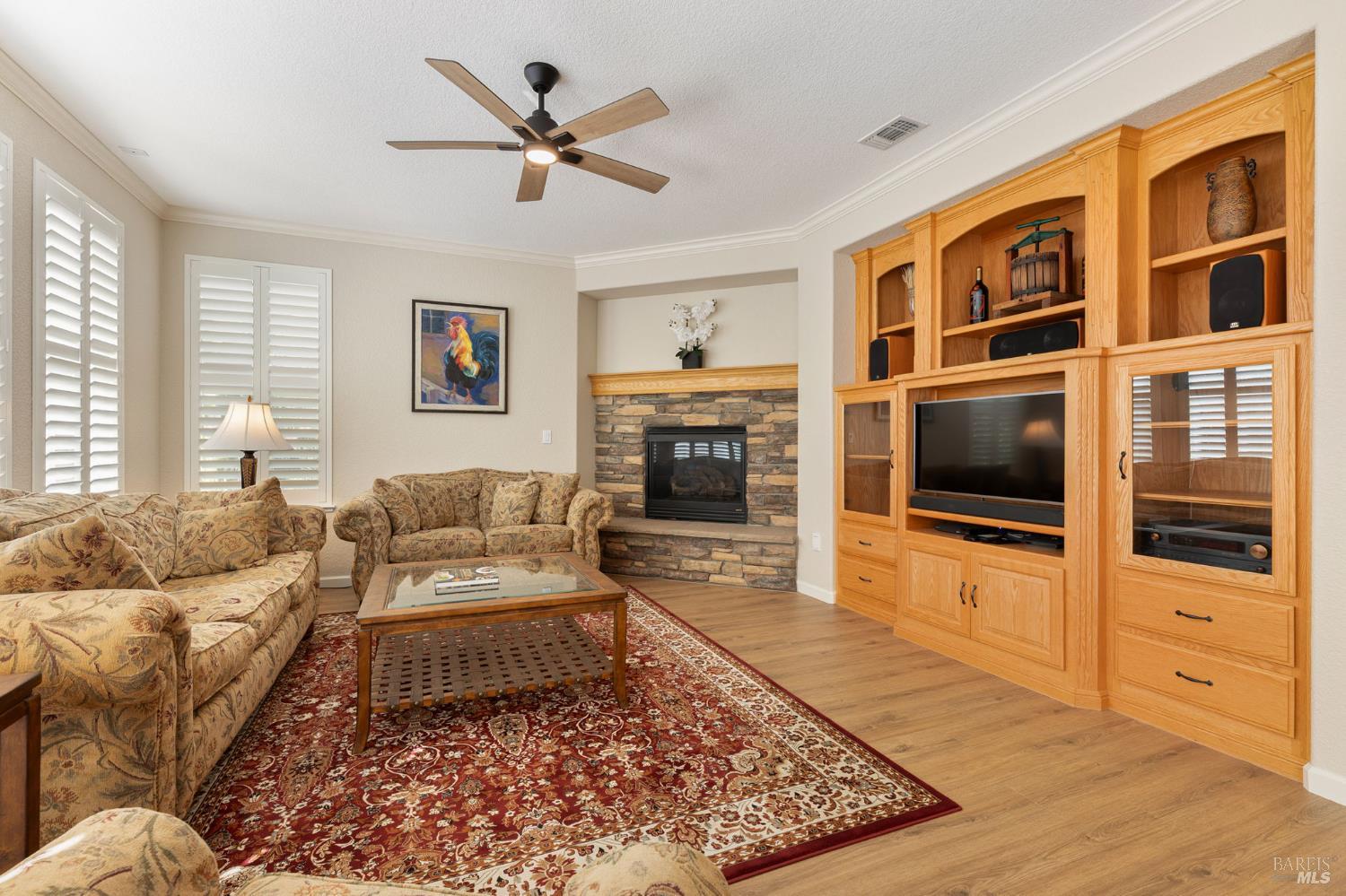 Welcome to this extraordinary home in the sought-after Canterfield neighborhood, where elegance, comfort, and modern convenience meet. With 5 spacious bedrooms, 4 full baths, and over 4,000 sq. ft. of thoughtfully designed living space, this residence blends style and functionality. An inviting entry opens to the formal living and dining rooms, ideal for entertaining. The deluxe kitchen is a chef's dream with natural oak cabinetry, central island, and butler's pantry for extra storage and serving. The breakfast area and adjoining family room provide a warm gathering space with views of the backyard oasis. A main-level bedroom and full bath offer flexibility for guests, extended family, or a home office. Upstairs, the primary suite is a private retreat with a 3-sided fireplace, sitting room, walk-in closet plus cedar wardrobe, and spa-like ensuite with dual vanities and jetted tub. A versatile loft and study area are surrounded by three additional bedrooms and two baths. Added highlights: 3-car tandem garage, dual heat & air, whole house fan, no HOA, no high fire insurance, and NO Mello Roos!