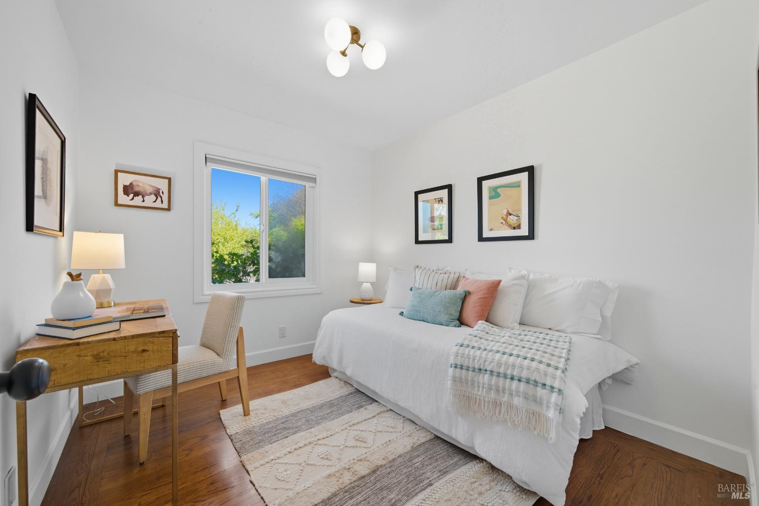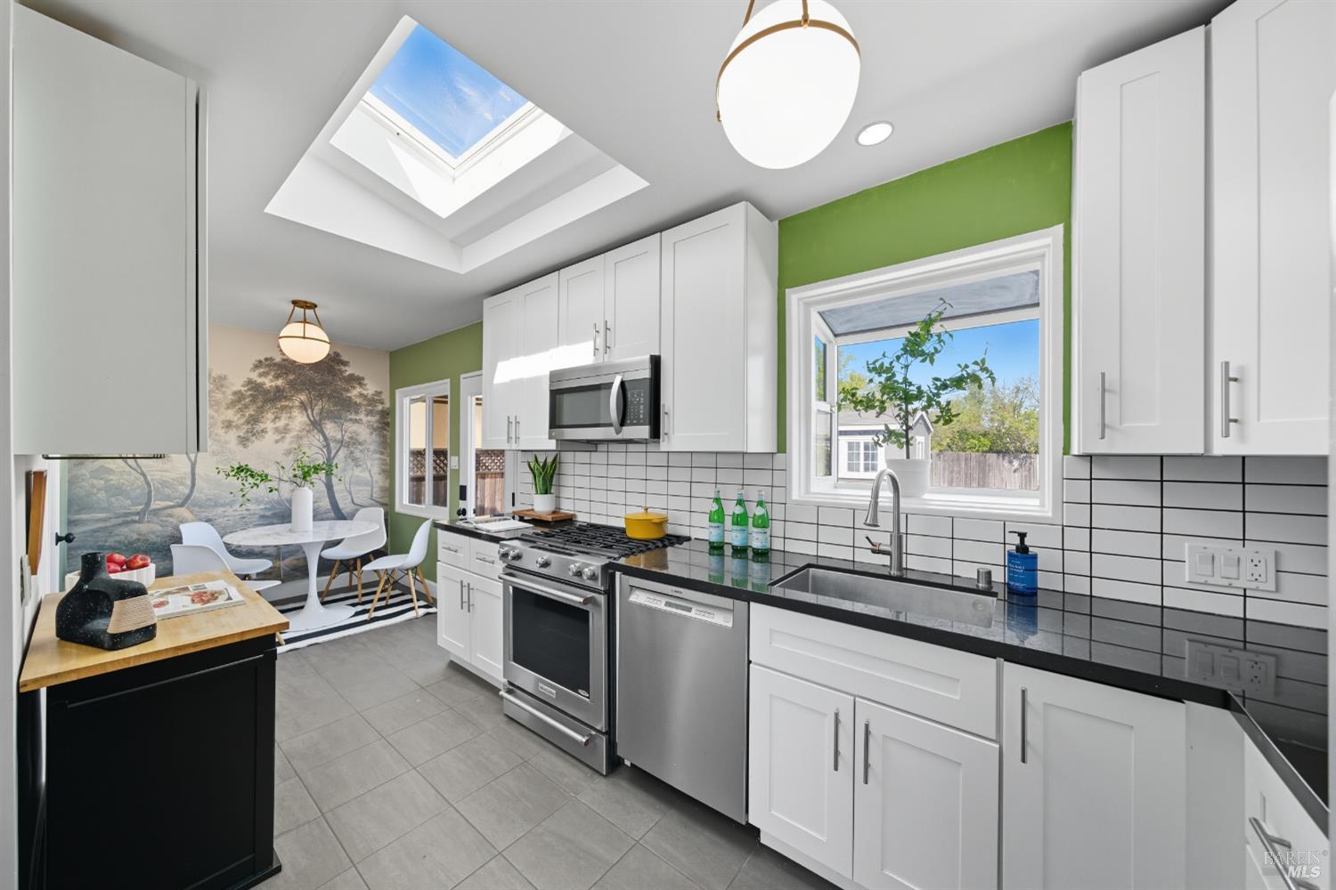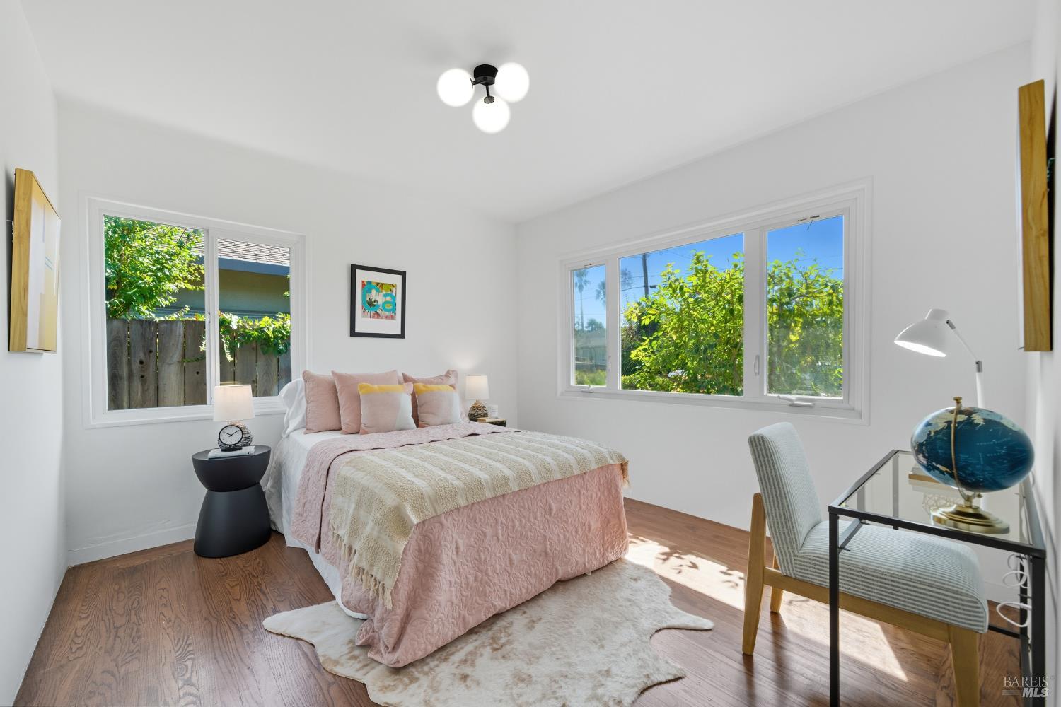 Set on a flat 6,000 square foot lot mid-block on one of the best streets in Santa Venetia, this 3-bedroom, 1-bath Mid-Century is full of potential. The single level home features an open living/dining room with a cozy fireplace. The floor plan offers an easy indoor/outdoor flow & a comfortable space for gathering. The updated kitchen includes a sweet breakfast nook, perfect for everyday dining. A renovated bath as well as direct access to a one-car garage round out the interior of the home. The backyard is a true highlight - spacious, sunny, and ideal for play, pets, or outdoor entertaining. With plenty of room to expand or add an ADU in the future, this home is a smart choice for those looking to put down roots. A large shed in the backyard supplies more options for storage or a flex space. Close to China Camp and near the San Pedro Mountain Preserve, locals enjoy hiking, biking, kayaking and other outdoor activities. Local favorites like Lagoon Park & the San Rafael Farmer's Market are also within reach.