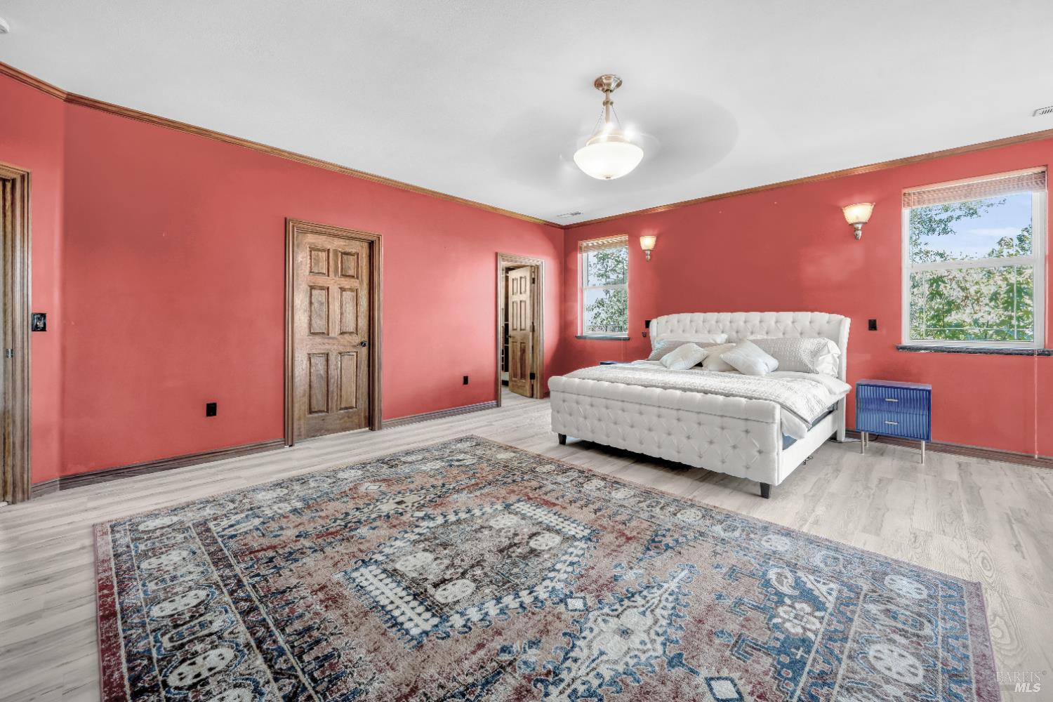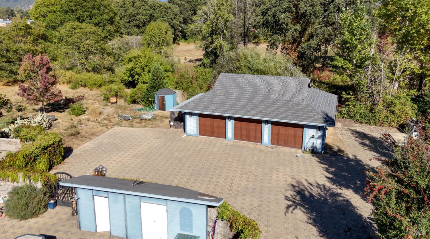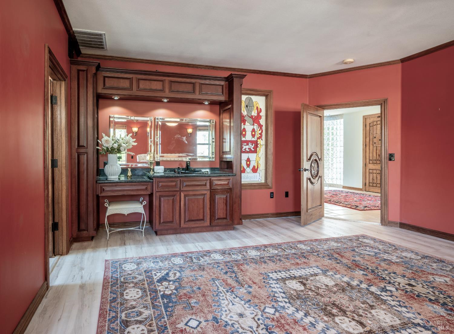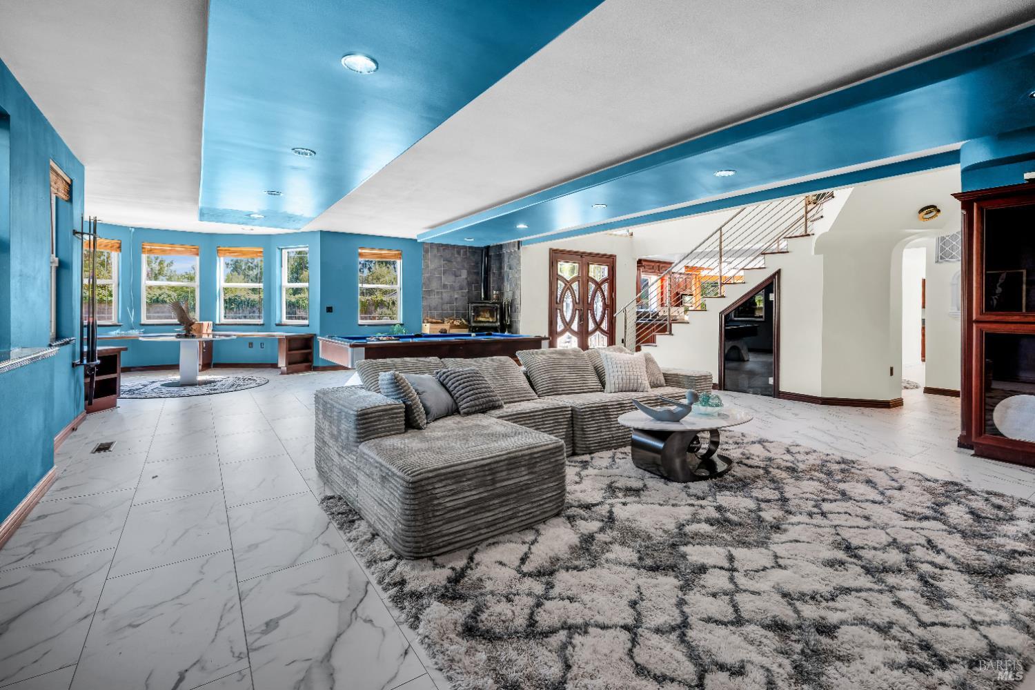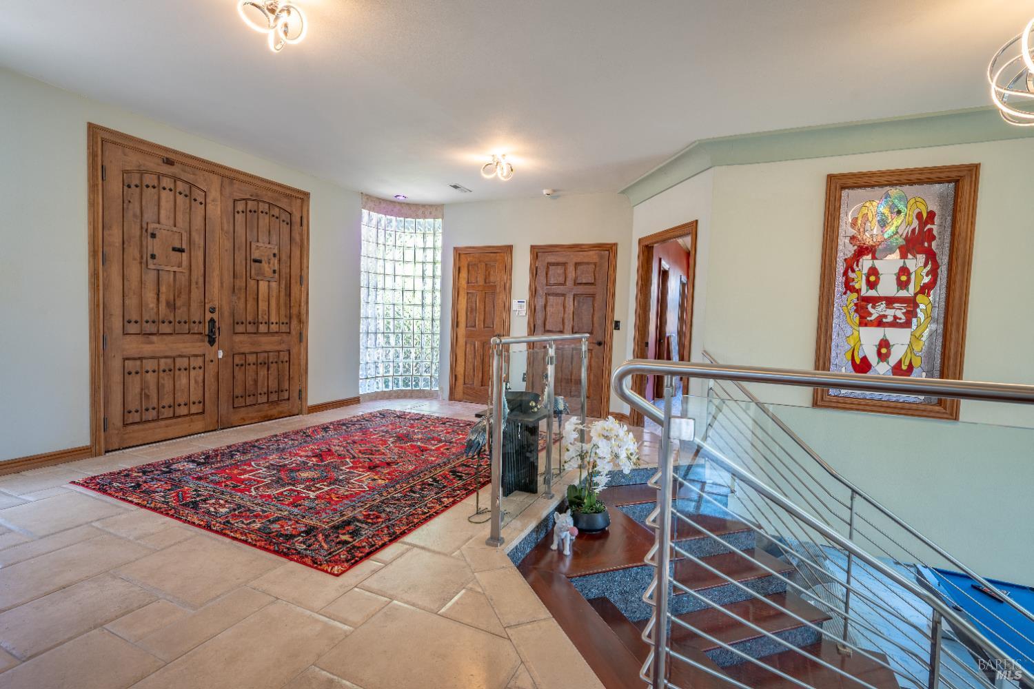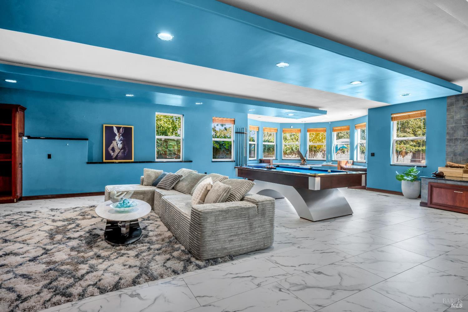 This distinctive luxury estate blends modern design with European chateau elegance, featuring twin turreted wings that give the home a castle-inspired presence. Spanning 3 parcels and over 2 acres, the property offers resort-style living with a salt water pool, hot tub, outdoor BBQ, and pizza oven. The large 3-car and RV/toy detached garages provide ample storage. Expansive paver driveways and open half-acre garden space add both beauty and function. Inside, a gourmet chef's kitchen with high-end appliances, a grand staircase, and formal office with pool views. The Home theater and pool table set the stage for fine living. This master suite boasts great natural lighting, enormous walk-in closet, and an oversized jetted tub. Stucco and stone exteriors, new LVP flooring throughout, 2 fireplaces, and an on-demand hot water enhance the comfort and style. Riparian water rights, a full backup generator, and Honeywell security system ensure peace of mind. With commercial zoning allowing mixed-use possibilities, this one-of-a-kind property offers the perfect balance of elegance, function, and opportunity. Live and work from home in style!