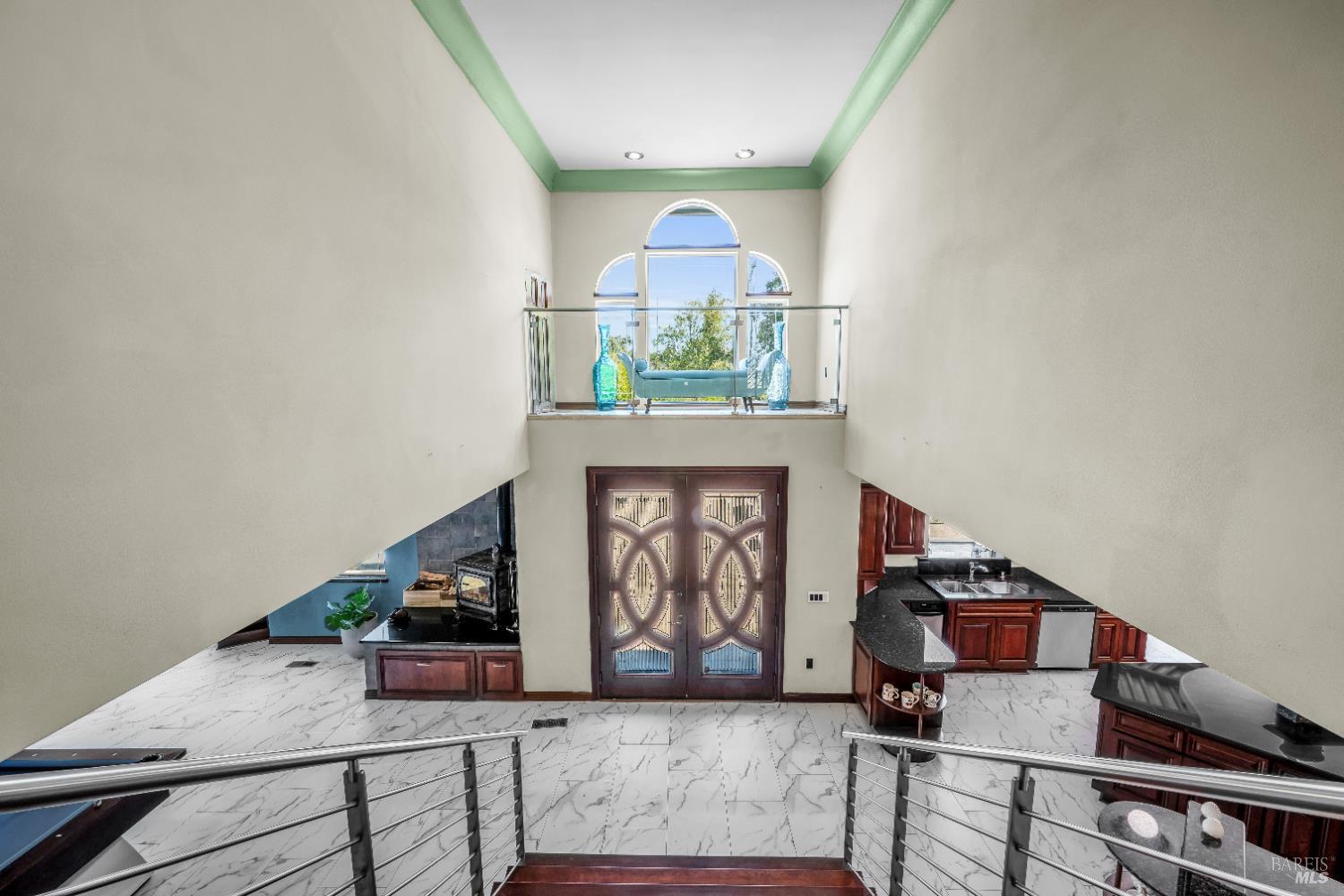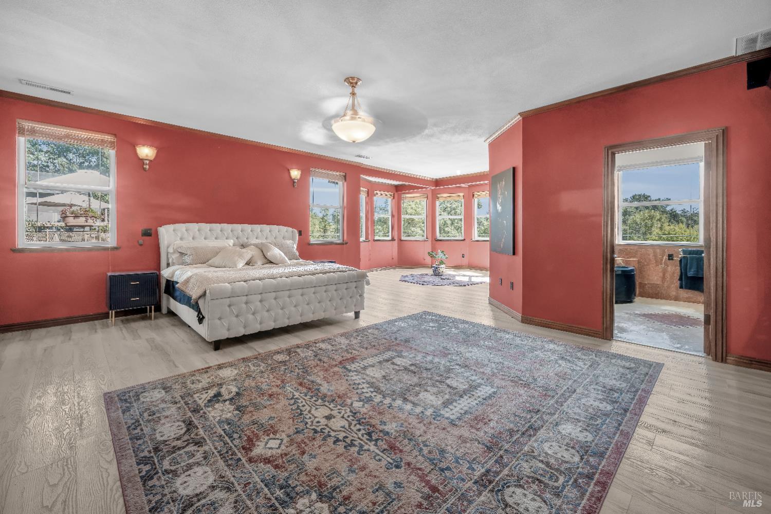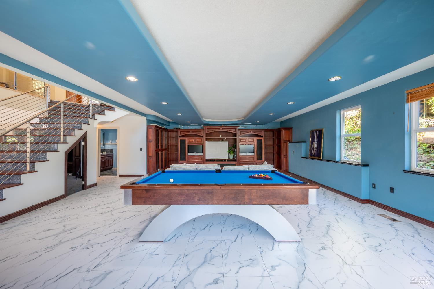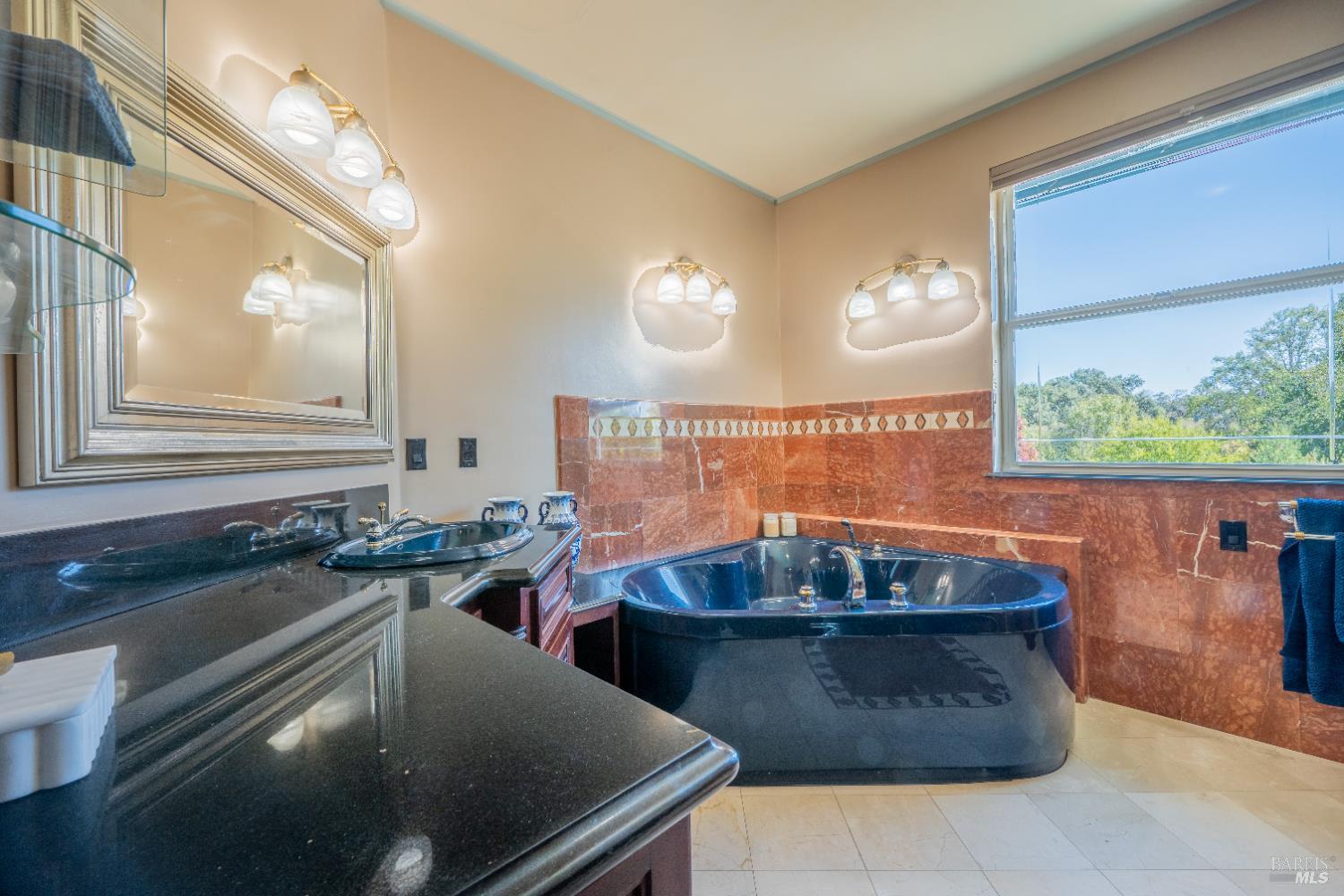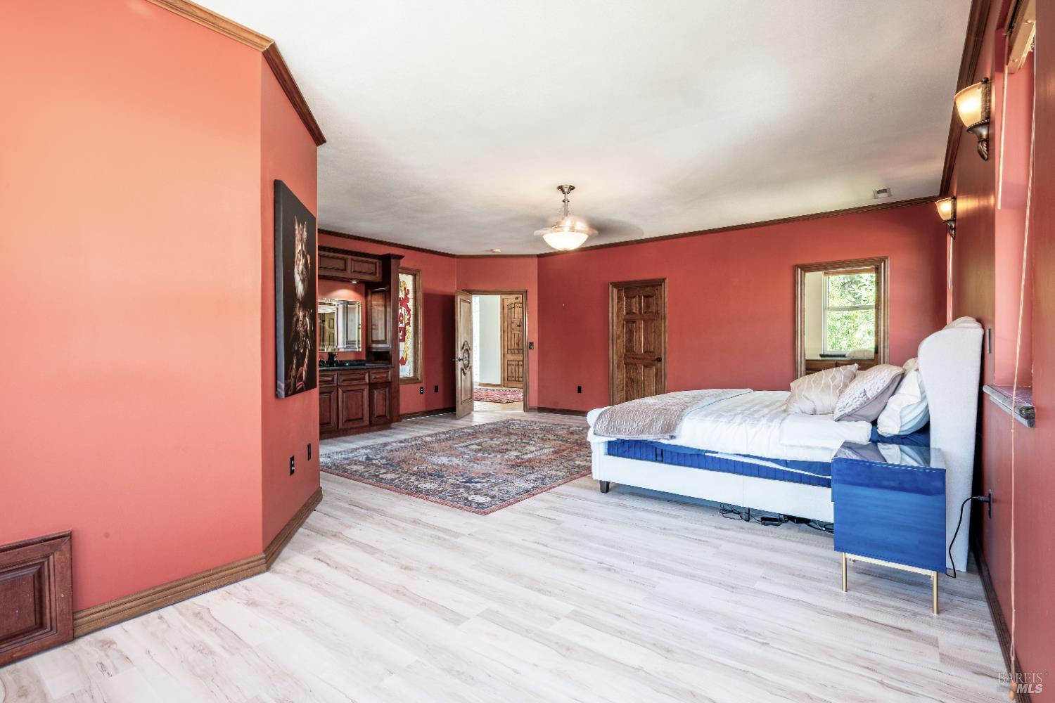 This distinctive luxury estate blends modern design with European chateau elegance, featuring twin turreted wings that give the home a castle-inspired presence. Spanning 3 parcels and over 2 acres, the property offers resort-style living with a salt water pool, hot tub, outdoor BBQ, and pizza oven. The large 3-car and RV/toy detached garages provide ample storage. Expansive paver driveways and open half-acre garden space add both beauty and function. Inside, a gourmet chef's kitchen with high-end appliances, a grand staircase, and formal office with pool views. The Home theater and pool table set the stage for fine living. This master suite boasts great natural lighting, enormous walk-in closet, and an oversized jetted tub. Stucco and stone exteriors, new LVP flooring throughout, 2 fireplaces, and an on-demand hot water enhance the comfort and style. Riparian water rights, a full backup generator, and Honeywell security system ensure peace of mind. With commercial zoning allowing mixed-use possibilities, this one-of-a-kind property offers the perfect balance of elegance, function, and opportunity. Live and work from home in style!