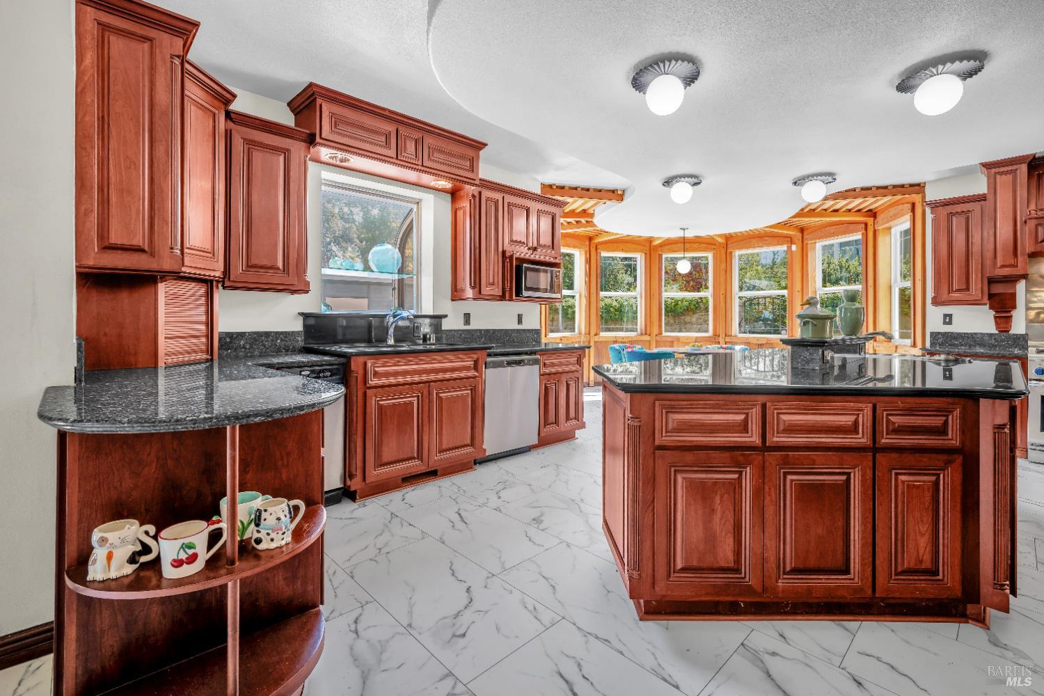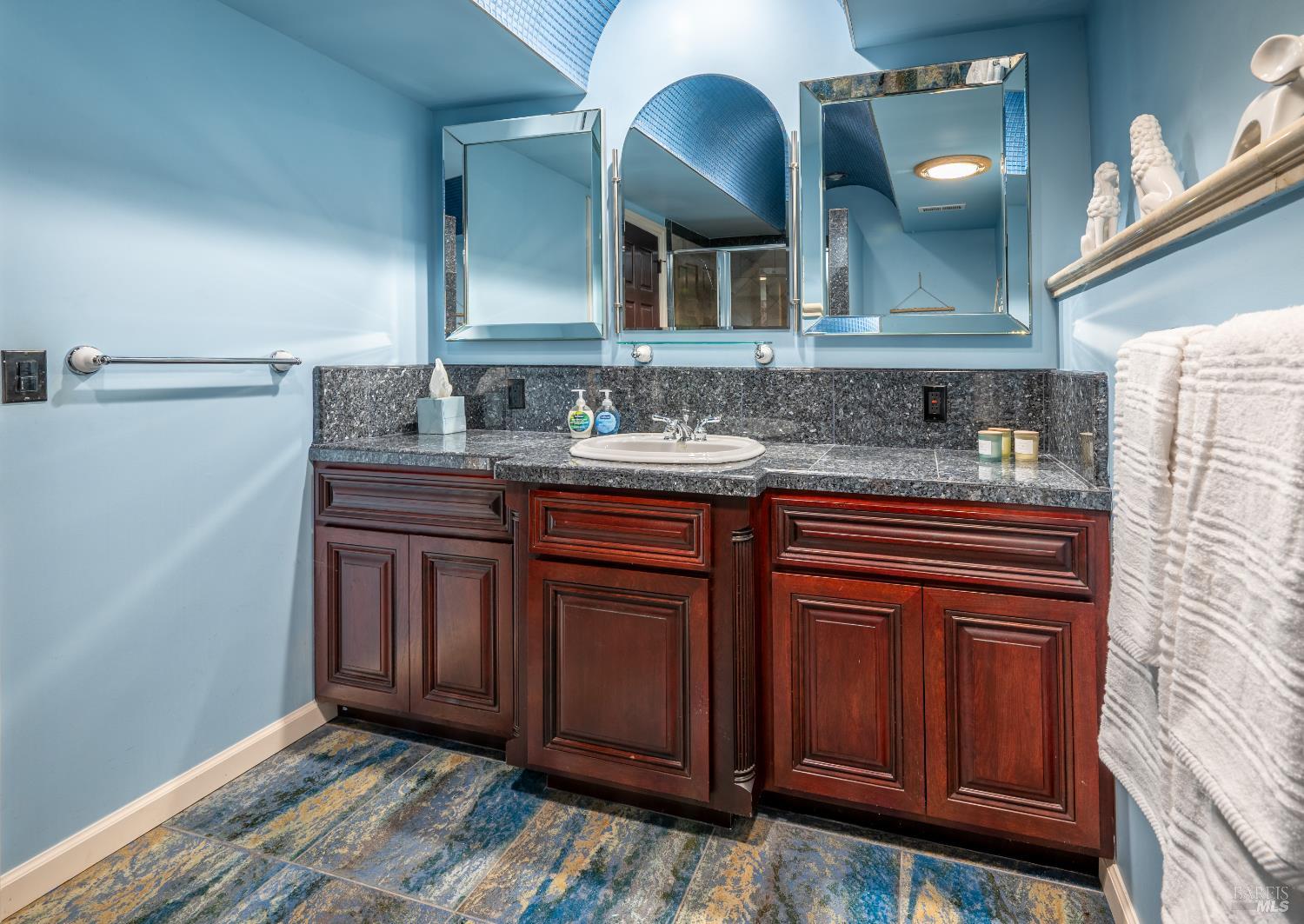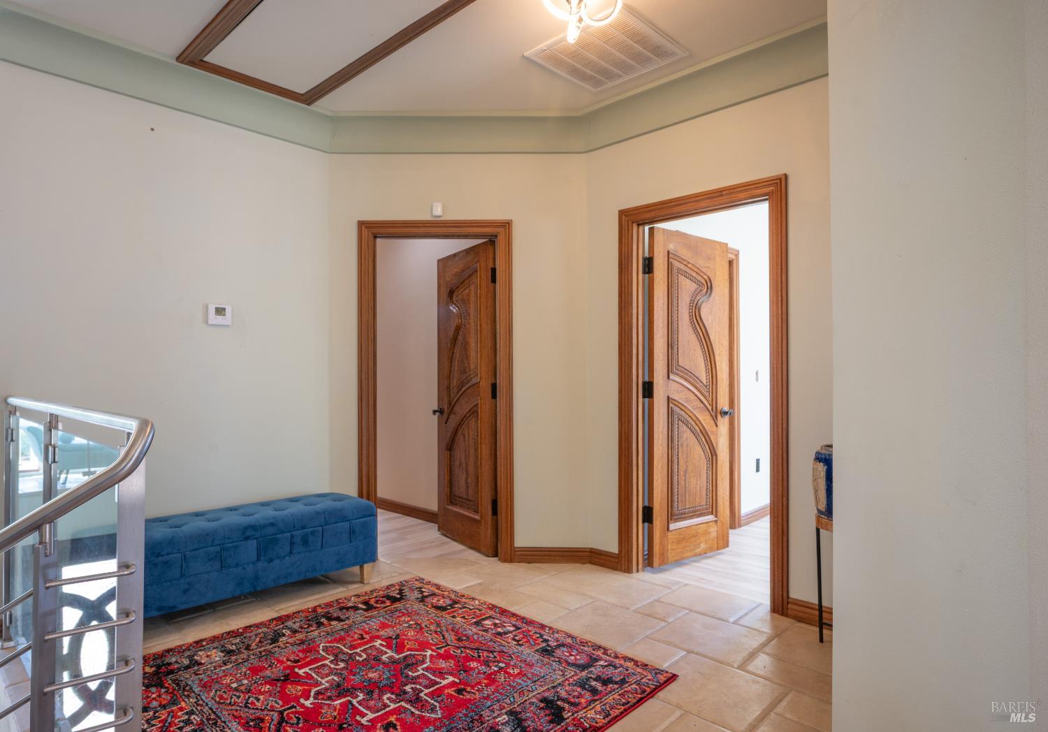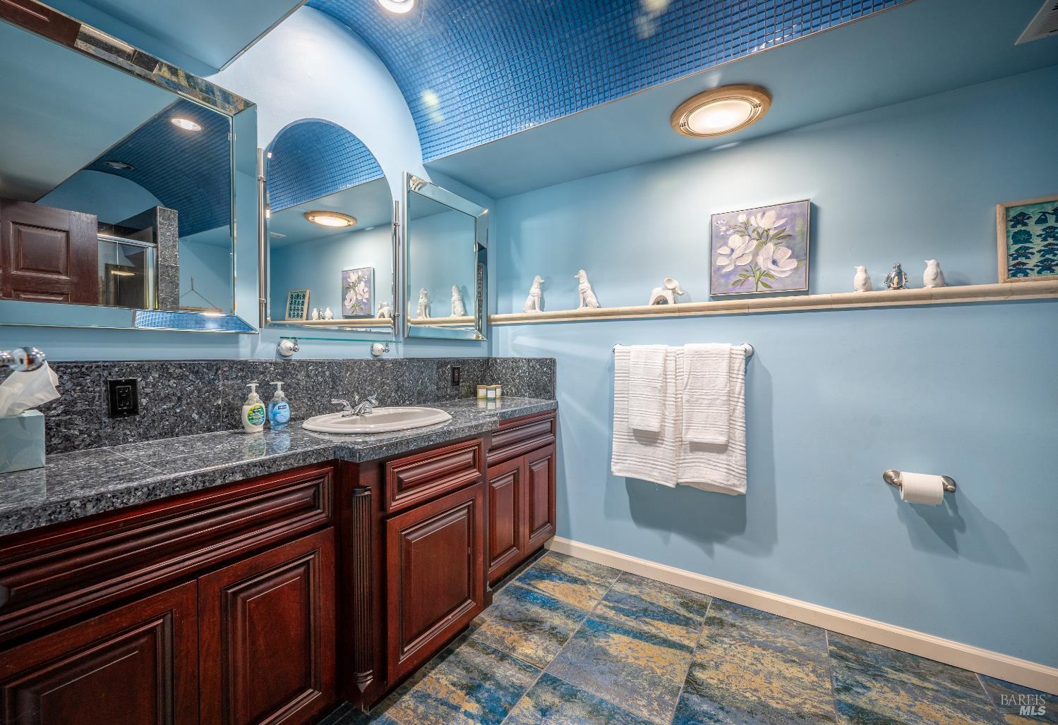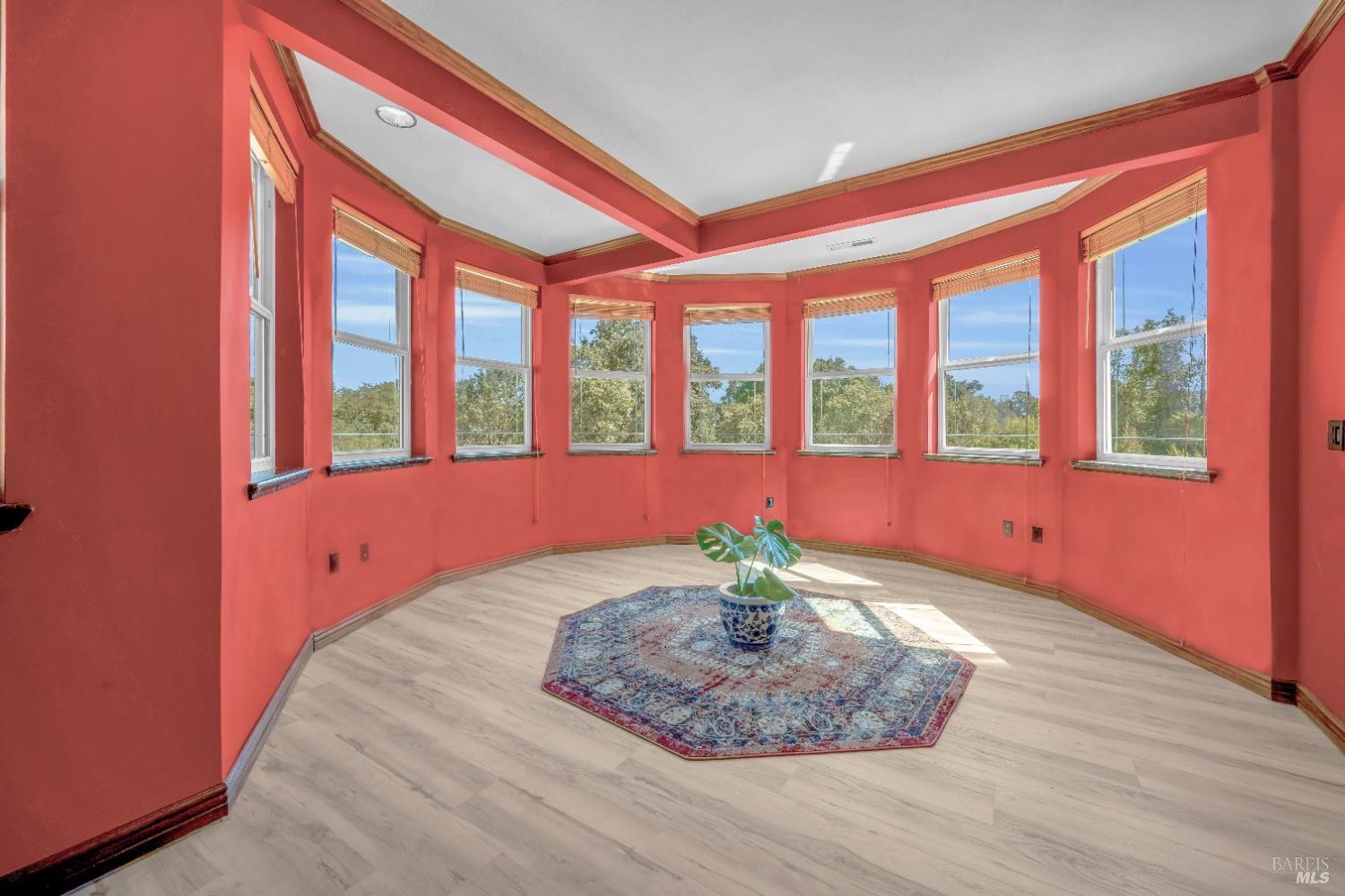 This distinctive luxury estate blends modern design with European chateau elegance, featuring twin turreted wings that give the home a castle-inspired presence. Spanning 3 parcels and over 2 acres, the property offers resort-style living with a salt water pool, hot tub, outdoor BBQ, and pizza oven. The large 3-car and RV/toy detached garages provide ample storage. Expansive paver driveways and open half-acre garden space add both beauty and function. Inside, a gourmet chef's kitchen with high-end appliances, a grand staircase, and formal office with pool views. The Home theater and pool table set the stage for fine living. This master suite boasts great natural lighting, enormous walk-in closet, and an oversized jetted tub. Stucco and stone exteriors, new LVP flooring throughout, 2 fireplaces, and an on-demand hot water enhance the comfort and style. Riparian water rights, a full backup generator, and Honeywell security system ensure peace of mind. With commercial zoning allowing mixed-use possibilities, this one-of-a-kind property offers the perfect balance of elegance, function, and opportunity. Live and work from home in style!