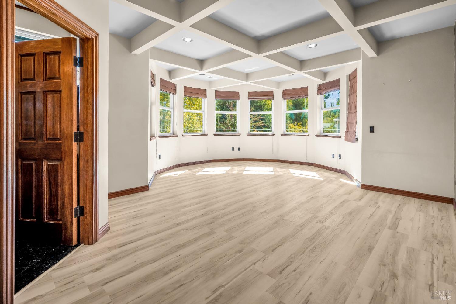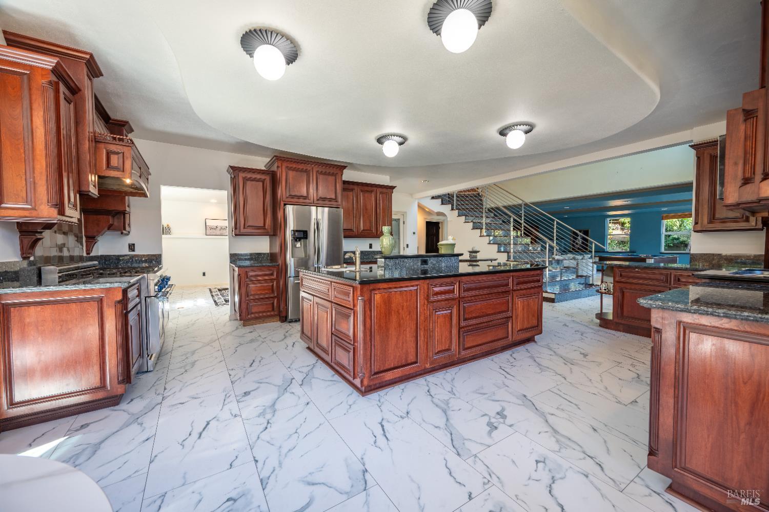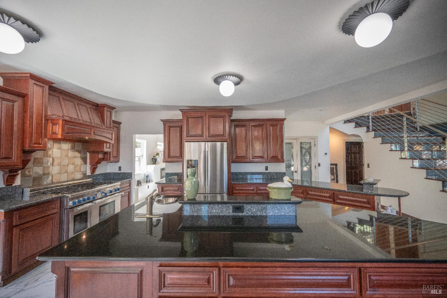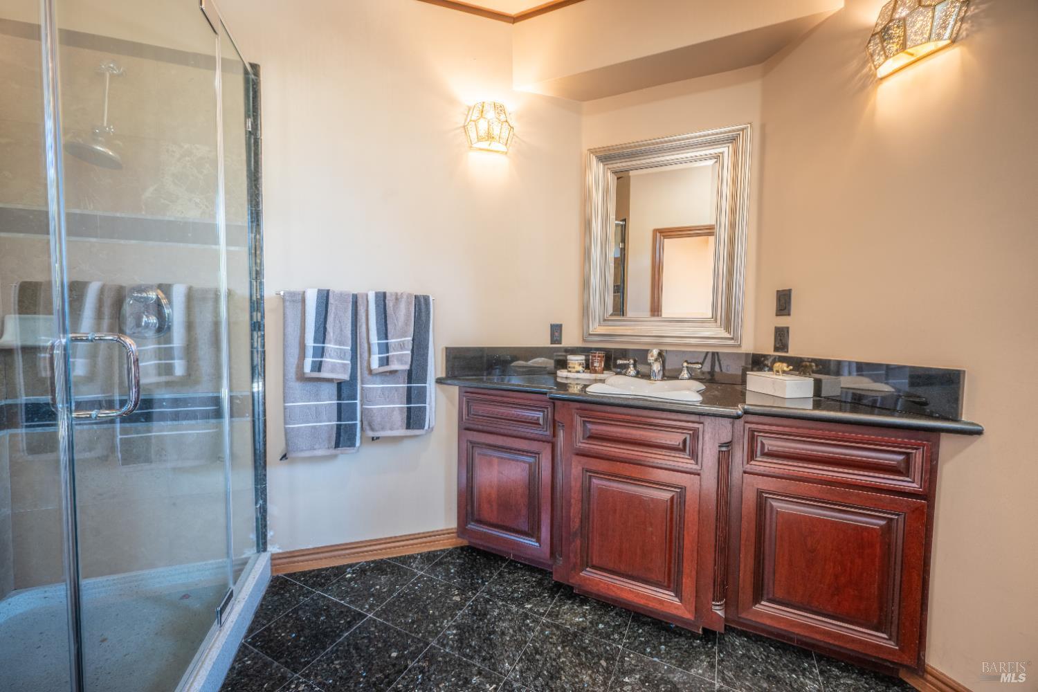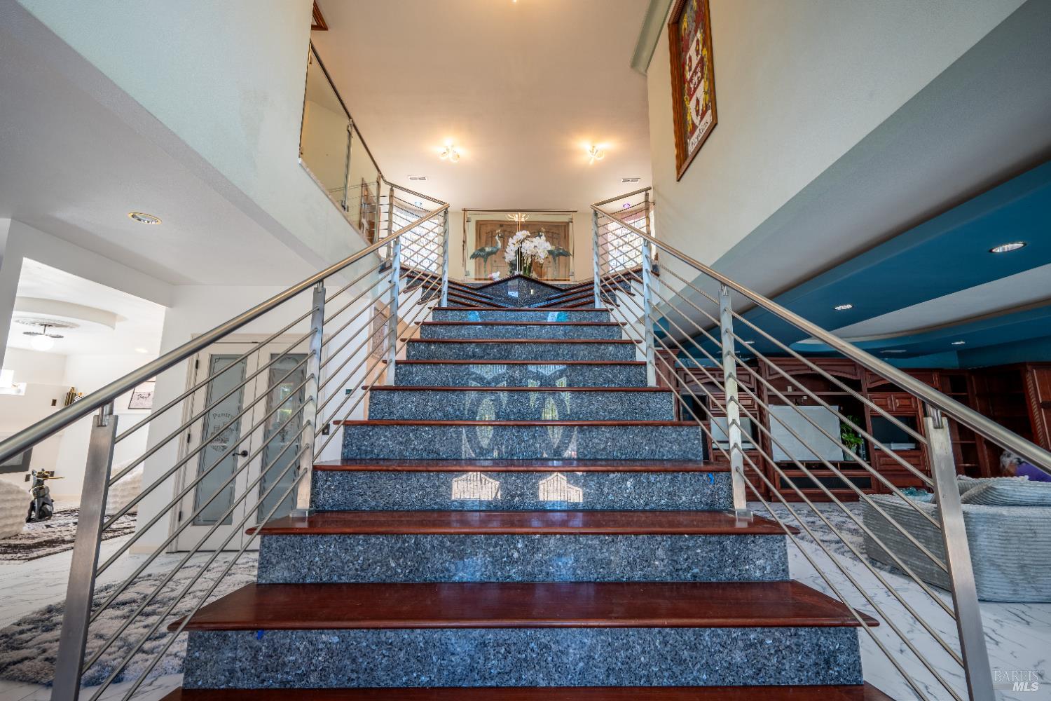 This distinctive luxury estate blends modern design with European chateau elegance, featuring twin turreted wings that give the home a castle-inspired presence. Spanning 3 parcels and over 2 acres, the property offers resort-style living with a salt water pool, hot tub, outdoor BBQ, and pizza oven. The large 3-car and RV/toy detached garages provide ample storage. Expansive paver driveways and open half-acre garden space add both beauty and function. Inside, a gourmet chef's kitchen with high-end appliances, a grand staircase, and formal office with pool views. The Home theater and pool table set the stage for fine living. This master suite boasts great natural lighting, enormous walk-in closet, and an oversized jetted tub. Stucco and stone exteriors, new LVP flooring throughout, 2 fireplaces, and an on-demand hot water enhance the comfort and style. Riparian water rights, a full backup generator, and Honeywell security system ensure peace of mind. With commercial zoning allowing mixed-use possibilities, this one-of-a-kind property offers the perfect balance of elegance, function, and opportunity. Live and work from home in style!