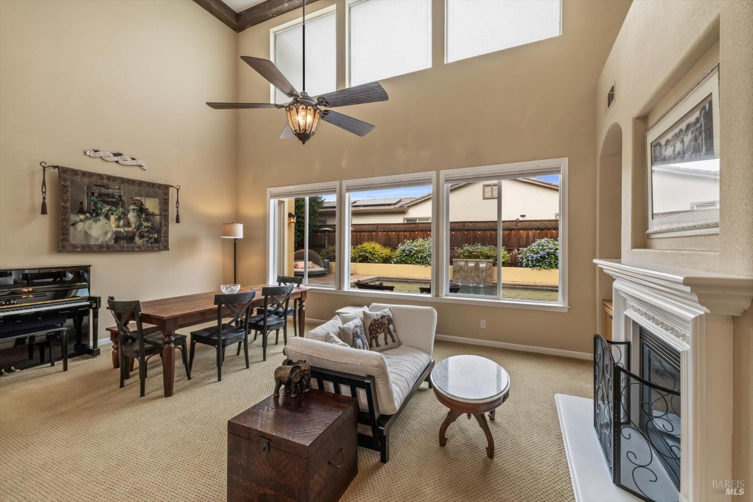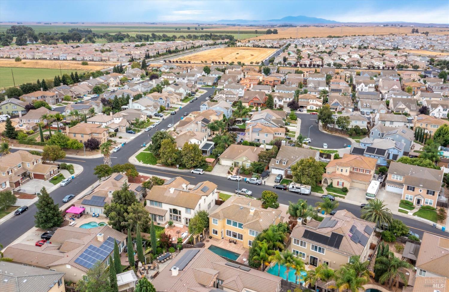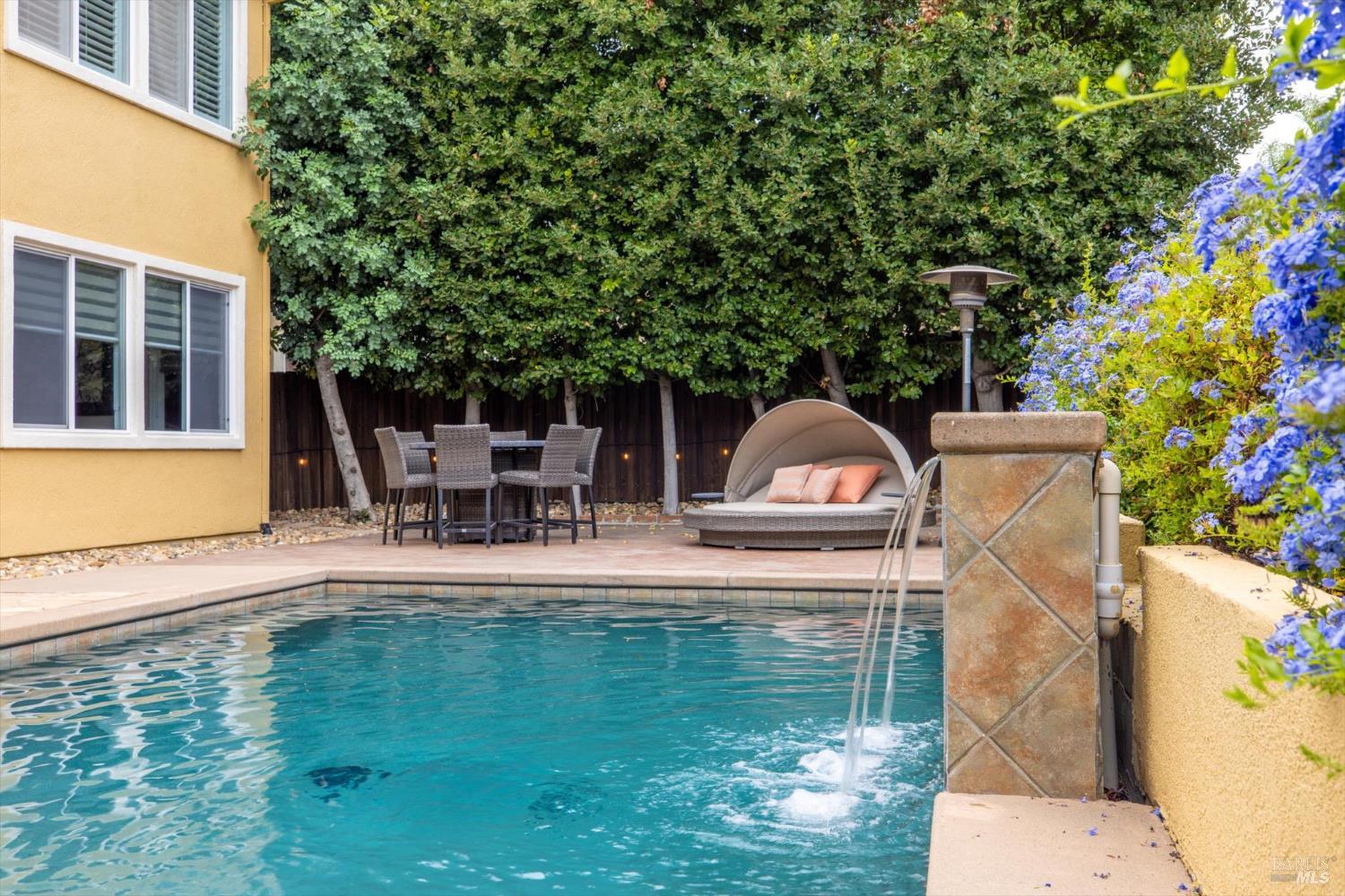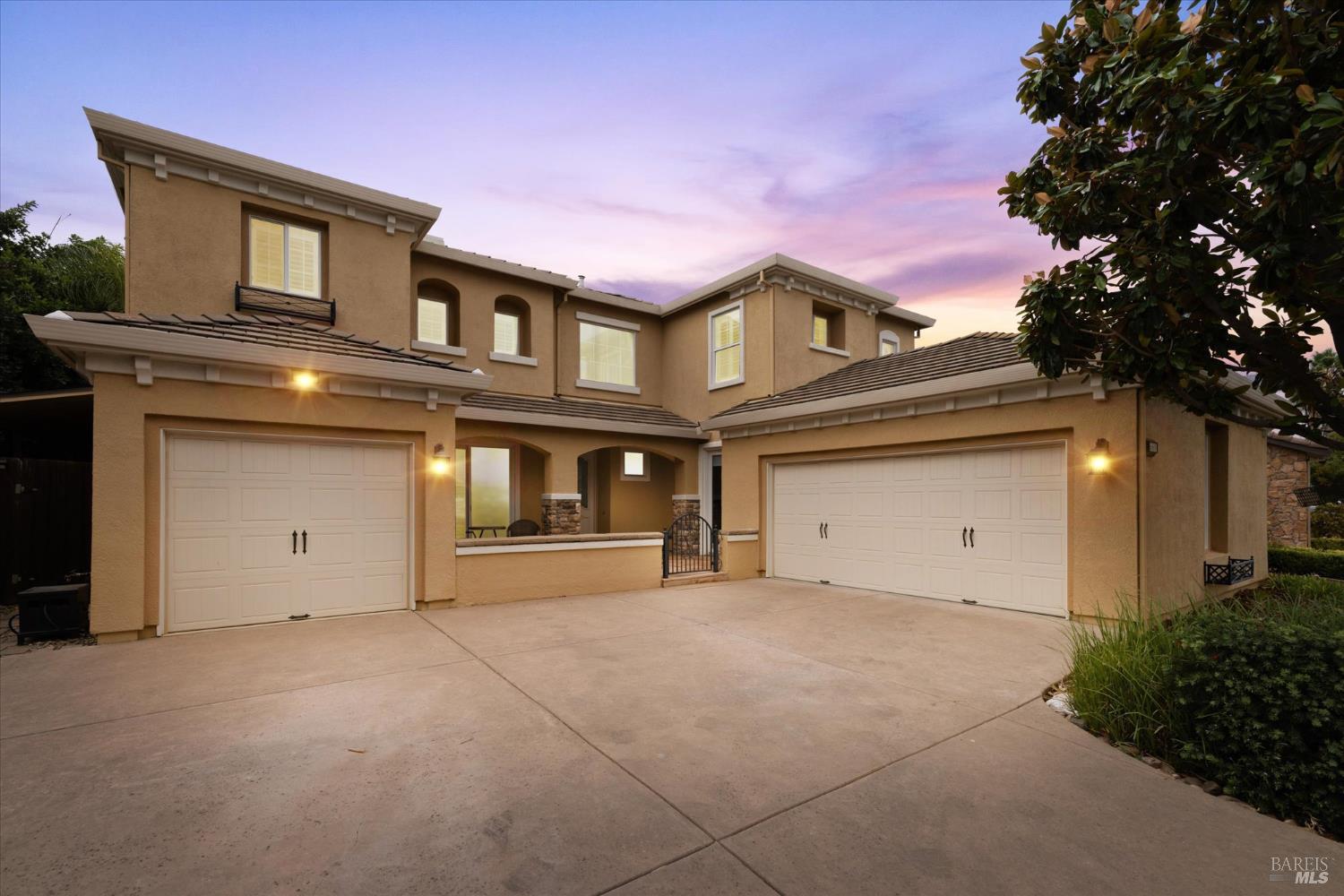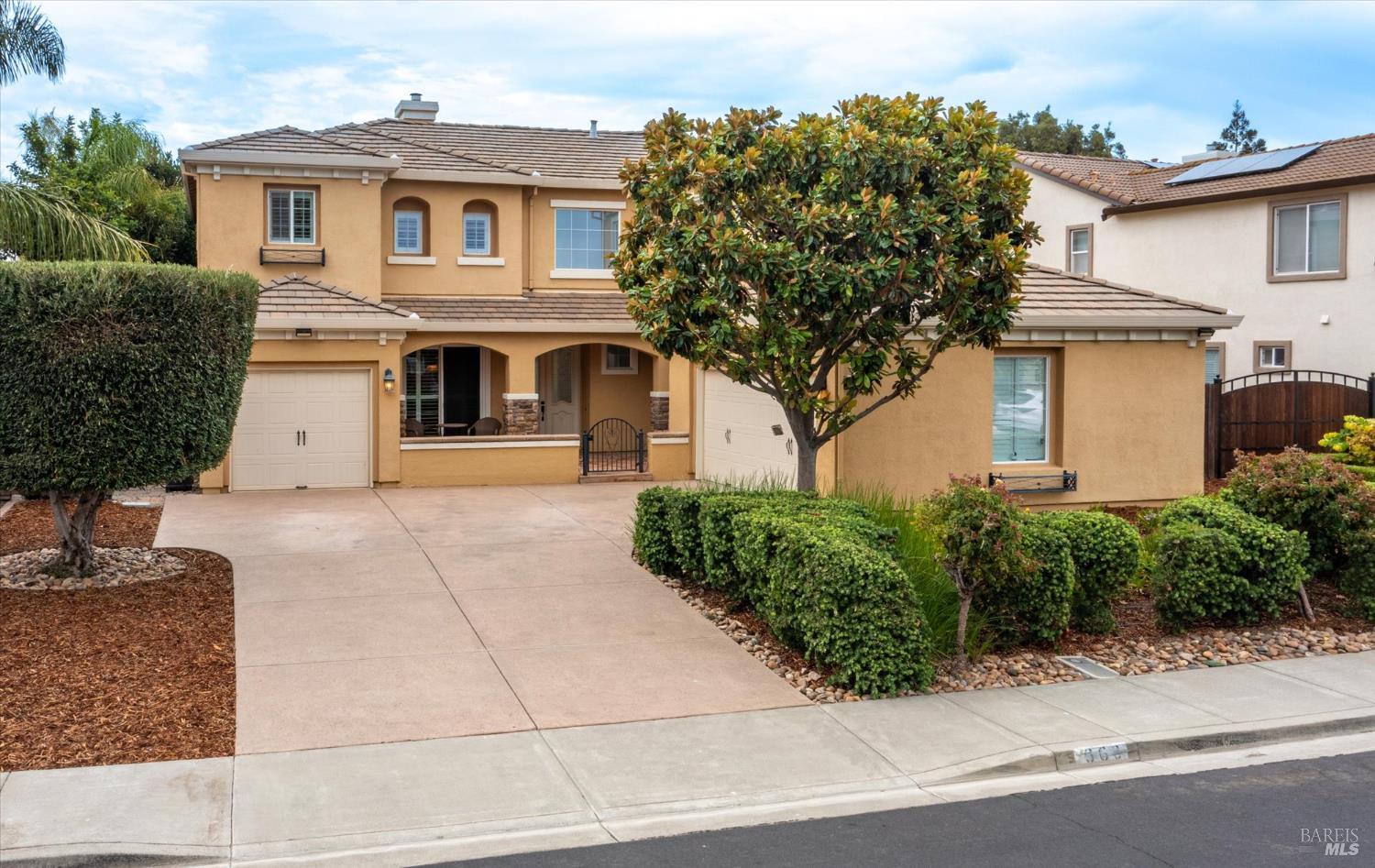 Former model home with style & comfort! Soaring open-beam ceilings, 3 gas fireplaces, and distressed hardwood floors set the tone. Gourmet kitchen with Monogram built-in appliances, beautiful birch cabinets throughout, large island, pantry & breakfast nook with custom built-ins. Downstairs bedroom with French doors to backyard plus den with front patio access. Expansive primary suite with 2 walk-in closets, fireplace & spa-like bath with jetted tub. Custom window coverings throughout. Resort-style backyard with pebble-bottom pool & waterfall, mature trees, pergola with lights, and low-maintenance landscaping. Dual-zone AC, organized closets, and thoughtful details throughout, plus a custom covered dog run on the side of the home complete this one-of-a-kind Vacaville gem!