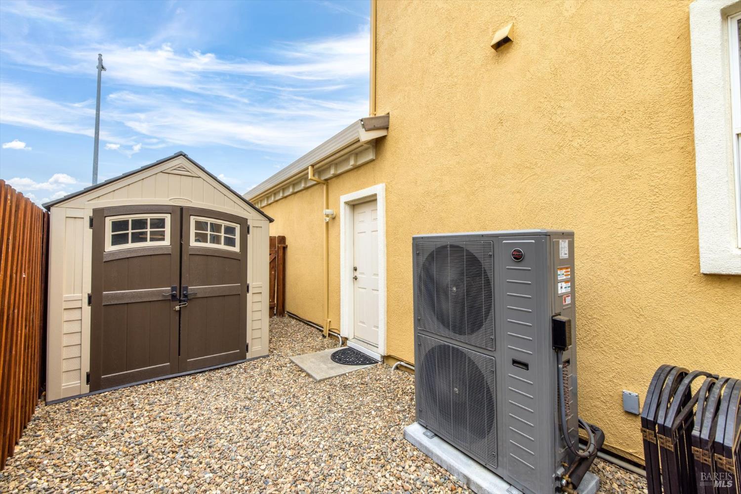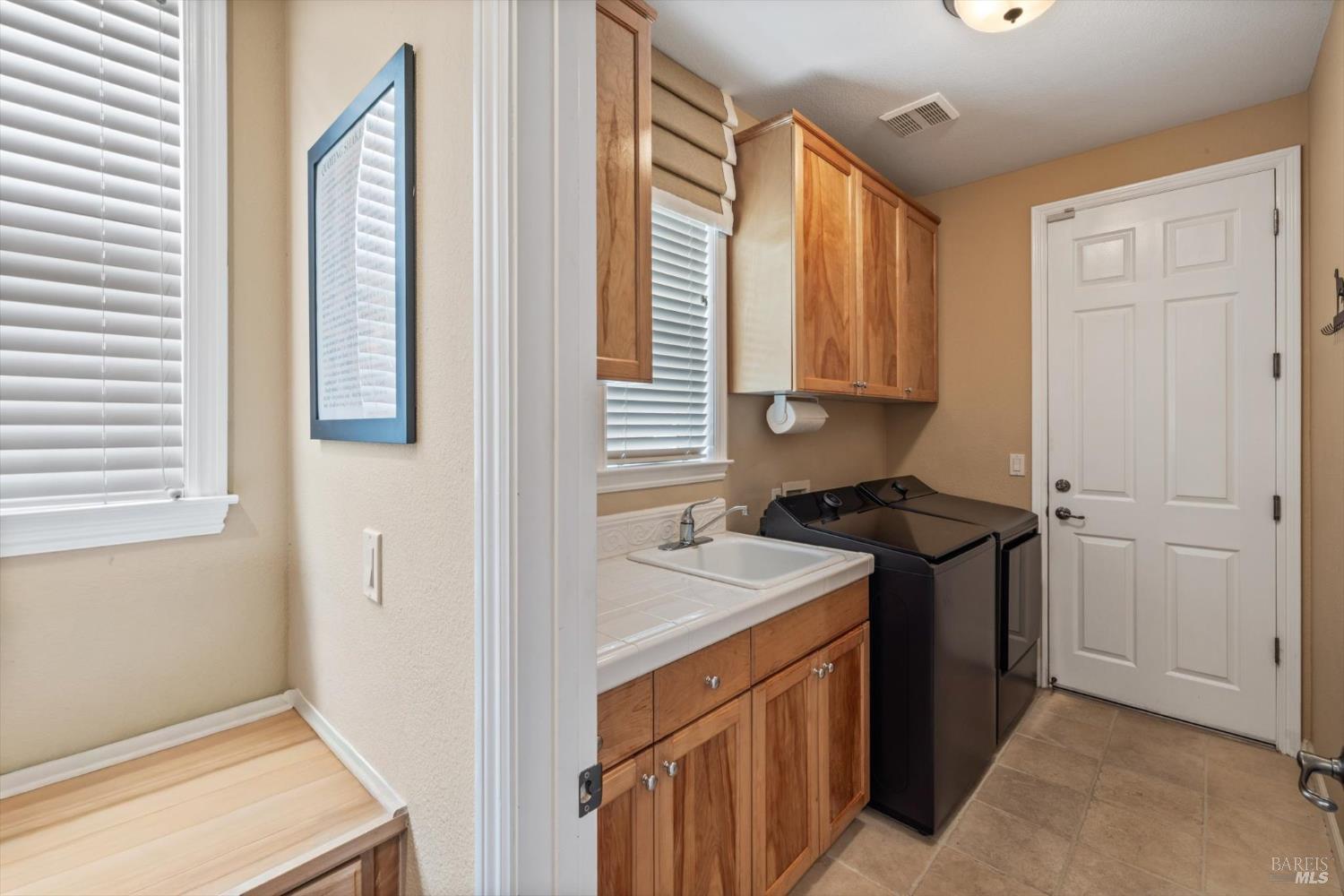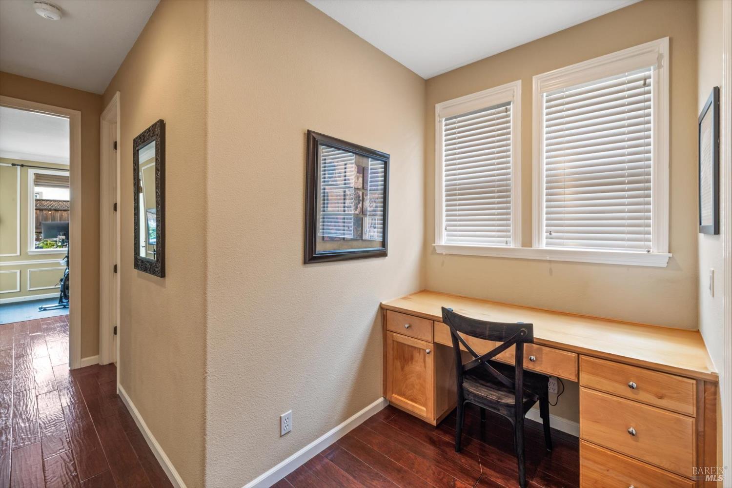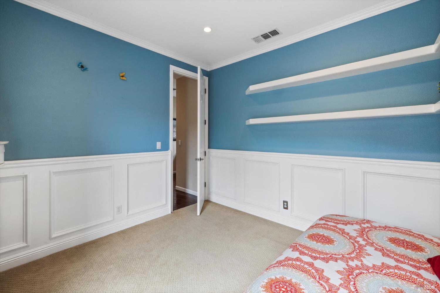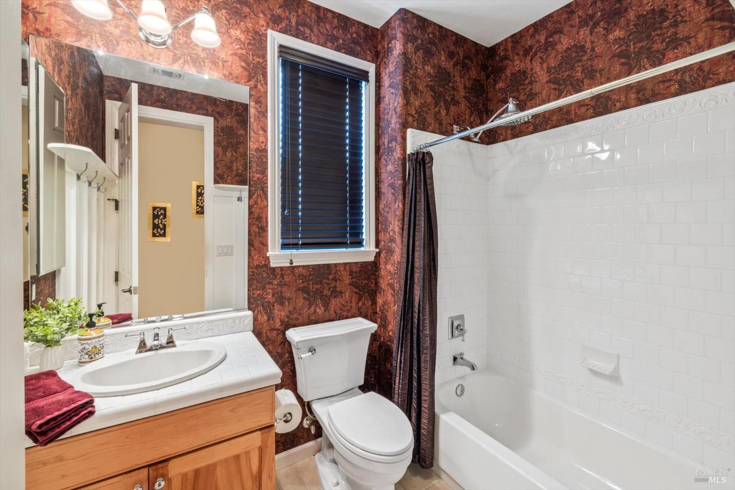 Former model home with style & comfort! Soaring open-beam ceilings, 3 gas fireplaces, and distressed hardwood floors set the tone. Gourmet kitchen with Monogram built-in appliances, beautiful birch cabinets throughout, large island, pantry & breakfast nook with custom built-ins. Downstairs bedroom with French doors to backyard plus den with front patio access. Expansive primary suite with 2 walk-in closets, fireplace & spa-like bath with jetted tub. Custom window coverings throughout. Resort-style backyard with pebble-bottom pool & waterfall, mature trees, pergola with lights, and low-maintenance landscaping. Dual-zone AC, organized closets, and thoughtful details throughout, plus a custom covered dog run on the side of the home complete this one-of-a-kind Vacaville gem!