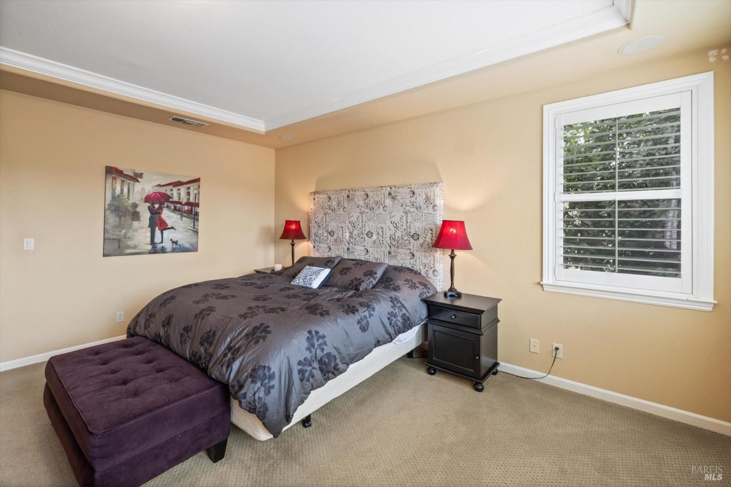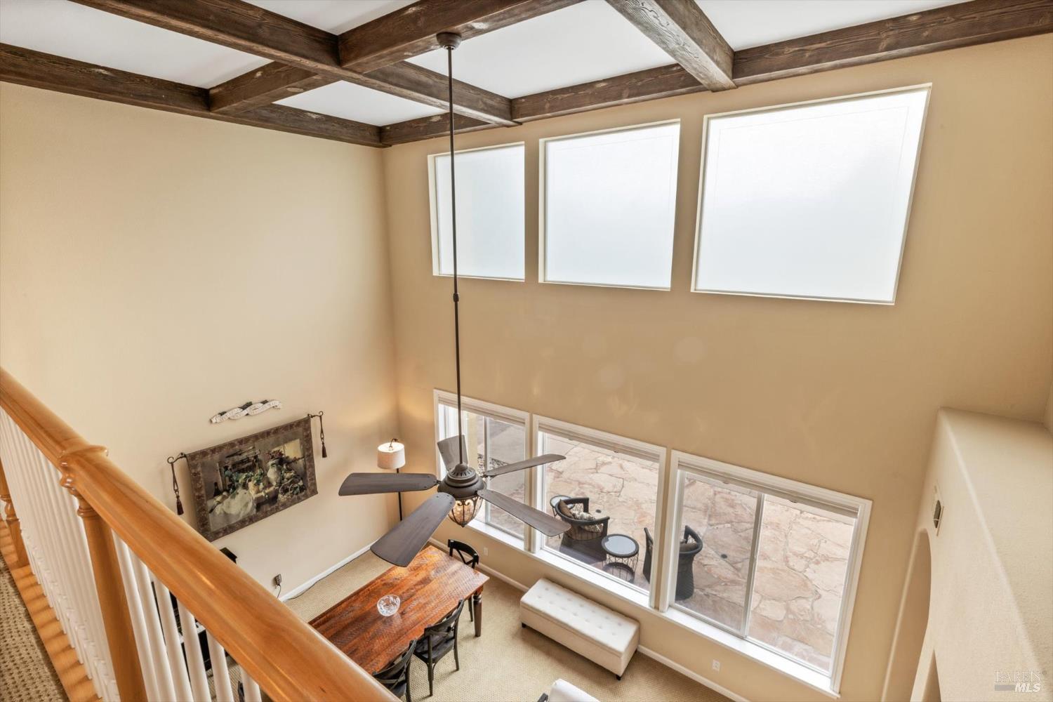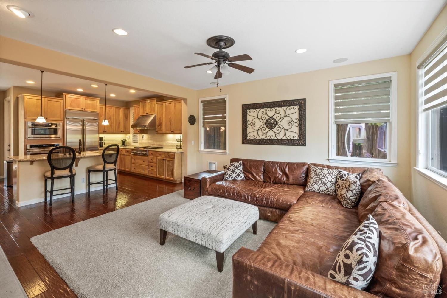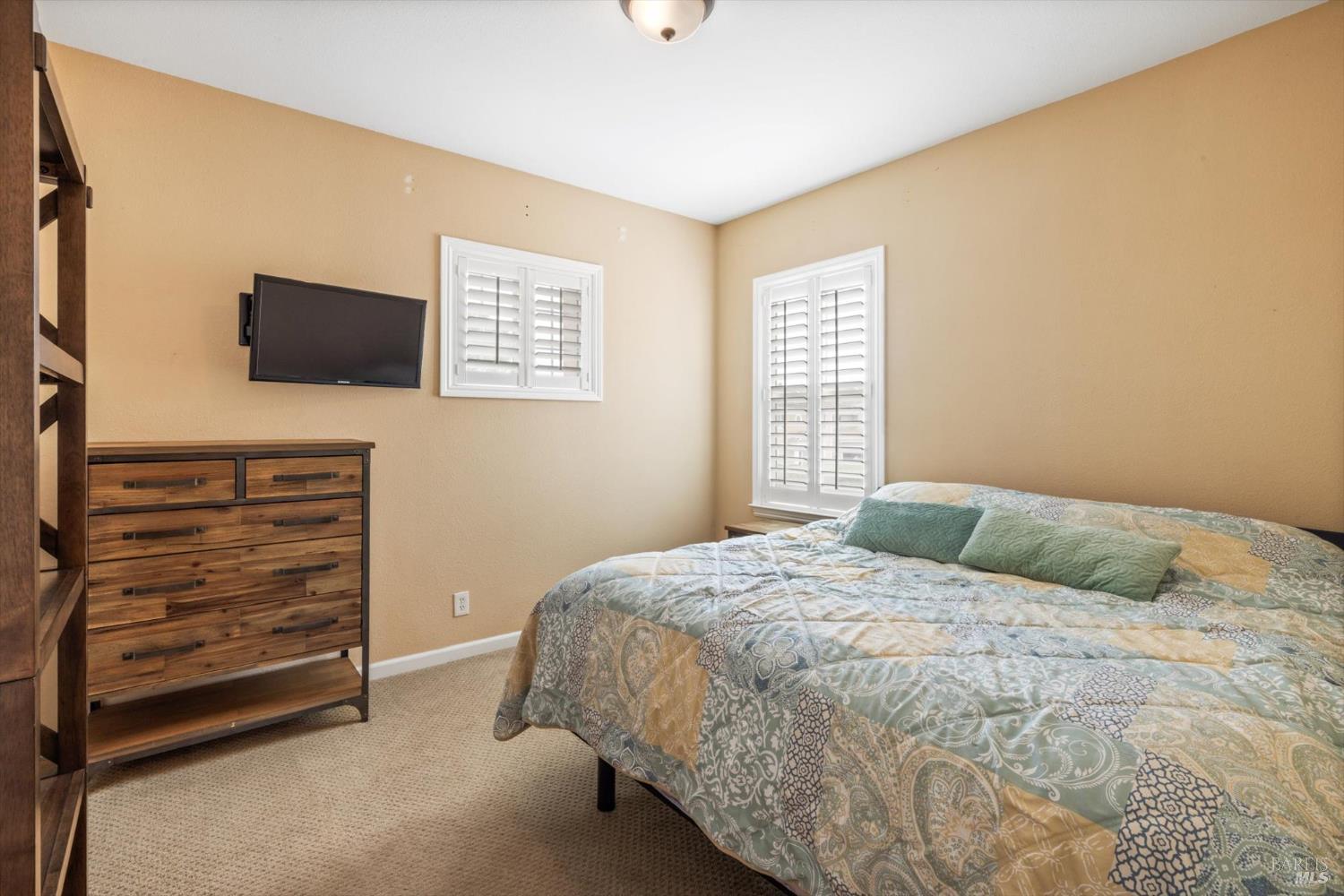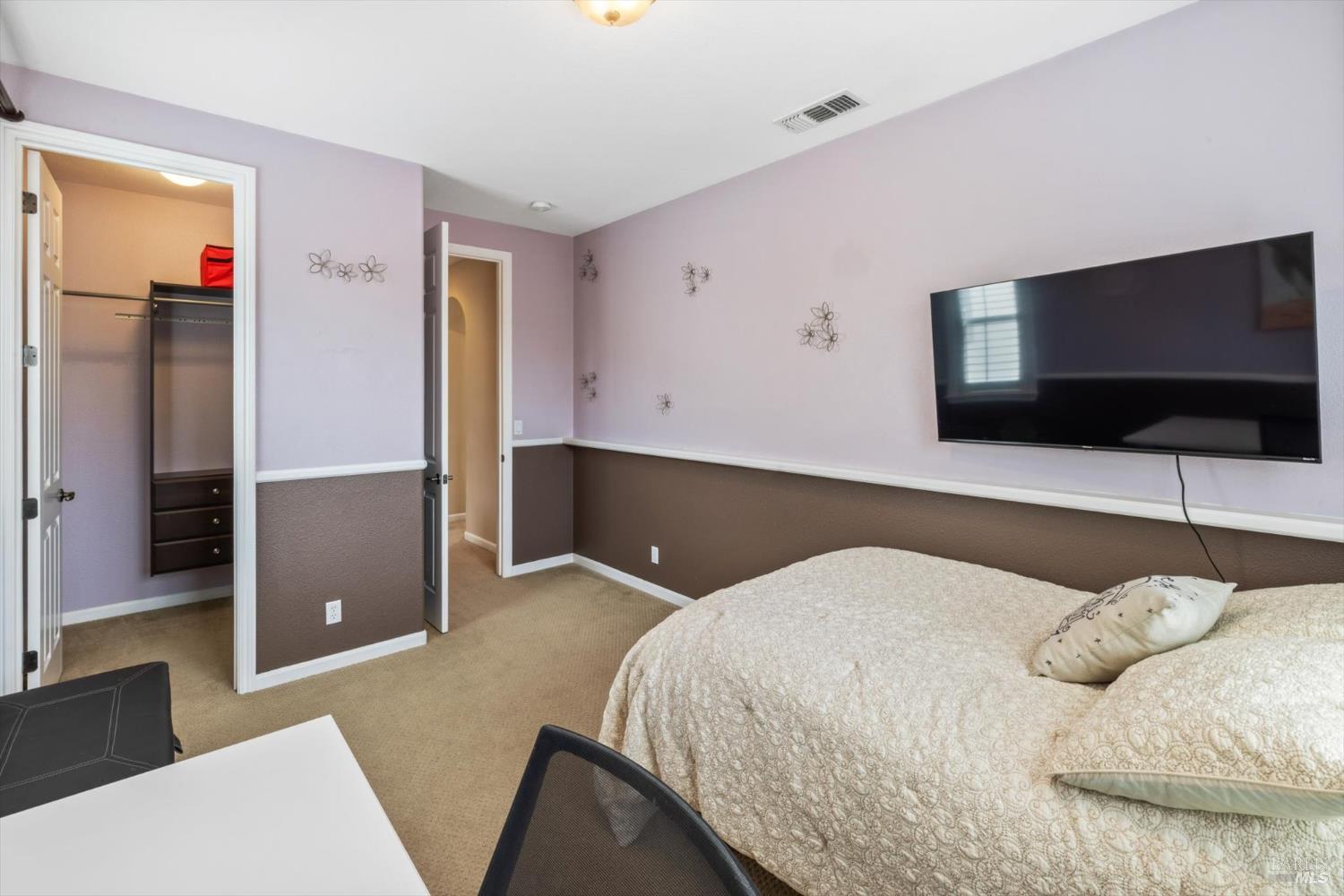 Former model home with style & comfort! Soaring open-beam ceilings, 3 gas fireplaces, and distressed hardwood floors set the tone. Gourmet kitchen with Monogram built-in appliances, beautiful birch cabinets throughout, large island, pantry & breakfast nook with custom built-ins. Downstairs bedroom with French doors to backyard plus den with front patio access. Expansive primary suite with 2 walk-in closets, fireplace & spa-like bath with jetted tub. Custom window coverings throughout. Resort-style backyard with pebble-bottom pool & waterfall, mature trees, pergola with lights, and low-maintenance landscaping. Dual-zone AC, organized closets, and thoughtful details throughout, plus a custom covered dog run on the side of the home complete this one-of-a-kind Vacaville gem!