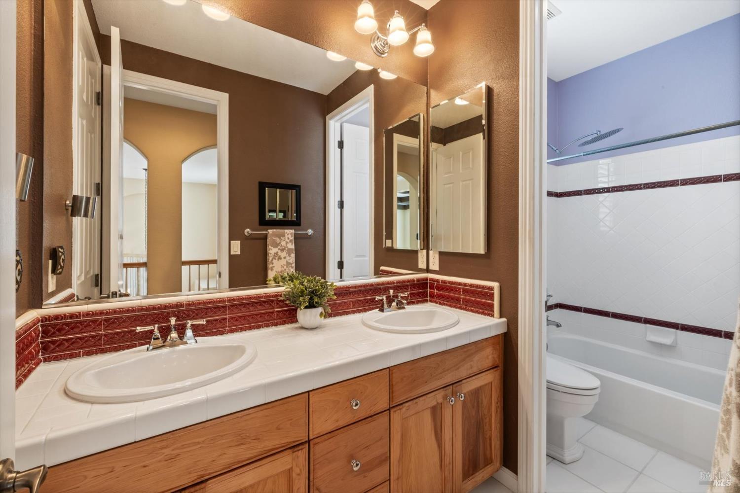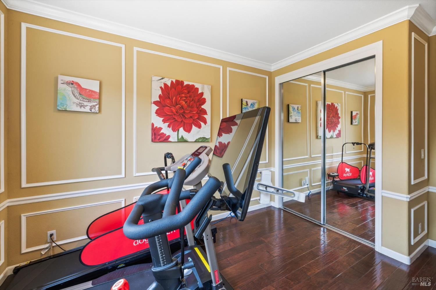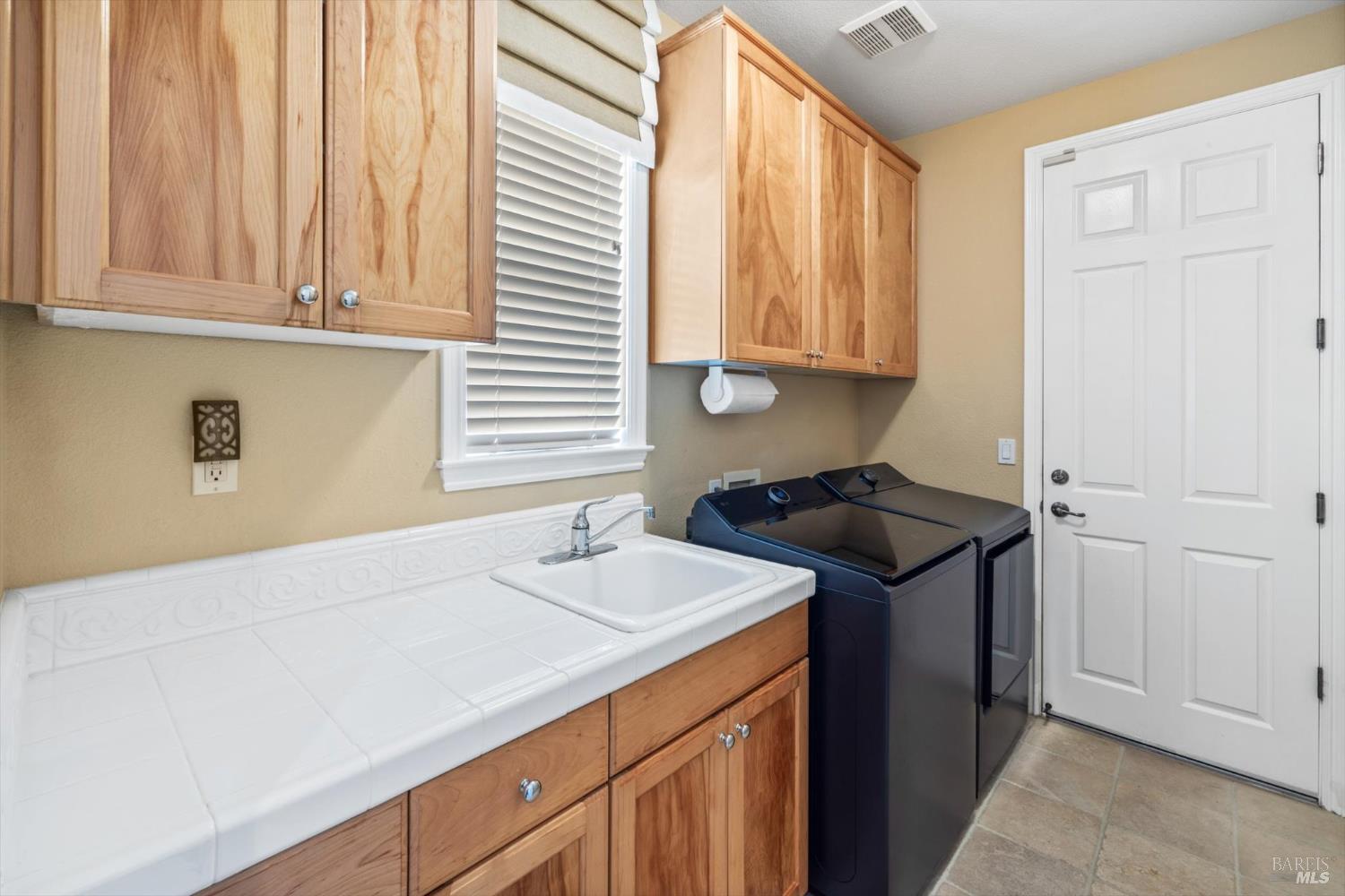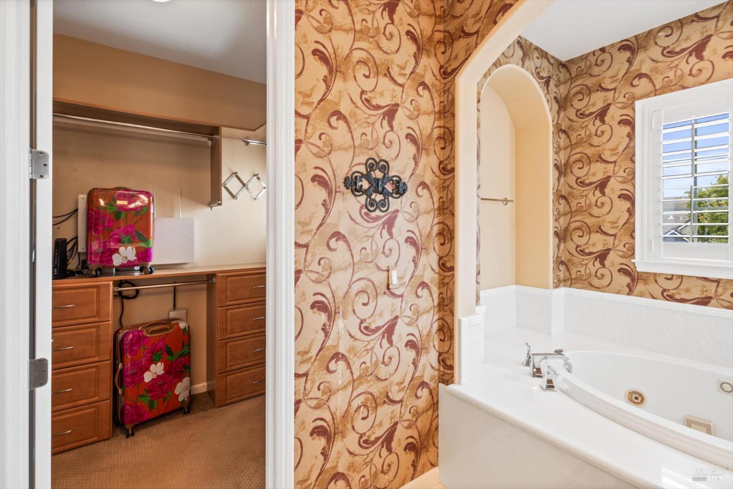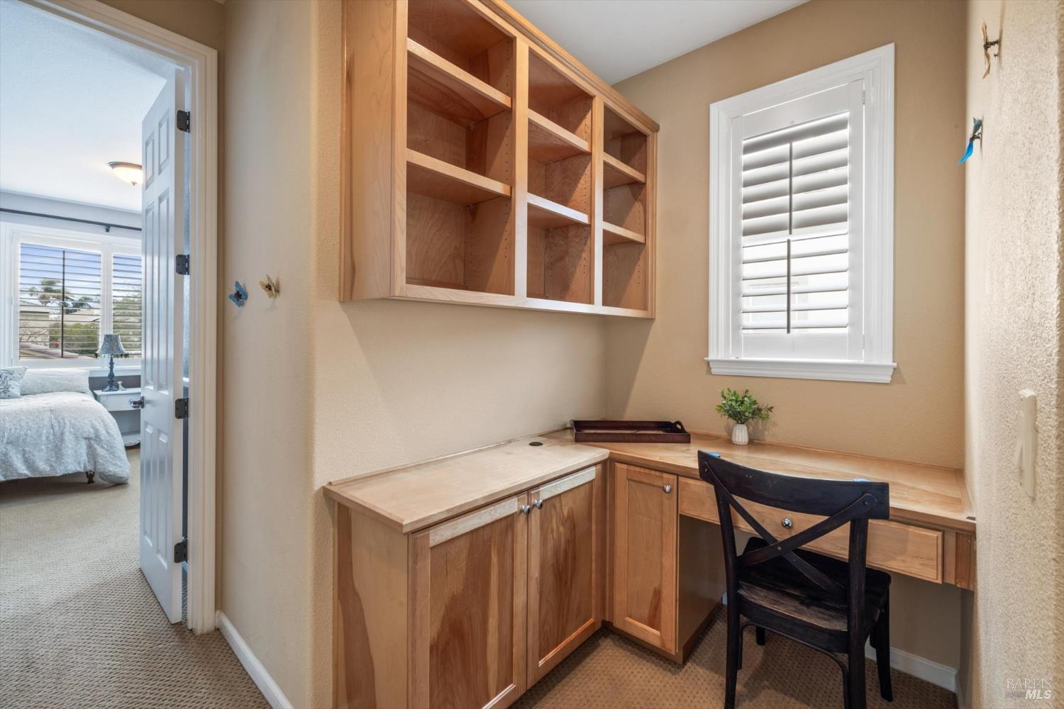 Former model home with style & comfort! Soaring open-beam ceilings, 3 gas fireplaces, and distressed hardwood floors set the tone. Gourmet kitchen with Monogram built-in appliances, beautiful birch cabinets throughout, large island, pantry & breakfast nook with custom built-ins. Downstairs bedroom with French doors to backyard plus den with front patio access. Expansive primary suite with 2 walk-in closets, fireplace & spa-like bath with jetted tub. Custom window coverings throughout. Resort-style backyard with pebble-bottom pool & waterfall, mature trees, pergola with lights, and low-maintenance landscaping. Dual-zone AC, organized closets, and thoughtful details throughout, plus a custom covered dog run on the side of the home complete this one-of-a-kind Vacaville gem!