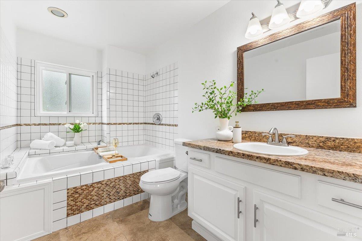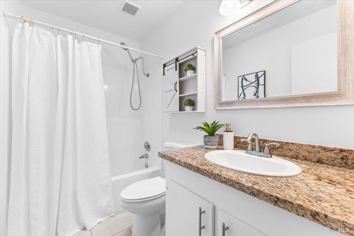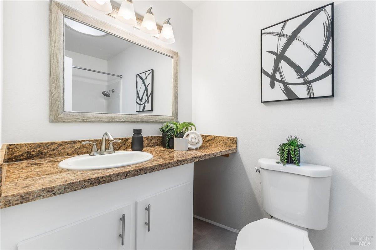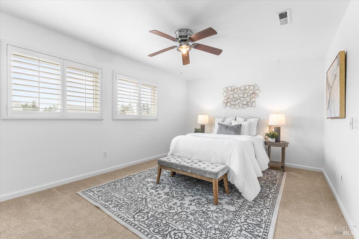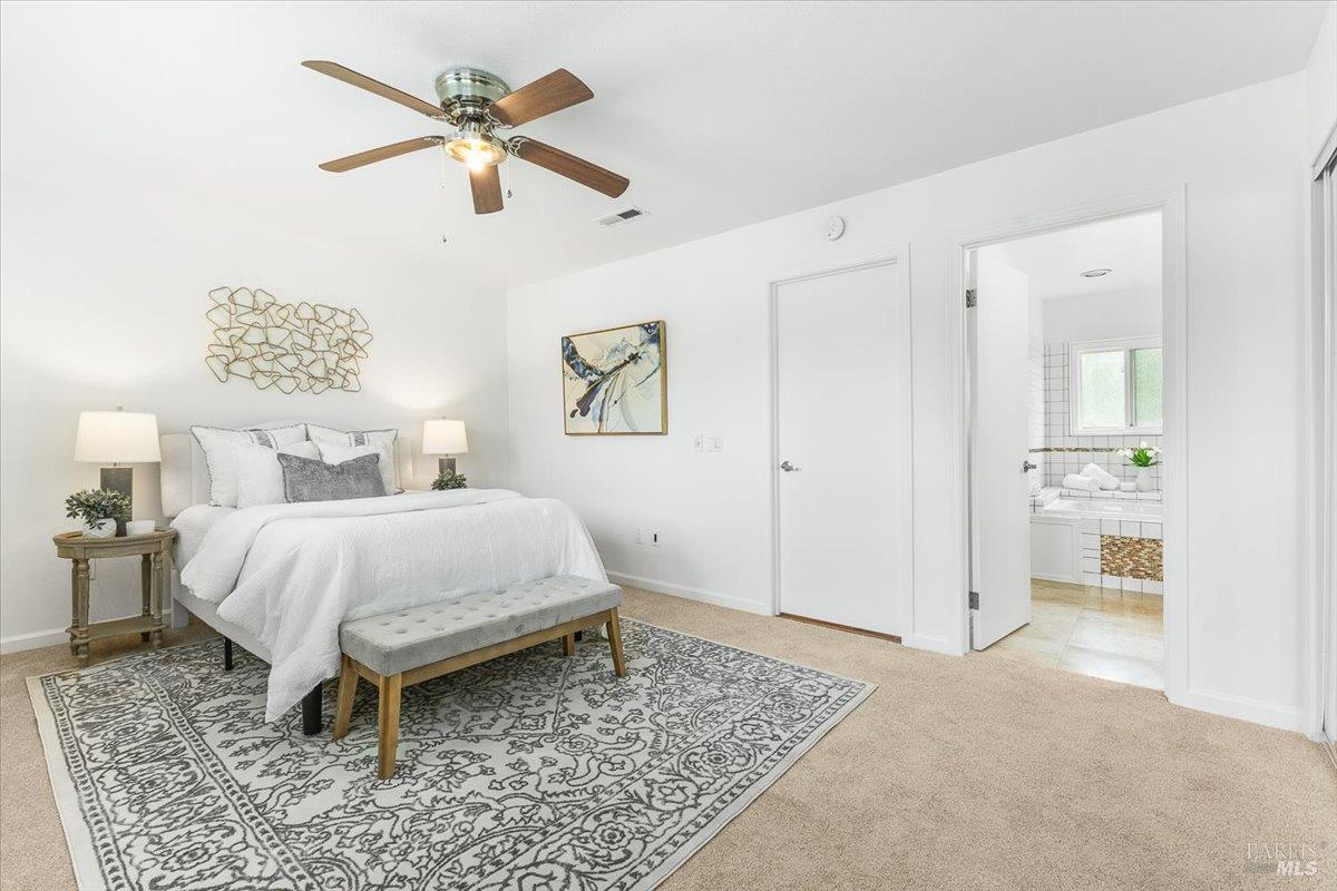 Welcome to Rohnert Park's Desirable J-Section! This spacious home offers 4 bedrooms including two primary suites with ensuite baths (one upstairs and one downstairs)plus two additional guest bedrooms and a full bath on the main level. The upstairs also features a versatile space, perfect for a nursery, home office, or cozy retreat. Step inside to a formal living room with vaulted ceilings, a formal dining room, and a bright kitchen with solid stone counters, stainless appliances, an informal bar seating area, and a charming greenhouse window. The adjacent family room includes a wood-burning fireplace and slider leading to a large backyard w/ patio and vegetable beds. Additional highlights include: Dual-pane windows and vinyl shutters No popcorn ceilings Fresh interior paint throughout, Engineered wood-like flooring, tile, and brand-new carpet Solar tubes for added natural light. Fully updated sprinkler system, with a front and back yard waiting for your vision! All this in a prime location close to shopping, parks, schools (including SSU), and the Rohnert Park Community Center. Does this home have your name on it? Don't miss out!