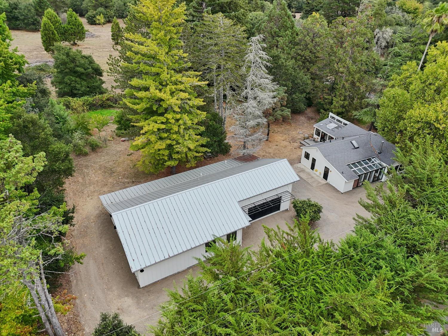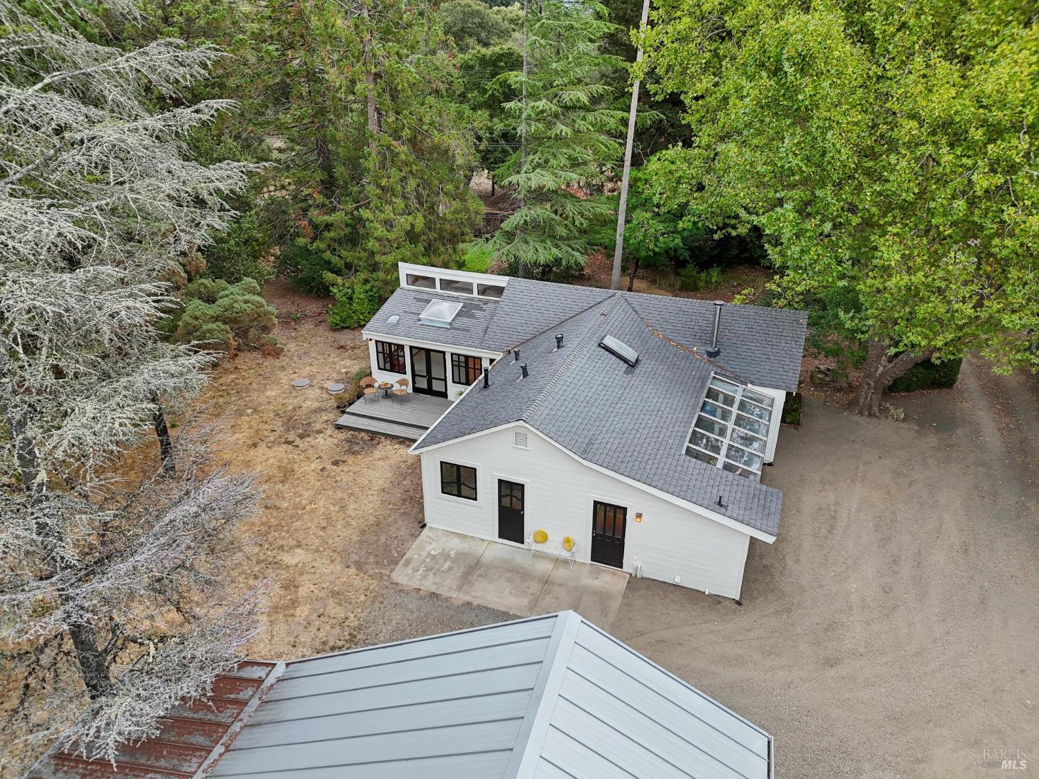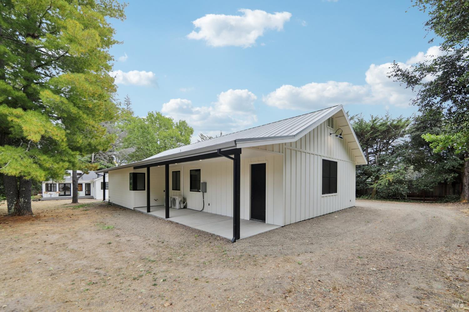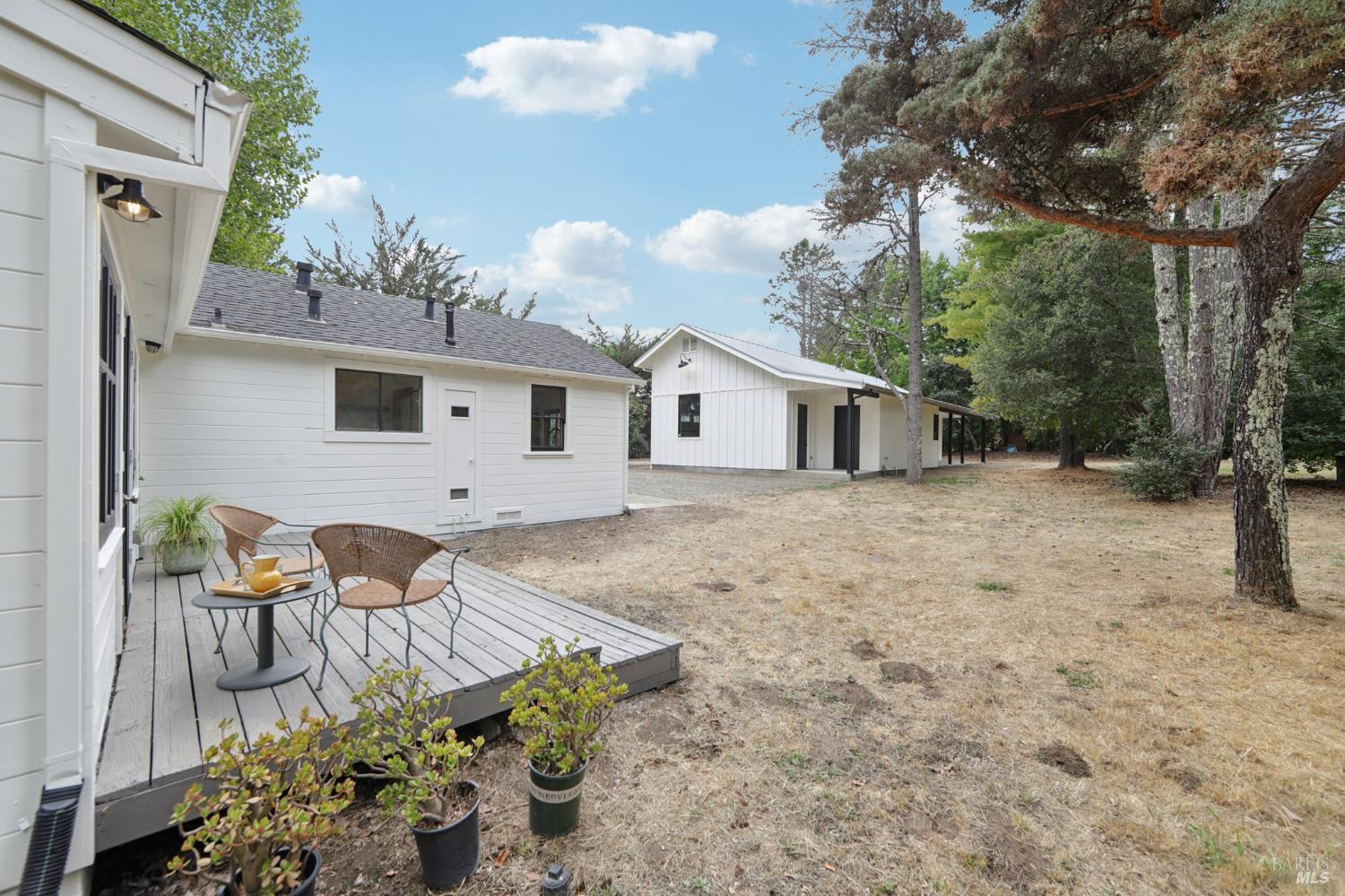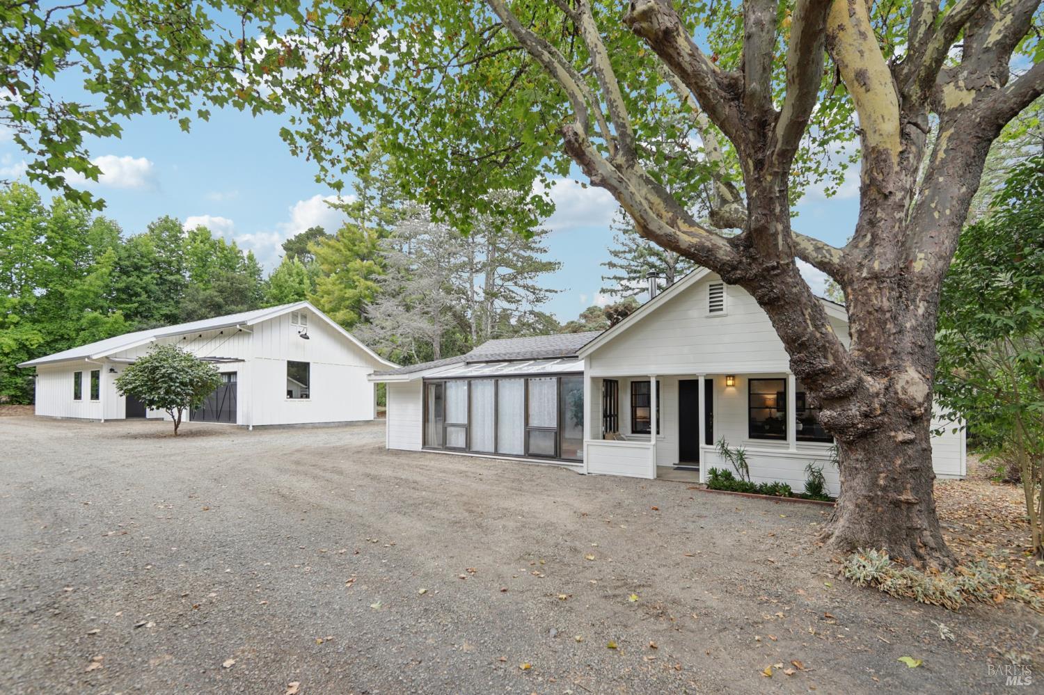 Contractor-owned and thoughtfully improved, this Sebastopol gem sits on just over an acre along sought-after Harrison Grade. A charming two-bedroom, one-bath cottage welcomes you with vaulted wood ceilings, sun-drenched windows, new luxury vinyl plank floors, new carpet and fresh interior paint. The bedrooms are separated for privacy, sharing a hall bath, while the primary opens to a deck; ideal for serene reflection with the lush, tree-studded setting. The bright kitchen features freshly painted cabinets with new pulls, and a dedicated laundry room adds convenience. Beyond the home, a modern farmhouse-style shop, built in 2020, offers fire-safe fiber cement siding, a standing seam metal roof, and a spacious attic with 512 sq. ft. of supplemental storage. With utilities located above and a pre-plumbed drain ready for a shower, the shop is primed for conversion into a second dwelling with architectural sketches included. A septic report notes room for potential expansion, making a family compound or guest unit a real possibility (buyer to verify with PRMD). Enjoy the special micro-climate of Harrison Grade while being minutes to downtown Sebastopol, Occidental, and Graton. A sweet opportunity to live the bohemian West County lifestyle with space, privacy, and future potential.
