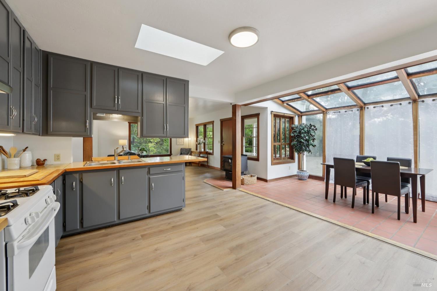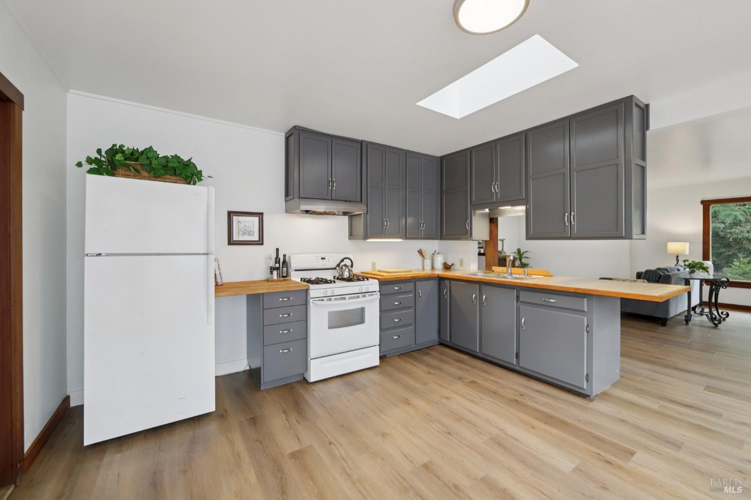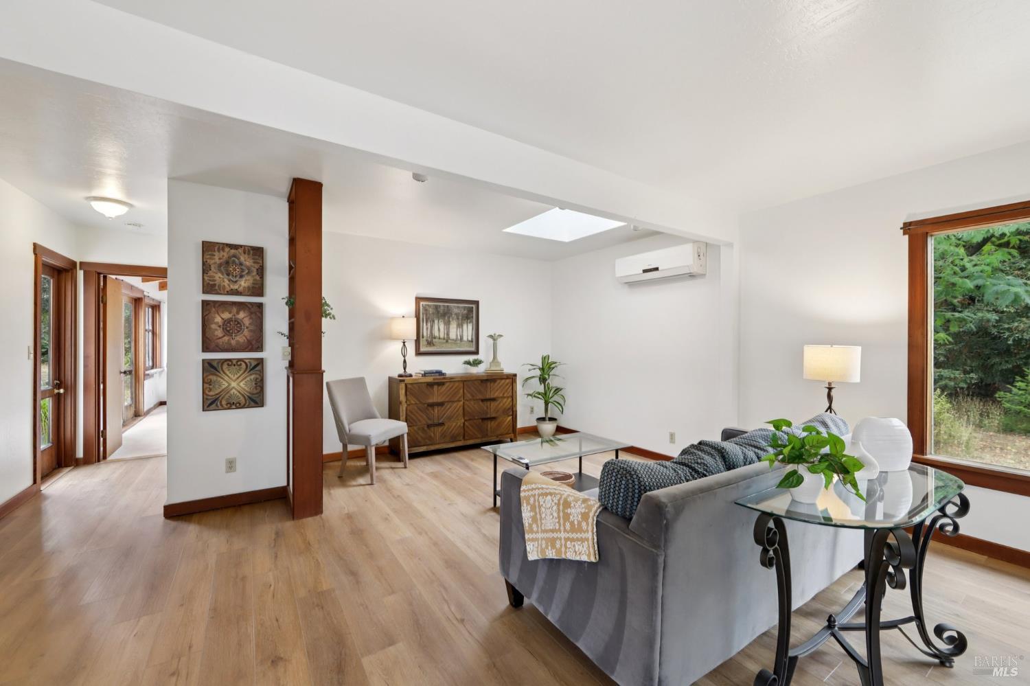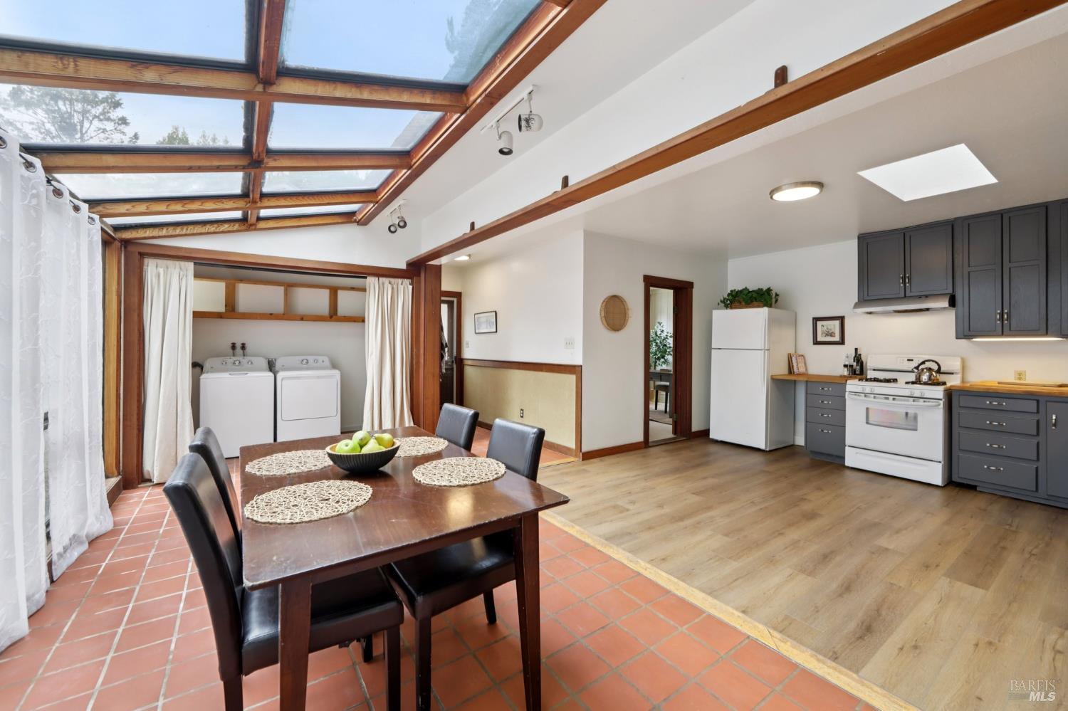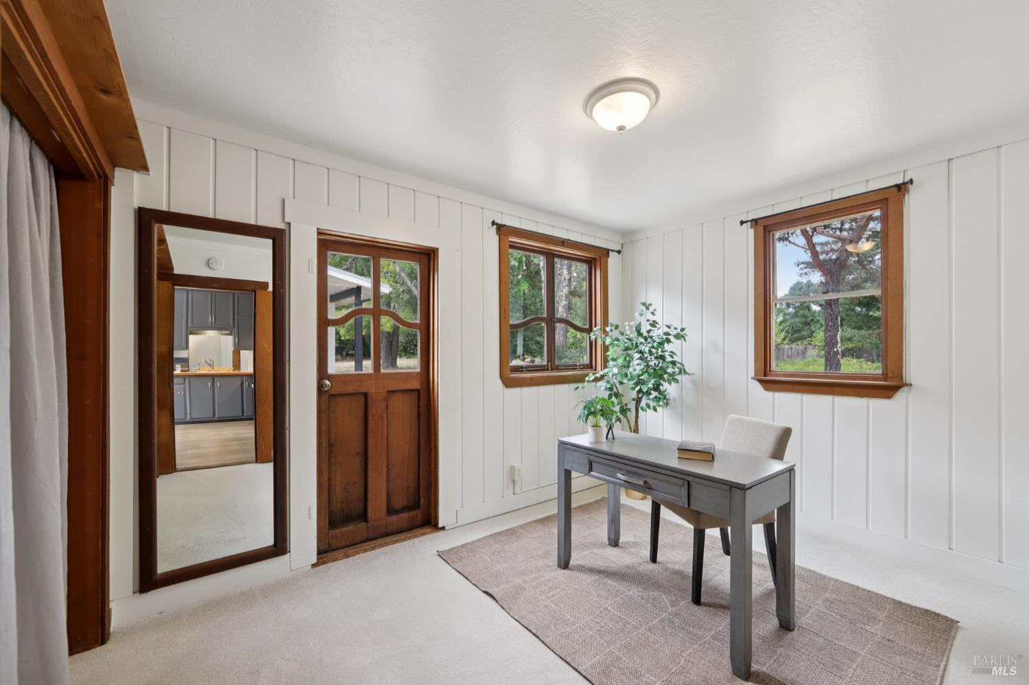Contractor-owned and thoughtfully improved, this Sebastopol gem sits on just over an acre along sought-after Harrison Grade. A charming two-bedroom, one-bath cottage welcomes you with vaulted wood ceilings, sun-drenched windows, new luxury vinyl plank floors, new carpet and fresh interior paint. The bedrooms are separated for privacy, sharing a hall bath, while the primary opens to a deck; ideal for serene reflection with the lush, tree-studded setting. The bright kitchen features freshly painted cabinets with new pulls, and a dedicated laundry room adds convenience. Beyond the home, a modern farmhouse-style shop, built in 2020, offers fire-safe fiber cement siding, a standing seam metal roof, and a spacious attic with 512 sq. ft. of supplemental storage. With utilities located above and a pre-plumbed drain ready for a shower, the shop is primed for conversion into a second dwelling with architectural sketches included. A septic report notes room for potential expansion, making a family compound or guest unit a real possibility (buyer to verify with PRMD). Enjoy the special micro-climate of Harrison Grade while being minutes to downtown Sebastopol, Occidental, and Graton. A sweet opportunity to live the bohemian West County lifestyle with space, privacy, and future potential.