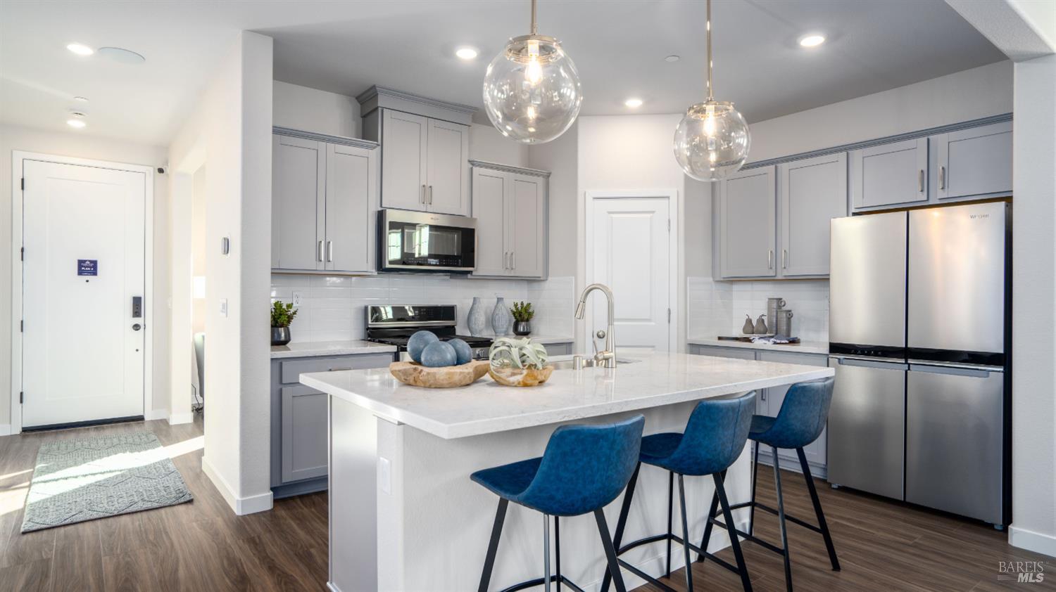 MODEL HOME SALE - Welcome to Meridian, A new home community brought to you by Century Communities. Meridian is a Commuter friendly community. The community is a 4-minute drive to Hwy 12, 15-minute Walk to Amtrak Depot and a 30-minute Drive to Downtown Napa. This South Facing Two Story home - Plan 3 - offers 2,089 square feet of living space with 3 Bedrooms, 2.5 Bathrooms, Den, Loft and 2 Car Garage. Home has a fenced Landscaped side yard and a rear facing Garage. The Master Bathroom has a Freestanding soaking tub. The Kitchen offers Quartz counter tops with a 3x12 tile backsplash, Whirlpool Appliances includes Refrigerator, Washer and Dryer. The Cabinets have a Stone finish, concealed hinges, convenience pkgs and satin nickel hardware. Luxury Vinyl Plank (LVP) Flooring on the first floor, Bathrooms and Laundry room. Shaw Carpet in Bedrooms, Loft, Stairs and Hallway upstairs. Additional features include - Laundry room cabinets, 3 1/4 Baseboards, Window coverings, Patio at side yard, Solar, Energy Efficient Tankless Water Heater, Light enhancement Pkg and Century Connect Home Automation System. Homeowners will enjoy Suisun City's scenic waterfront area, Lake Solano Park, Grizzly Island Wildlife Area Furniture and dcor items are not included in the price of the home.