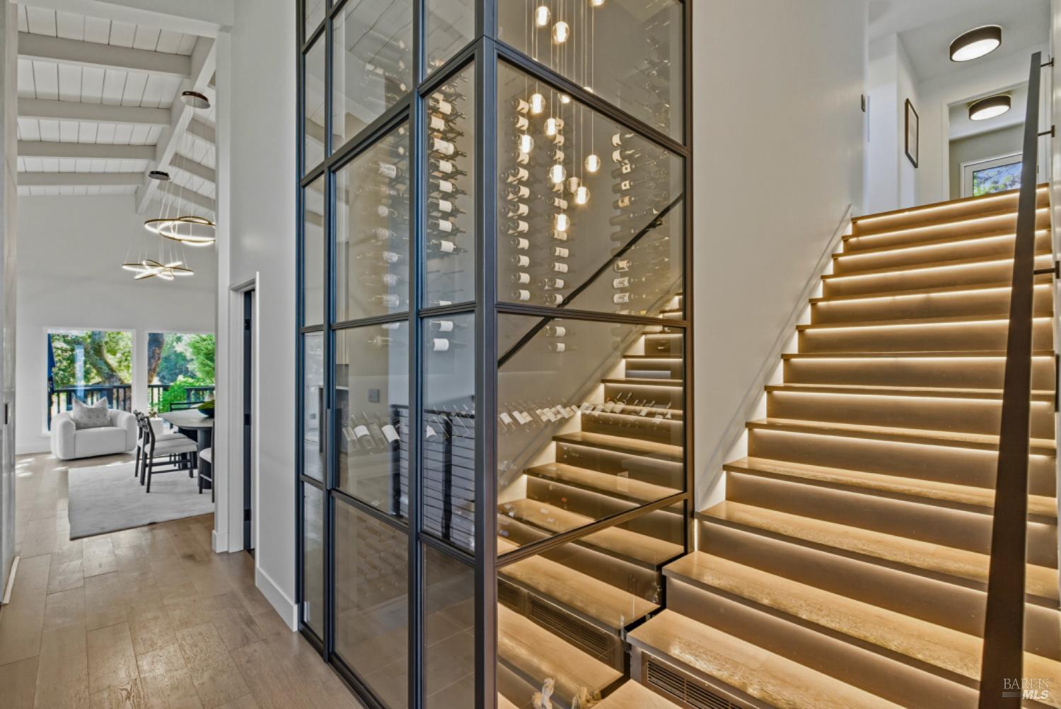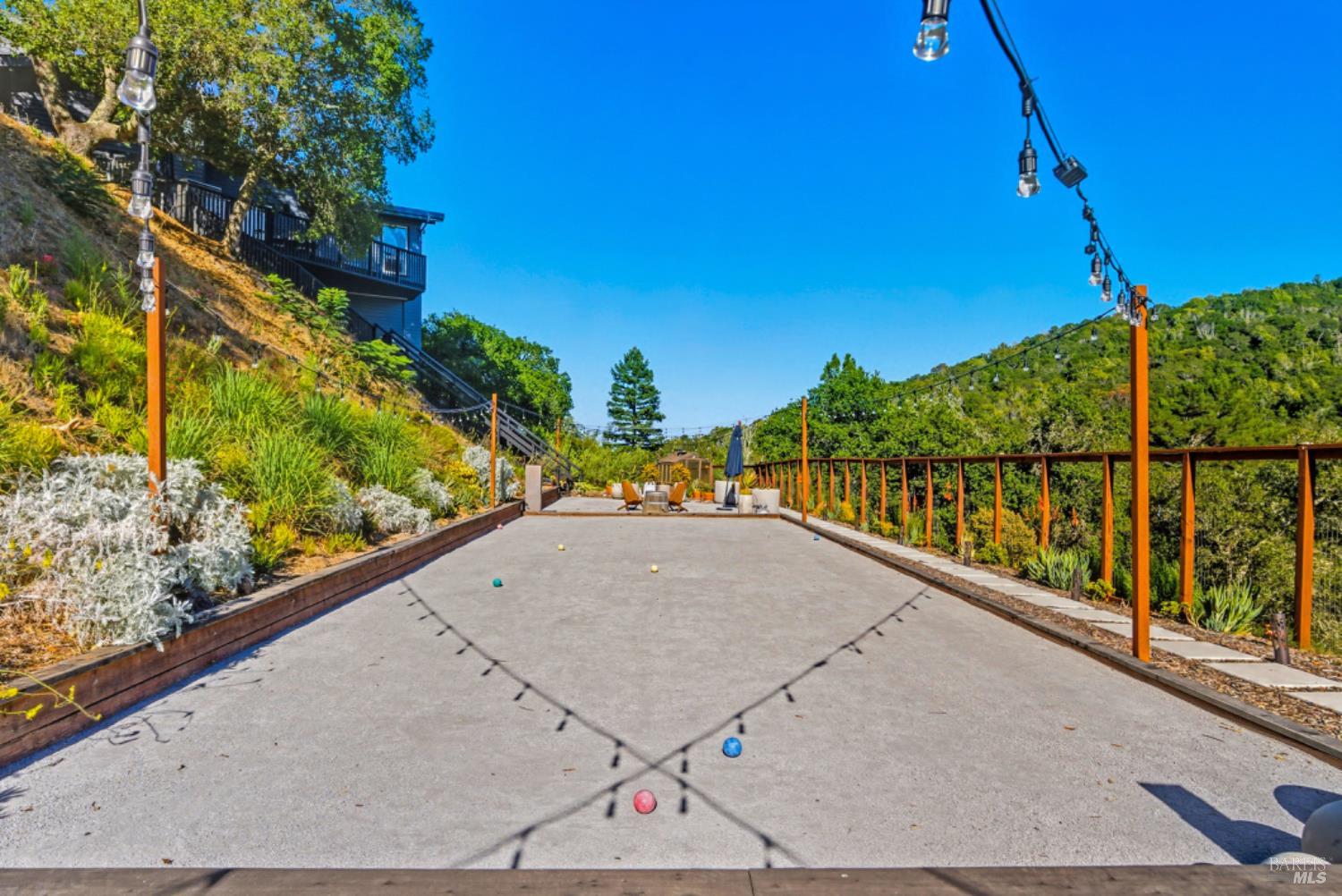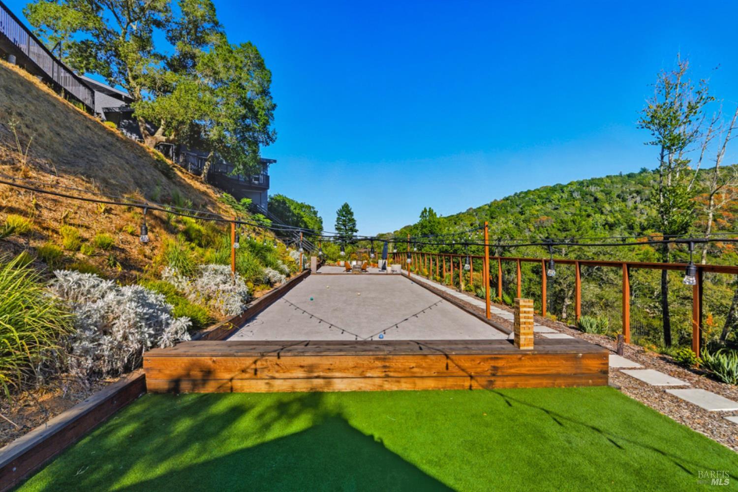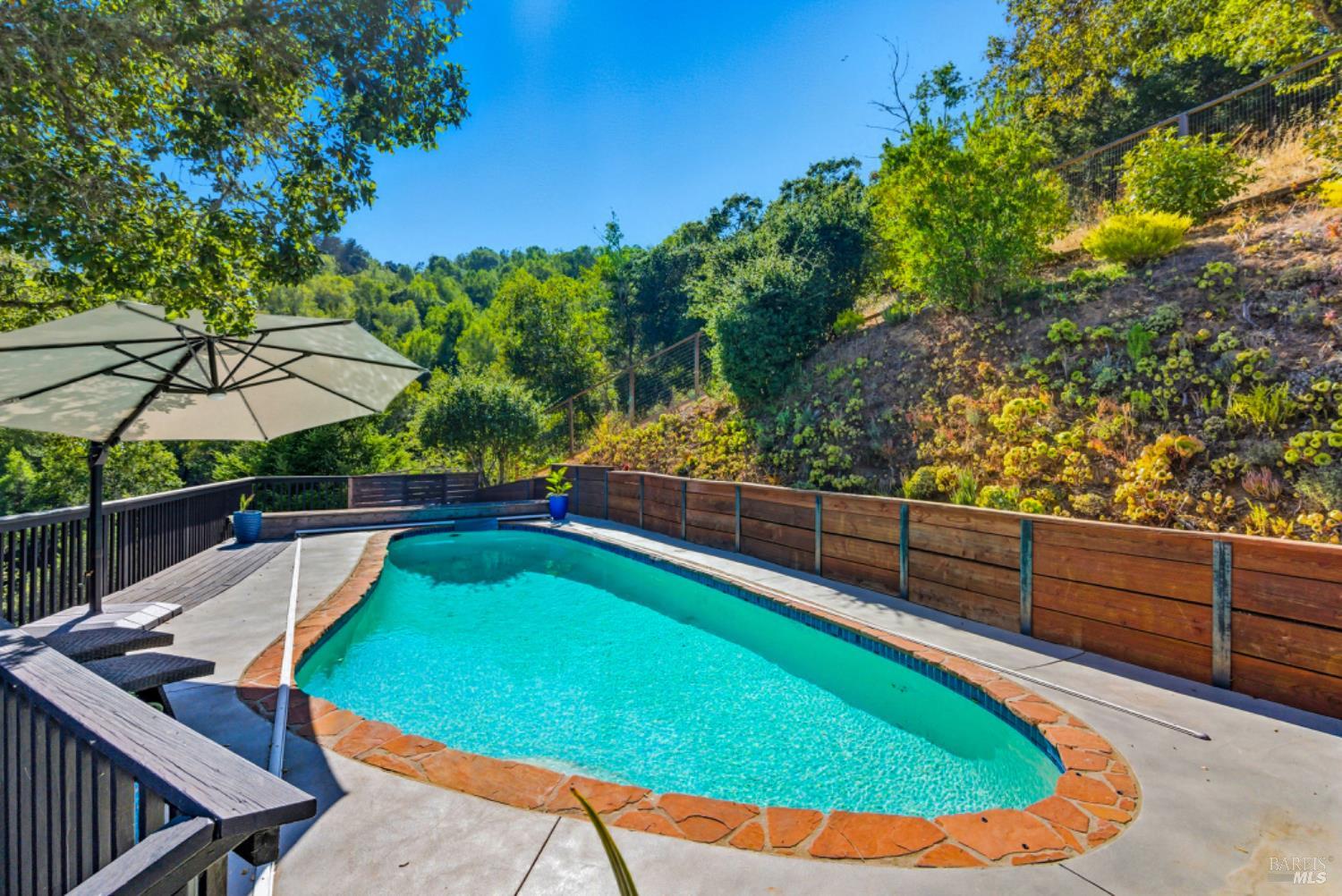 Set on a private acre at the end of a cul-de-sac, this extensively remodeled four-bedroom home blends modern design, resort-style amenities, and sweeping greenbelt views. Completed between 2020 and 2022, the renovation highlights wide-plank oak floors, a dramatic two-story smoked-glass wine room, a sleek wet bar, and a Venetian plaster fireplace. The chef's kitchen offers dual counters, custom cabinetry, a walk-in pantry, and an indoor grill, with effortless flow to the outdoor dining area, built-in BBQ, and view deck. The primary suite opens directly to a private outdoor shower and heated pool, while all bedrooms are conveniently located on one level. A ground-level office provides excellent work-from-home flexibility. The finished two-car garage features epoxy floors, full-height cabinets, a workbench, and integrated tool system. Professionally designed gardens are fire-wise, drought-tolerant, and low-maintenance, complemented by a mini orchard. The expansive lower yard is built for gatherings, complete with bocce court, powered greenhouse, raised vegetable beds. Located within the Wild Horse Valley Home Owners Association who's amenities include tennis courts, a community pool and clubhouse.