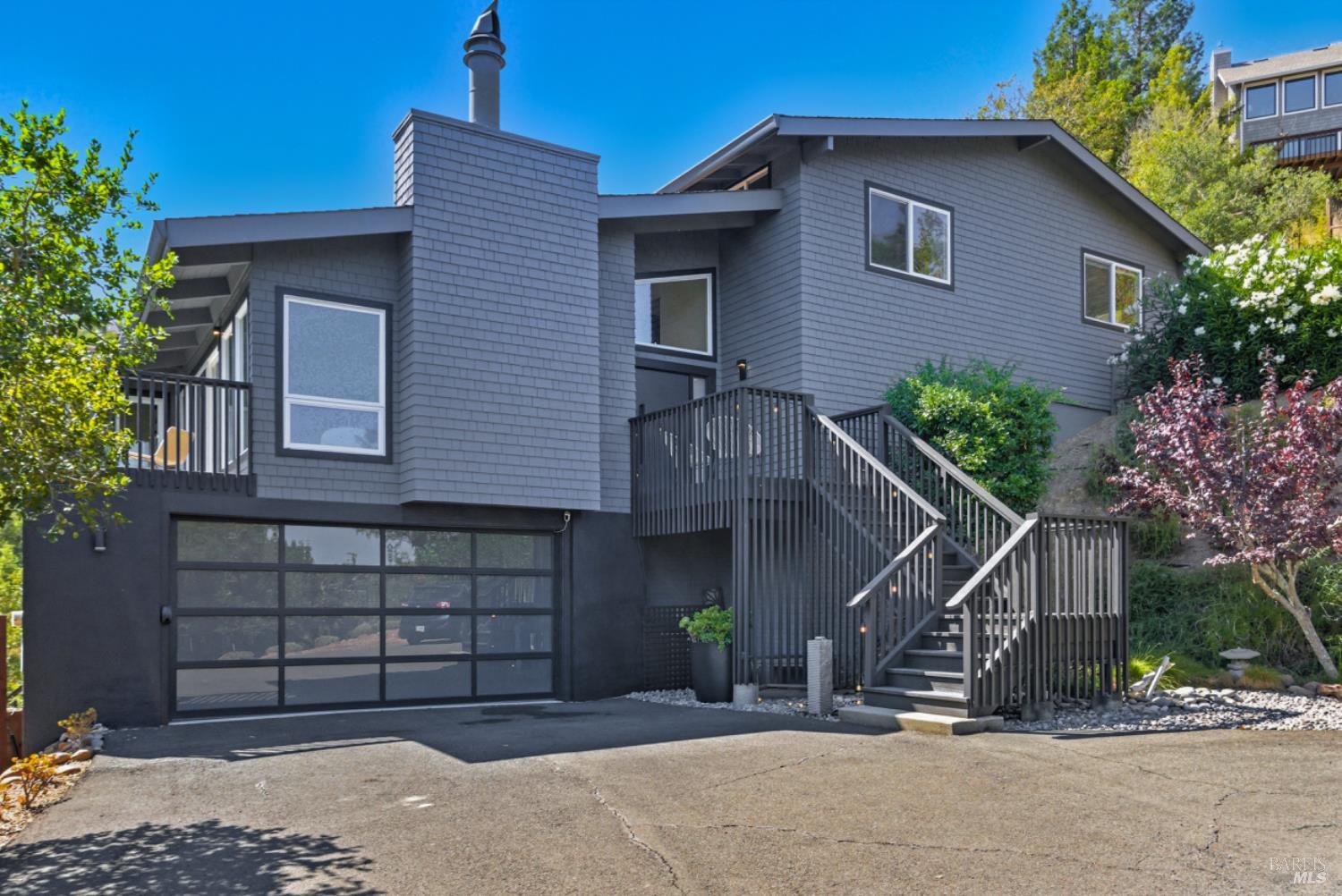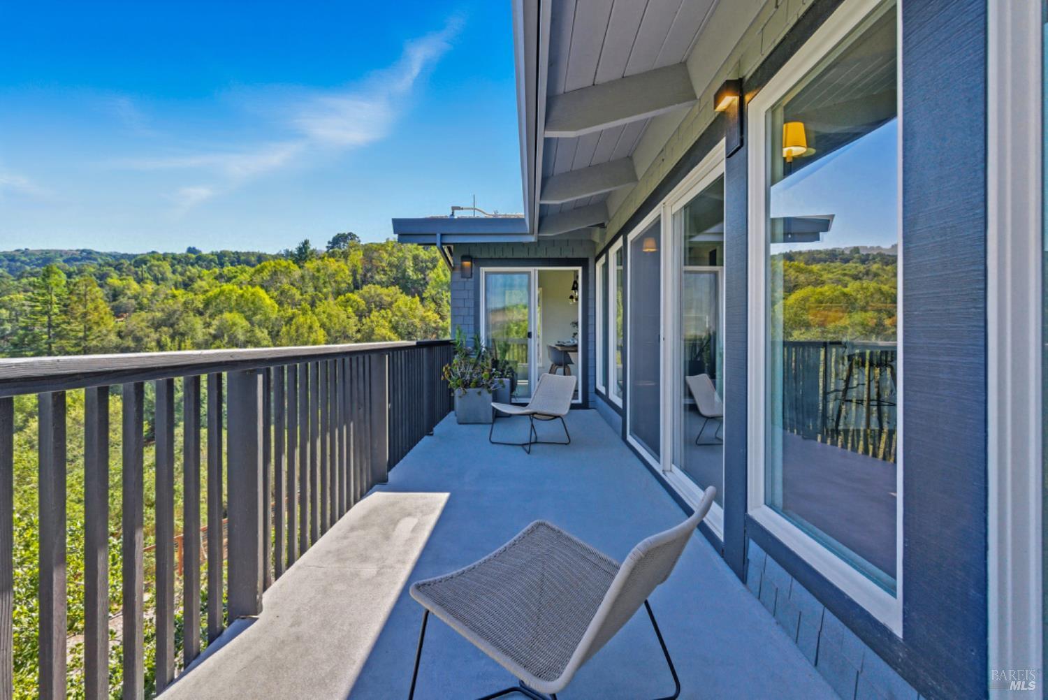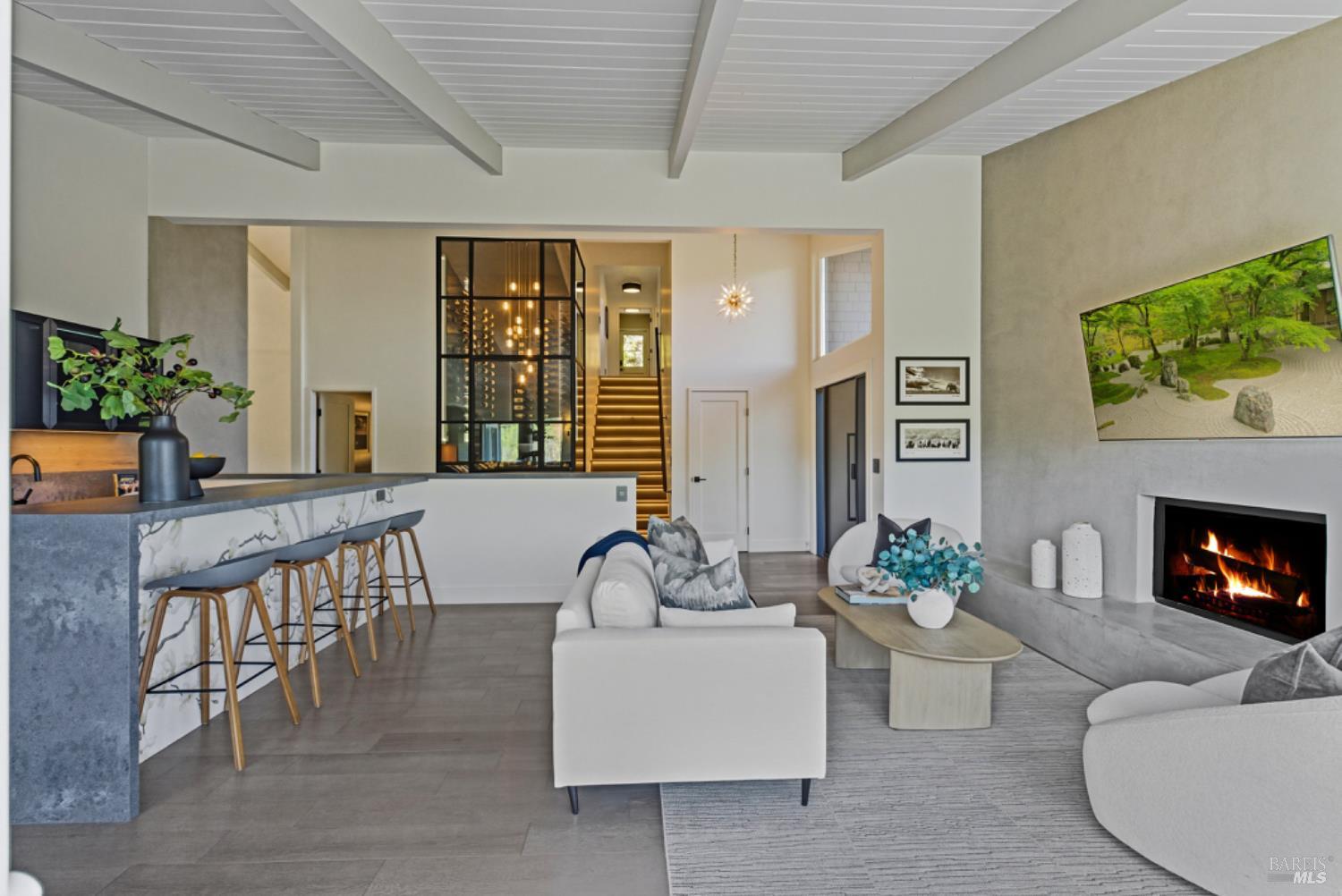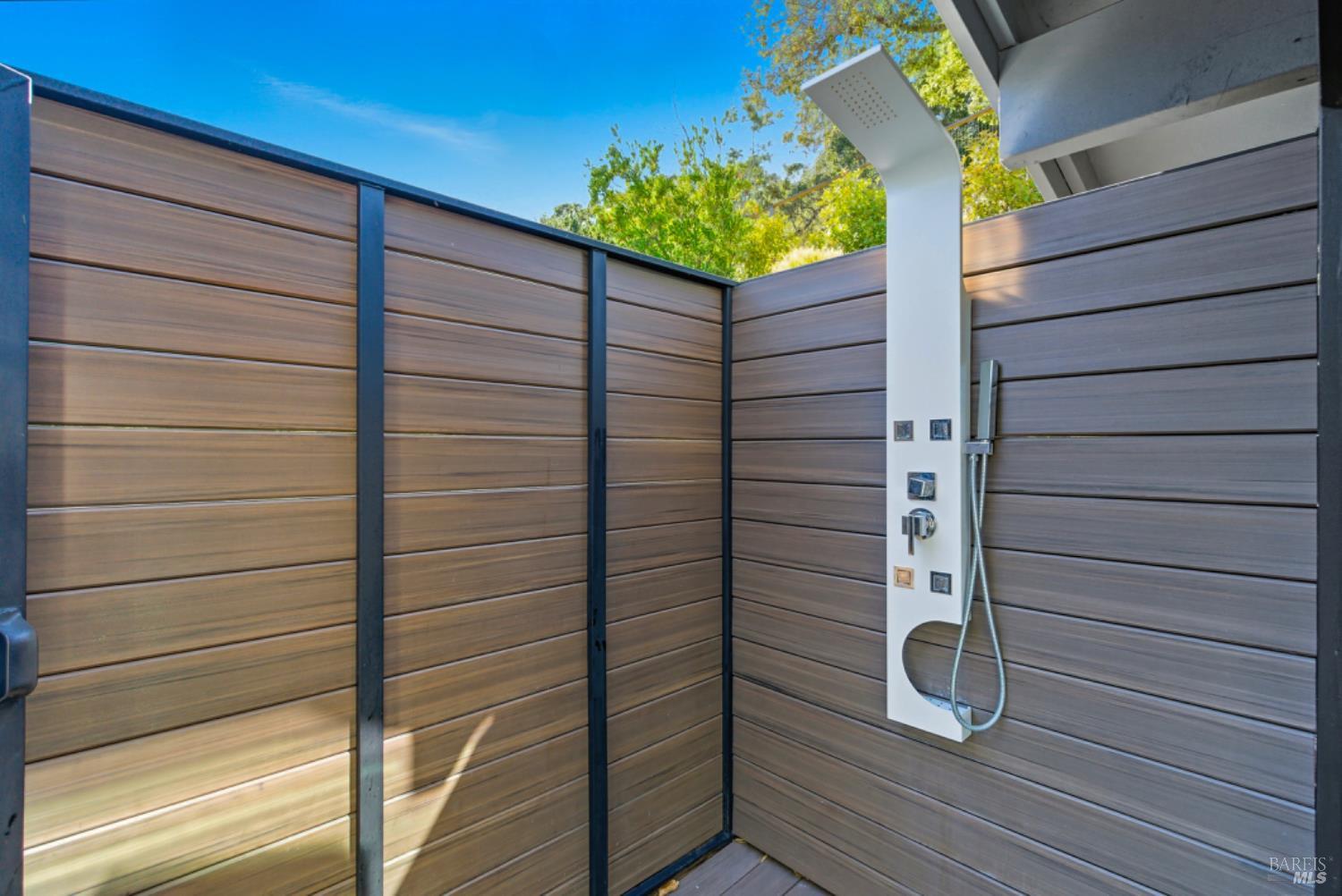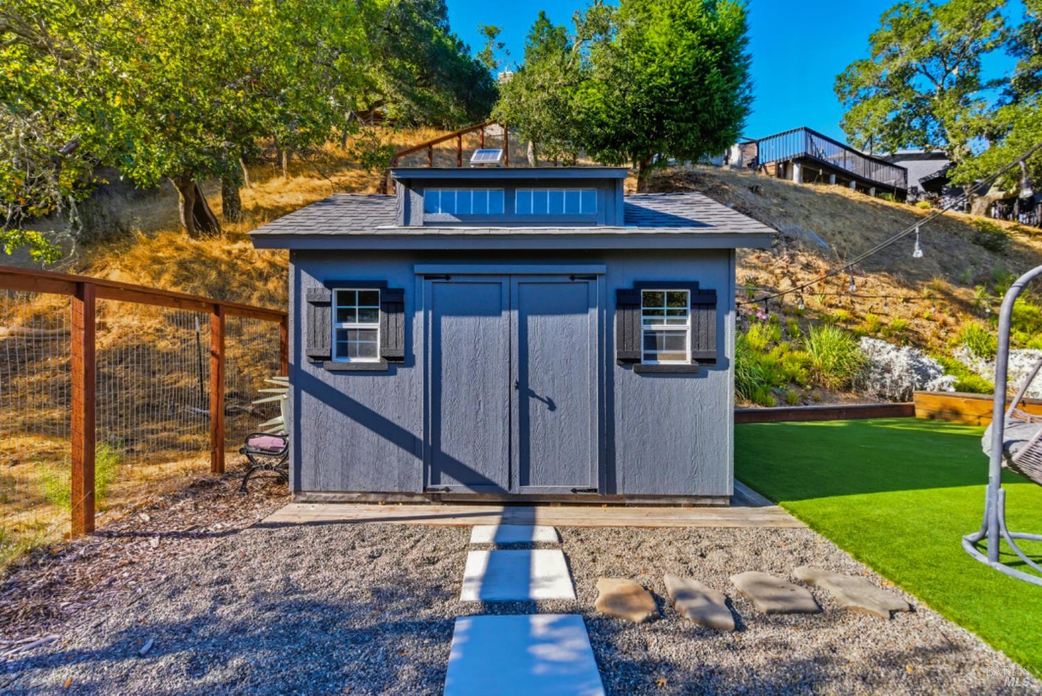 Set on a private acre at the end of a cul-de-sac, this extensively remodeled four-bedroom home blends modern design, resort-style amenities, and sweeping greenbelt views. Completed between 2020 and 2022, the renovation highlights wide-plank oak floors, a dramatic two-story smoked-glass wine room, a sleek wet bar, and a Venetian plaster fireplace. The chef's kitchen offers dual counters, custom cabinetry, a walk-in pantry, and an indoor grill, with effortless flow to the outdoor dining area, built-in BBQ, and view deck. The primary suite opens directly to a private outdoor shower and heated pool, while all bedrooms are conveniently located on one level. A ground-level office provides excellent work-from-home flexibility. The finished two-car garage features epoxy floors, full-height cabinets, a workbench, and integrated tool system. Professionally designed gardens are fire-wise, drought-tolerant, and low-maintenance, complemented by a mini orchard. The expansive lower yard is built for gatherings, complete with bocce court, powered greenhouse, raised vegetable beds. Located within the Wild Horse Valley Home Owners Association who's amenities include tennis courts, a community pool and clubhouse.