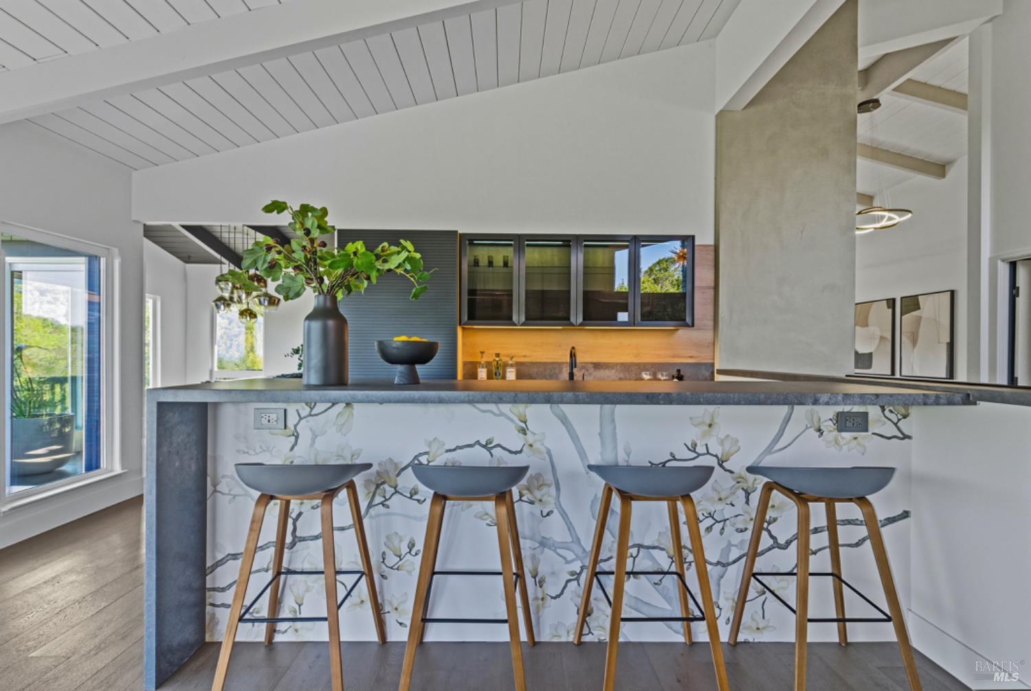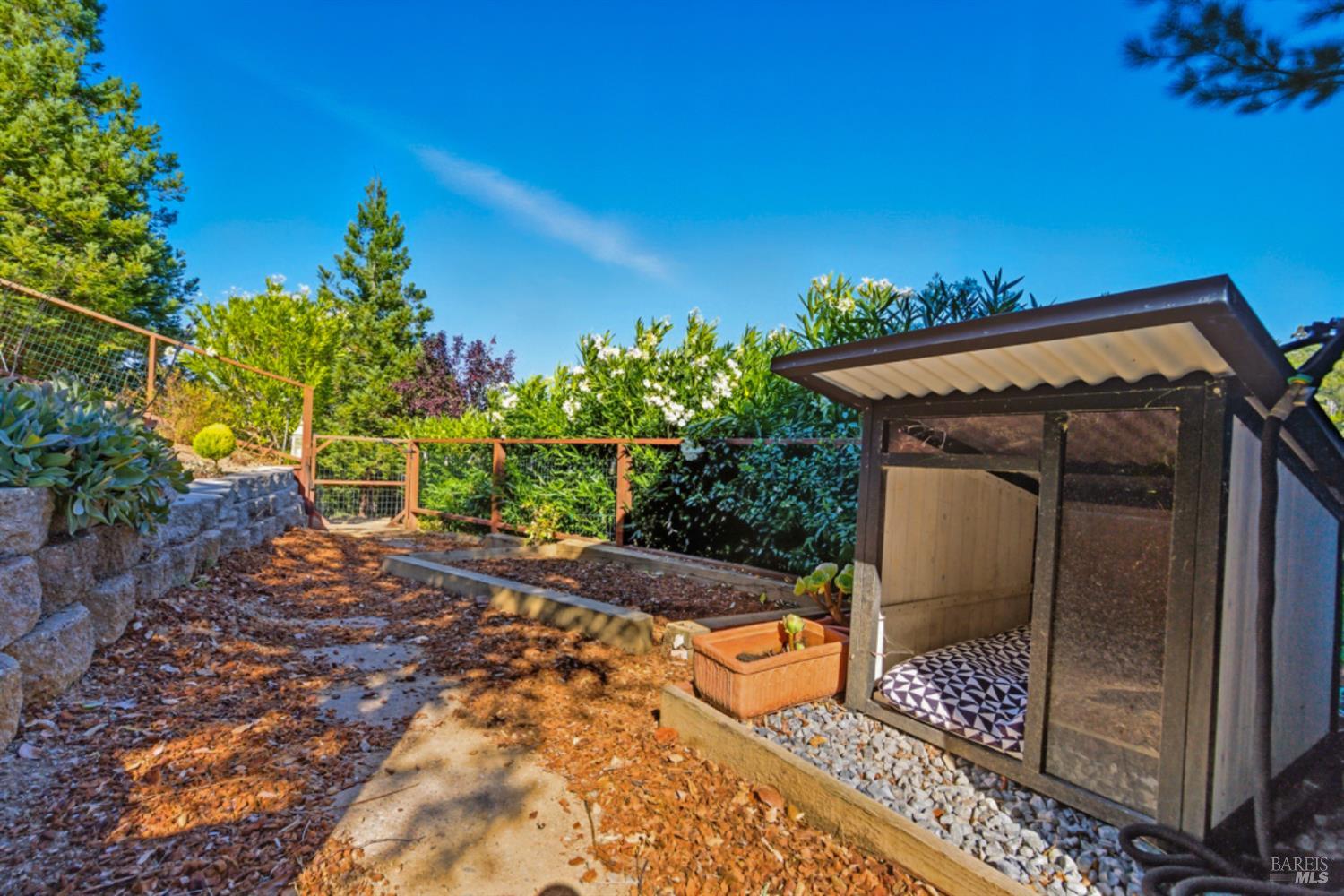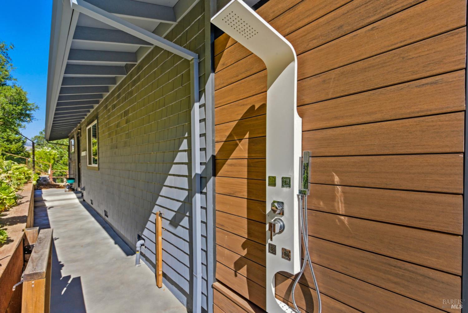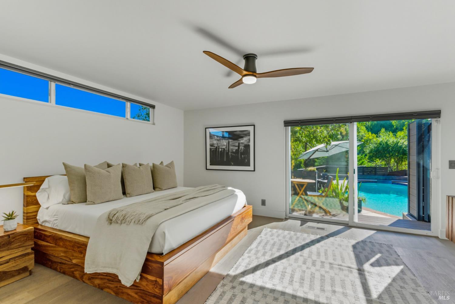 Set on a private acre at the end of a cul-de-sac, this extensively remodeled four-bedroom home blends modern design, resort-style amenities, and sweeping greenbelt views. Completed between 2020 and 2022, the renovation highlights wide-plank oak floors, a dramatic two-story smoked-glass wine room, a sleek wet bar, and a Venetian plaster fireplace. The chef's kitchen offers dual counters, custom cabinetry, a walk-in pantry, and an indoor grill, with effortless flow to the outdoor dining area, built-in BBQ, and view deck. The primary suite opens directly to a private outdoor shower and heated pool, while all bedrooms are conveniently located on one level. A ground-level office provides excellent work-from-home flexibility. The finished two-car garage features epoxy floors, full-height cabinets, a workbench, and integrated tool system. Professionally designed gardens are fire-wise, drought-tolerant, and low-maintenance, complemented by a mini orchard. The expansive lower yard is built for gatherings, complete with bocce court, powered greenhouse, raised vegetable beds. Located within the Wild Horse Valley Home Owners Association who's amenities include tennis courts, a community pool and clubhouse.