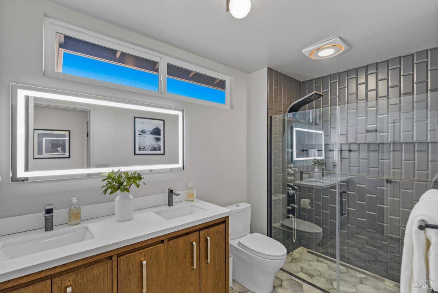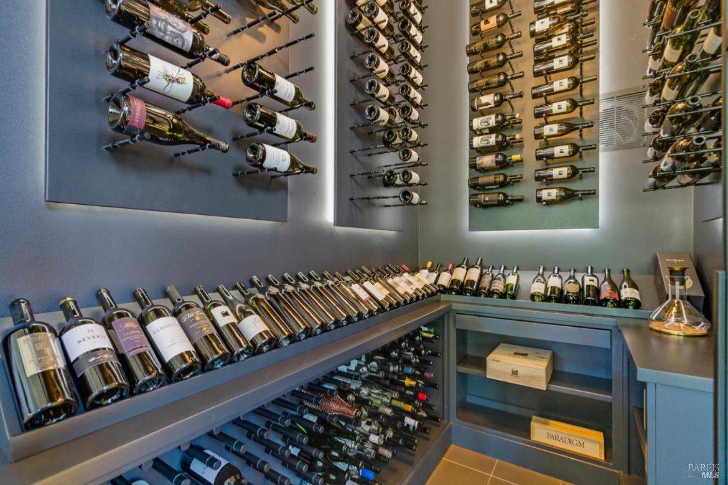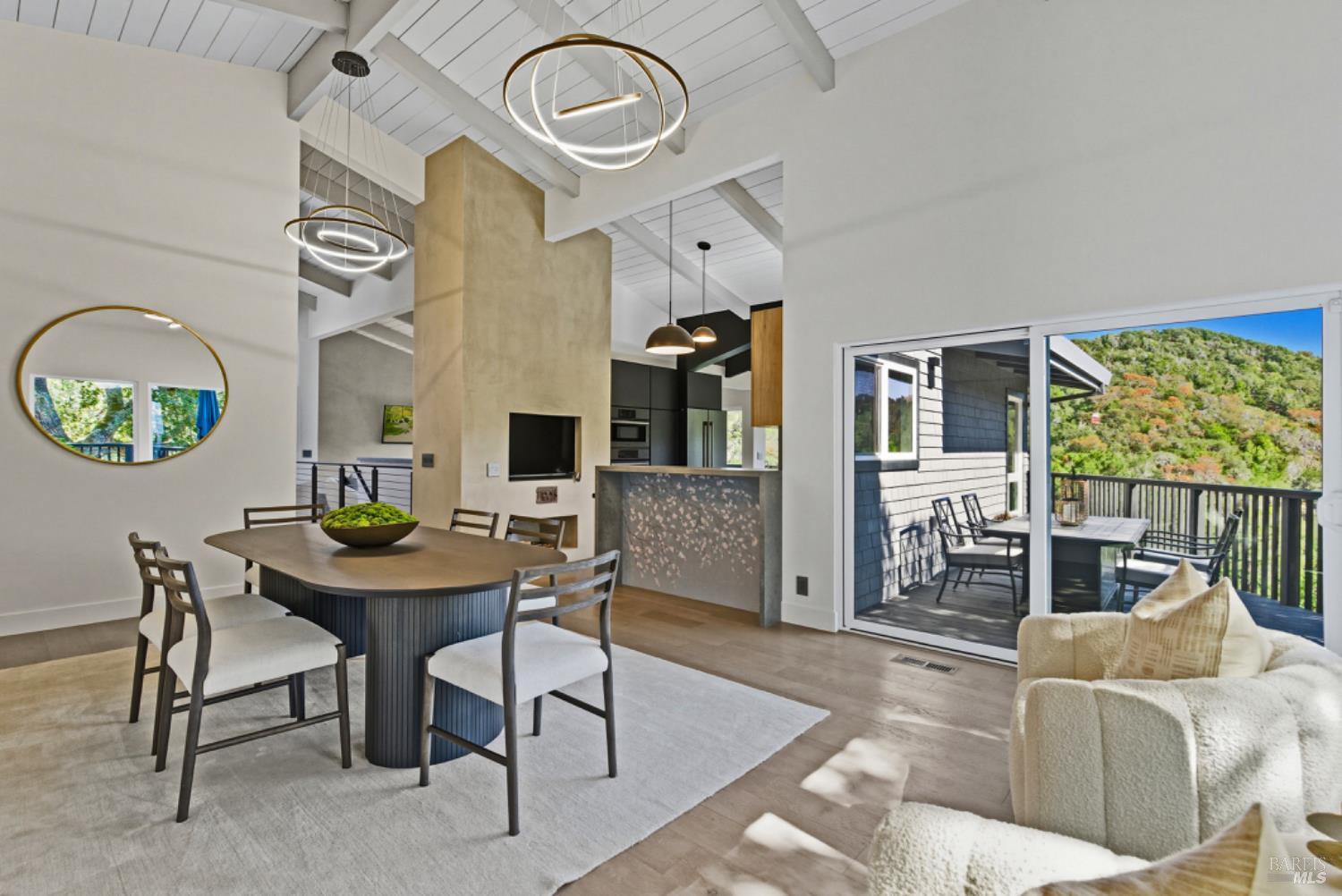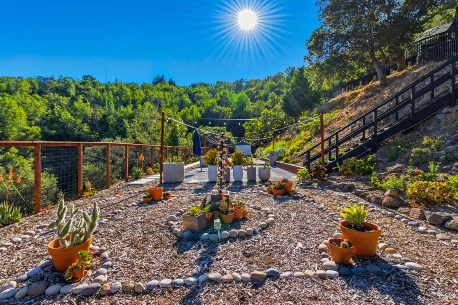Set on a private acre at the end of a cul-de-sac, this extensively remodeled four-bedroom home blends modern design, resort-style amenities, and sweeping greenbelt views. Completed between 2020 and 2022, the renovation highlights wide-plank oak floors, a dramatic two-story smoked-glass wine room, a sleek wet bar, and a Venetian plaster fireplace. The chef's kitchen offers dual counters, custom cabinetry, a walk-in pantry, and an indoor grill, with effortless flow to the outdoor dining area, built-in BBQ, and view deck. The primary suite opens directly to a private outdoor shower and heated pool, while all bedrooms are conveniently located on one level. A ground-level office provides excellent work-from-home flexibility. The finished two-car garage features epoxy floors, full-height cabinets, a workbench, and integrated tool system. Professionally designed gardens are fire-wise, drought-tolerant, and low-maintenance, complemented by a mini orchard. The expansive lower yard is built for gatherings, complete with bocce court, powered greenhouse, raised vegetable beds. Located within the Wild Horse Valley Home Owners Association who's amenities include tennis courts, a community pool and clubhouse.