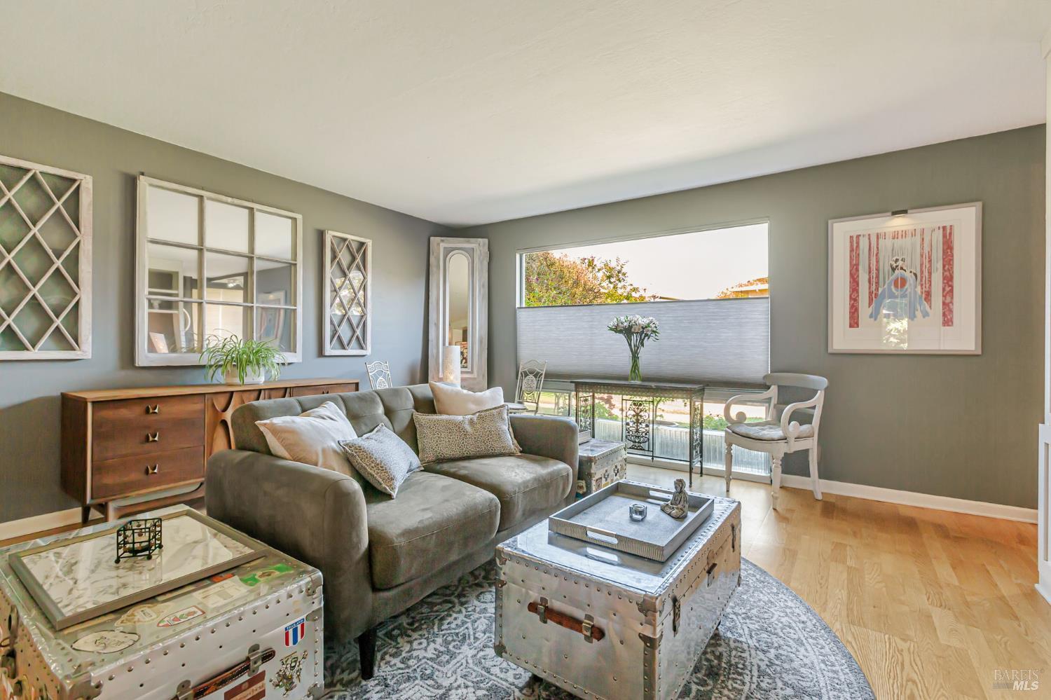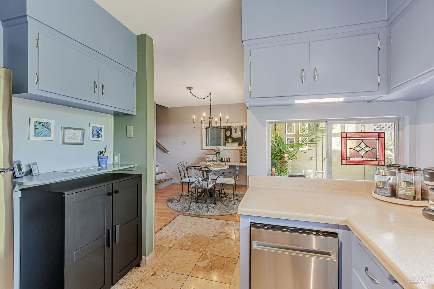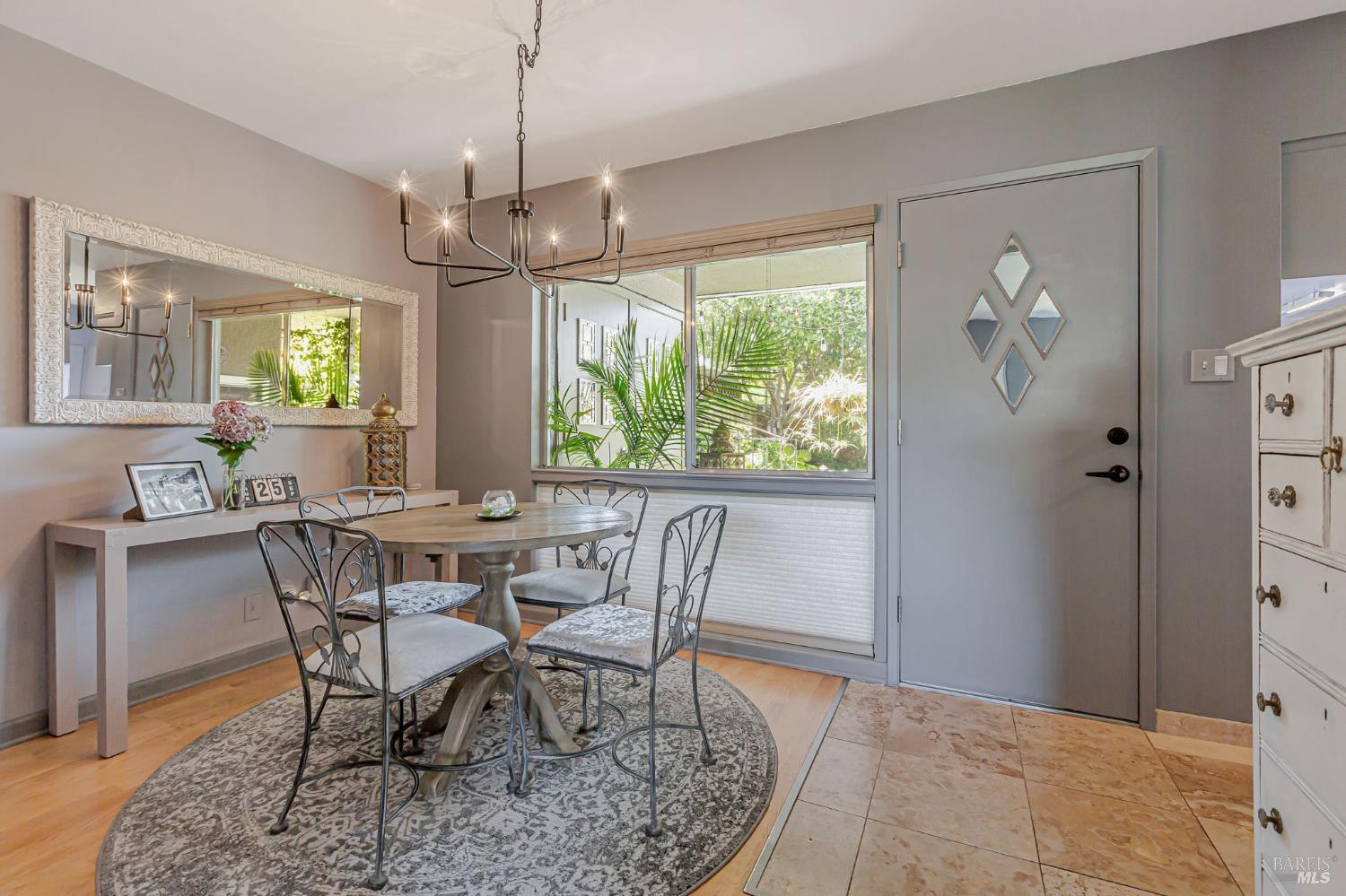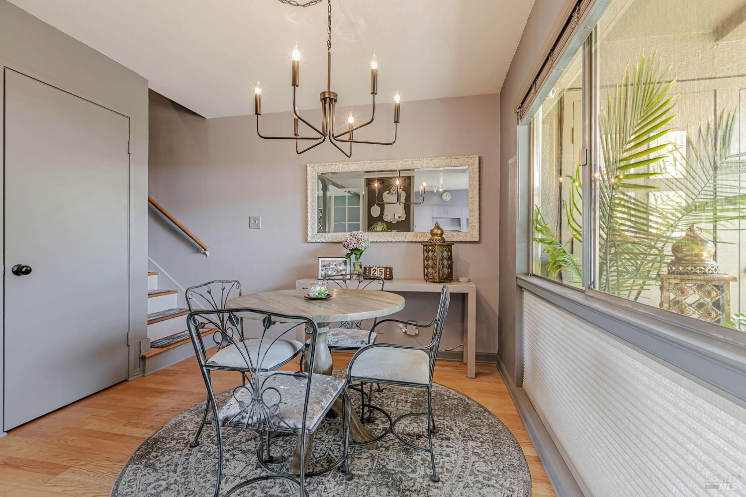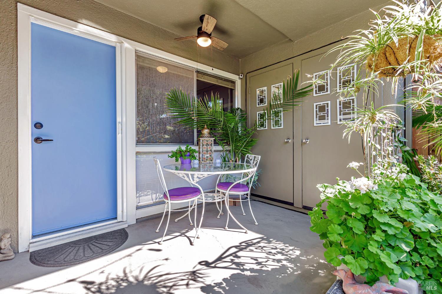Rare opportunity to make this spacious 3-bedroom, 1.5-bath townhouse your home in a sought-after community. Enter through the garden gate to one of the highlights of this homean extraordinary private garden oasis. Lush landscaping, mature plantings, and a covered patio with ceiling fan and accent lighting create a serene retreat, perfect for morning coffee, dining al fresco, or entertaining under the stars. Inside, the living room includes custom built-ins with a wine rack and striking arched beam, while the dining room offers garden views and connects to the kitchen with newer appliances, painted cabinets, travertine tile floors, and double sink. Upstairs, the generous primary bedroom features a customized closet system and ceiling fan, with laundry just steps away. Additional highlights include open floor plan, hardwood floors, updated lighting, custom paint, newer blinds, and west-facing dual-paned windows. The community offers a pool, clubhouse, EV charging stations, and beautiful landscape grounds. Monthly HOA INCLUDES property tax, PG&E, garbage, water, exterior maintenance, select interior maintenance (furnace, water heater, plumbing, electrical), landscaping, and exterior insurance. Embrace carefree living this is San Rafael Manor living at its finest!