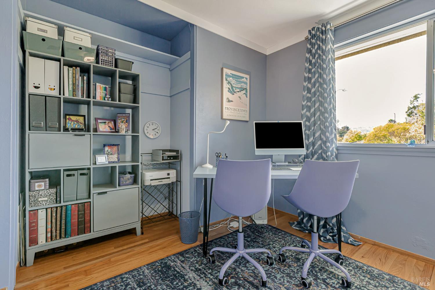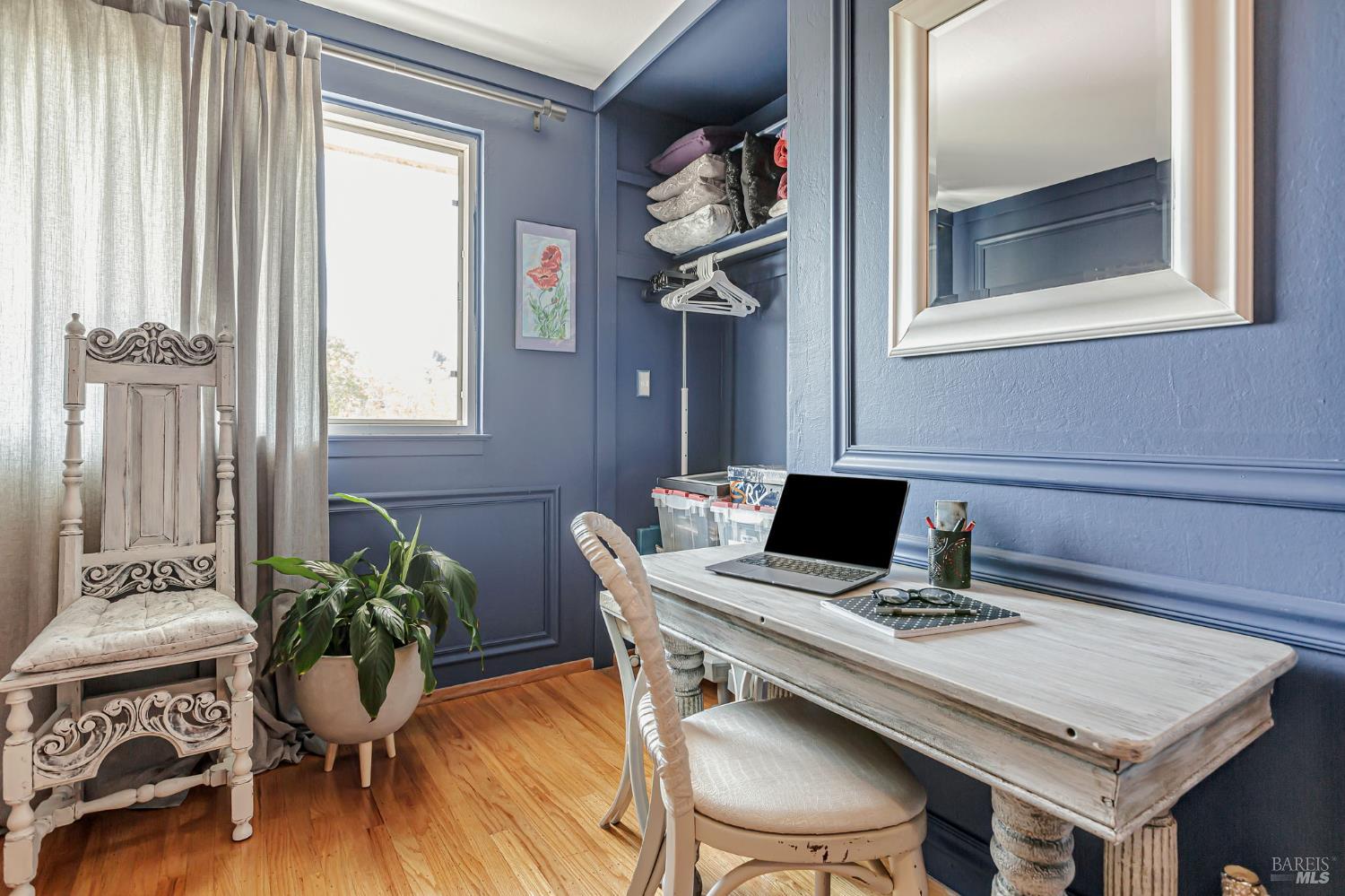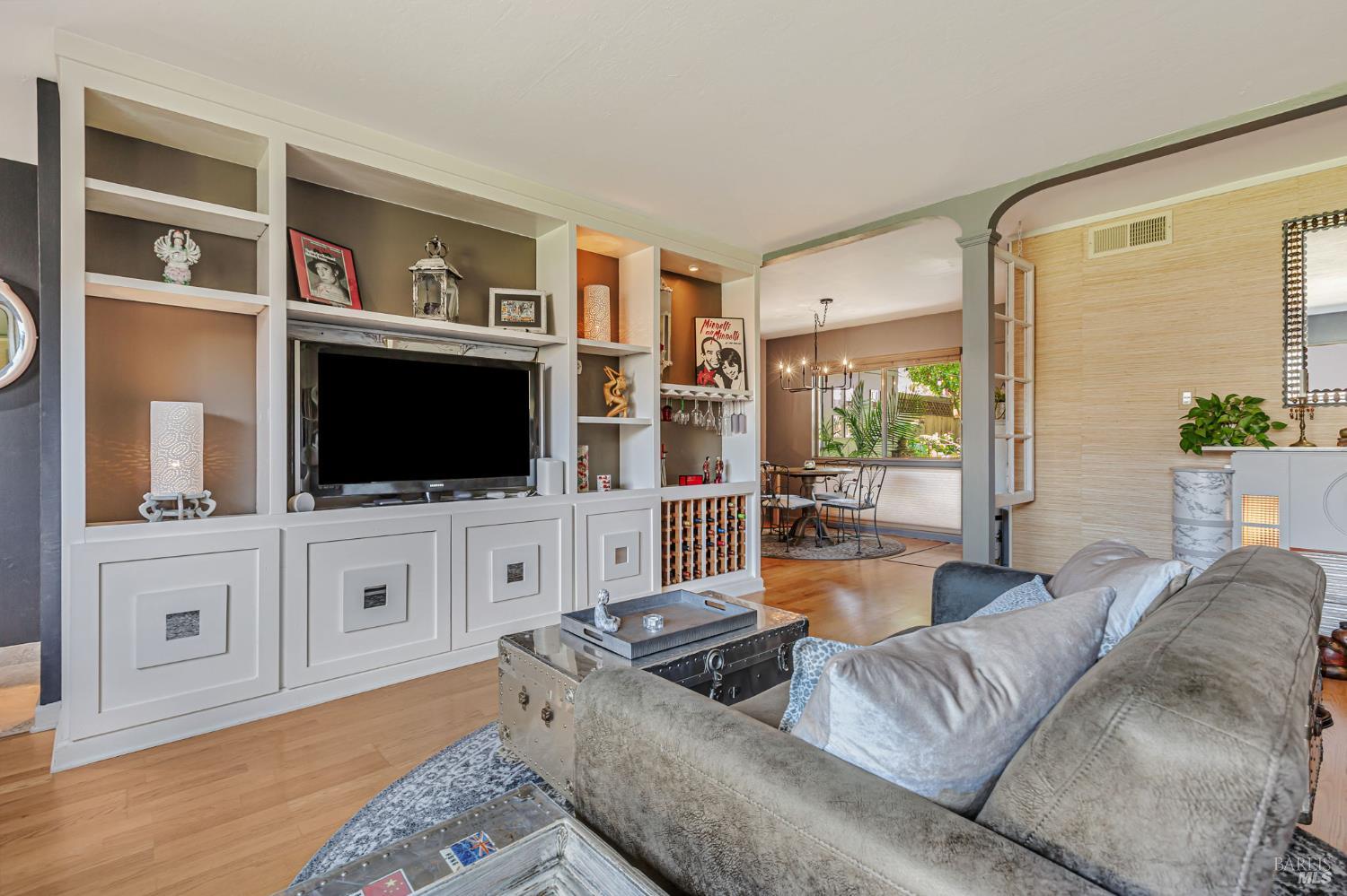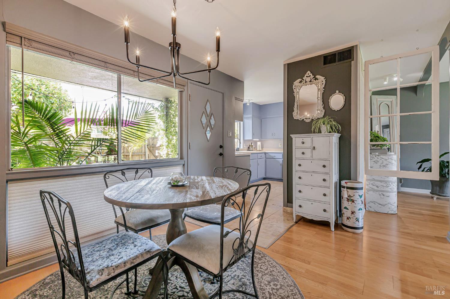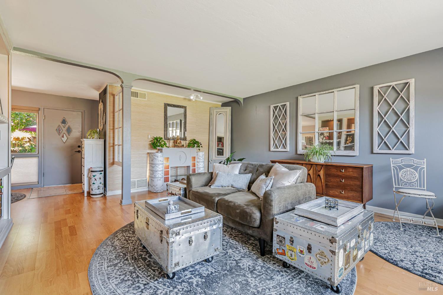 Rare opportunity to make this spacious 3-bedroom, 1.5-bath townhouse your home in a sought-after community. Enter through the garden gate to one of the highlights of this homean extraordinary private garden oasis. Lush landscaping, mature plantings, and a covered patio with ceiling fan and accent lighting create a serene retreat, perfect for morning coffee, dining al fresco, or entertaining under the stars. Inside, the living room includes custom built-ins with a wine rack and striking arched beam, while the dining room offers garden views and connects to the kitchen with newer appliances, painted cabinets, travertine tile floors, and double sink. Upstairs, the generous primary bedroom features a customized closet system and ceiling fan, with laundry just steps away. Additional highlights include open floor plan, hardwood floors, updated lighting, custom paint, newer blinds, and west-facing dual-paned windows. The community offers a pool, clubhouse, EV charging stations, and beautiful landscape grounds. Monthly HOA INCLUDES property tax, PG&E, garbage, water, exterior maintenance, select interior maintenance (furnace, water heater, plumbing, electrical), landscaping, and exterior insurance. Embrace carefree living this is San Rafael Manor living at its finest!