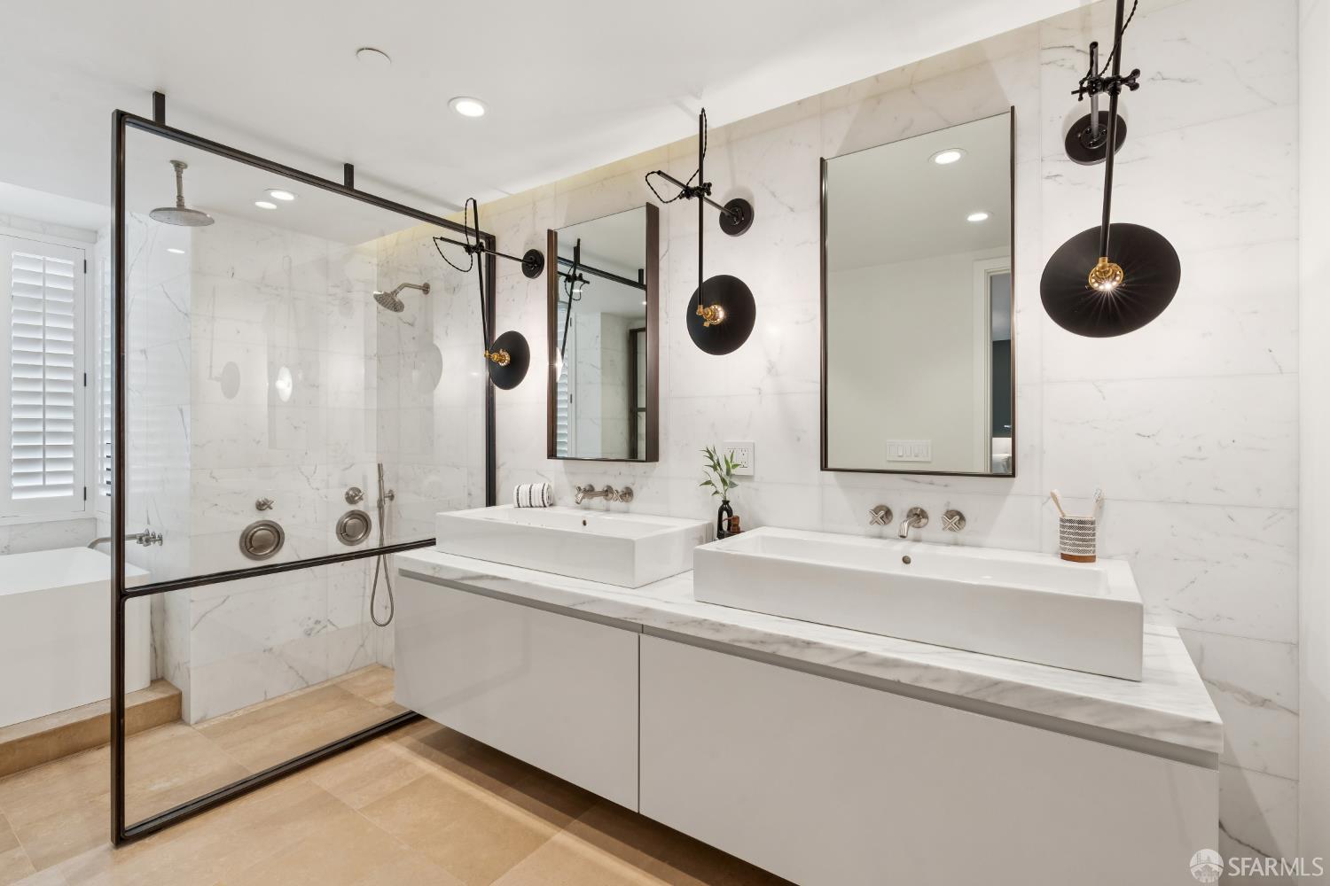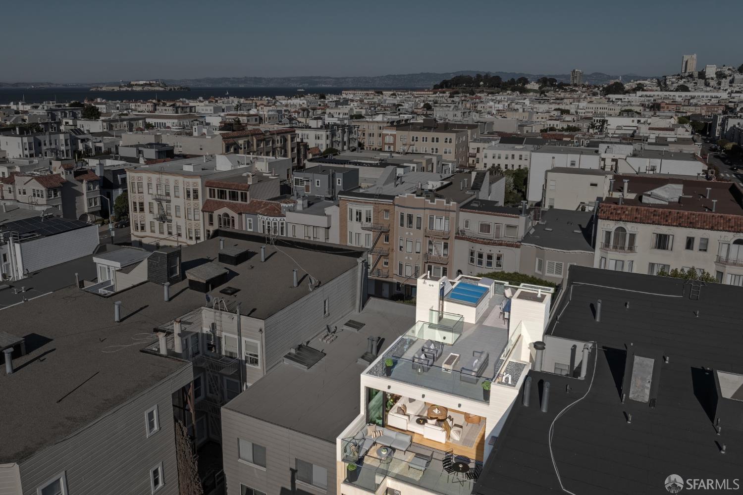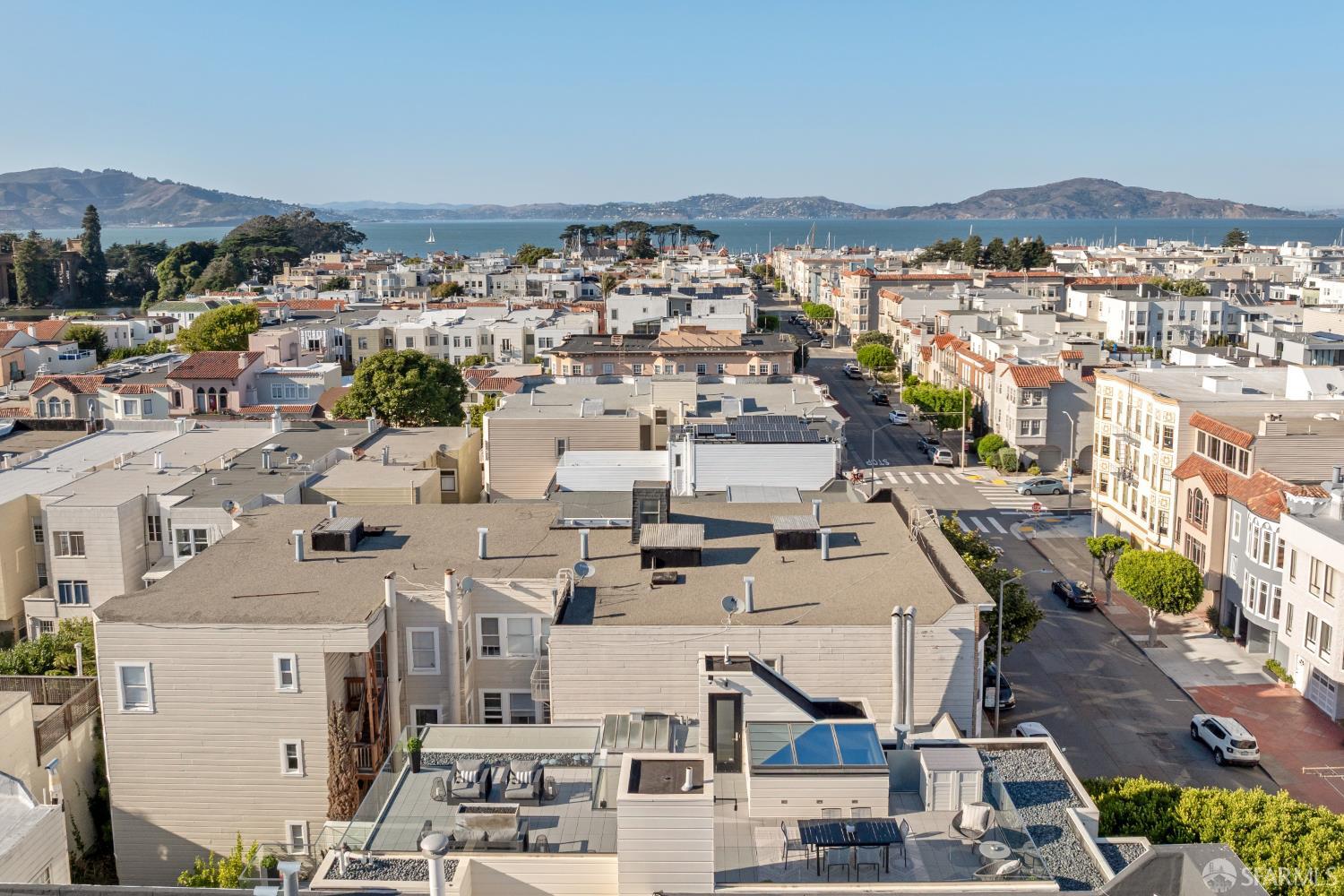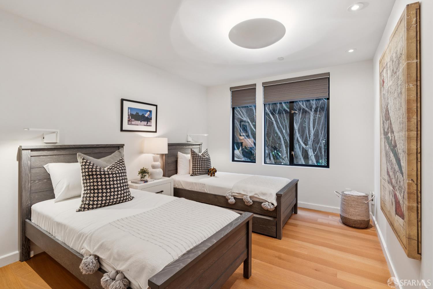 Perched atop the Marina, 3307 Broderick is a rare modern penthouse designed for effortless indoor/outdoor living. Completed in 2016 within an exclusive two-unit building and accessed by private elevator, this 4-bedroom, 3.5-bath home spans two levels and culminates in a deeded 690 sf private roof deck with a fire pit and sweeping 360 views of the Golden Gate Bridge, Palace of Fine Arts, and city skyline. The upper level offers a grand entertaining space where expansive Bonelli retractable doors open to a west-facing 285 sf terrace, perfect for dining al fresco or gathering with friends. The chef's kitchen boasts Miele appliances, a wine refrigerator, and a striking Statuario Carrara marble island. All bedrooms occupy one level, including a serene primary suite with spa-inspired bath, soaking tub, double vanity, and walk-in closet. High ceilings, radiant-heated oak floors, skylights, and integrated smart-home features complement deeded garage parking. Just steps from the Marina Green and Chestnut Street's vibrant shops and dining, this residence offers San Francisco luxury at its finest.