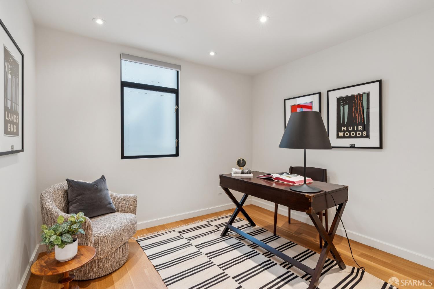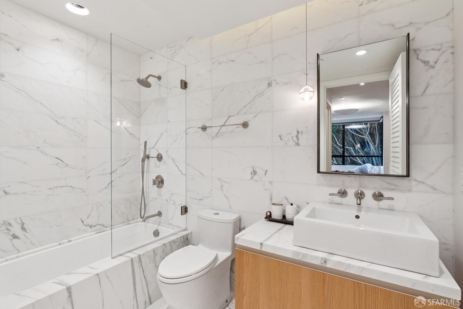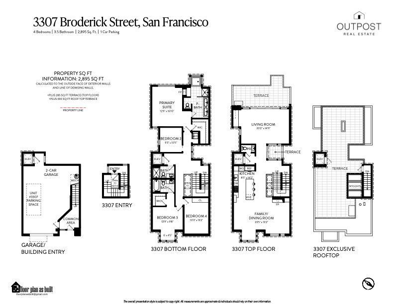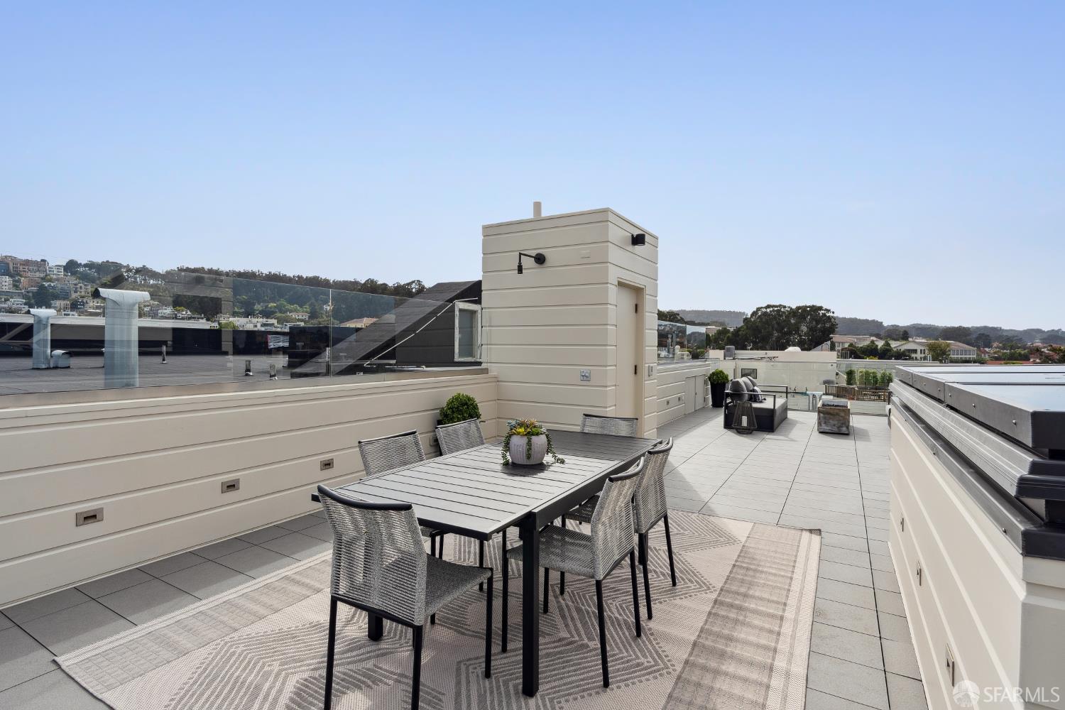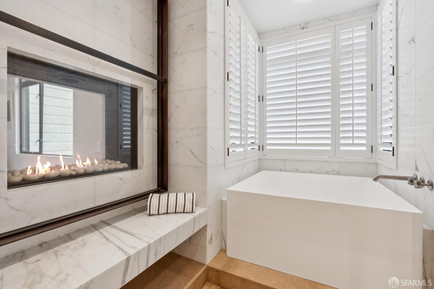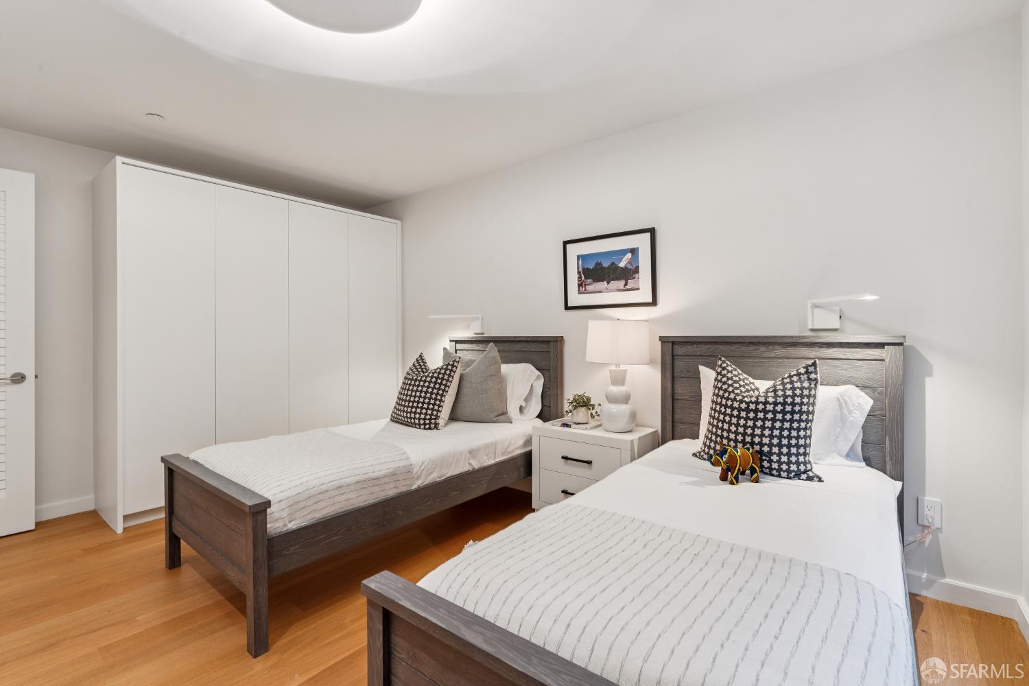Perched atop the Marina, 3307 Broderick is a rare modern penthouse designed for effortless indoor/outdoor living. Completed in 2016 within an exclusive two-unit building and accessed by private elevator, this 4-bedroom, 3.5-bath home spans two levels and culminates in a deeded 690 sf private roof deck with a fire pit and sweeping 360 views of the Golden Gate Bridge, Palace of Fine Arts, and city skyline. The upper level offers a grand entertaining space where expansive Bonelli retractable doors open to a west-facing 285 sf terrace, perfect for dining al fresco or gathering with friends. The chef's kitchen boasts Miele appliances, a wine refrigerator, and a striking Statuario Carrara marble island. All bedrooms occupy one level, including a serene primary suite with spa-inspired bath, soaking tub, double vanity, and walk-in closet. High ceilings, radiant-heated oak floors, skylights, and integrated smart-home features complement deeded garage parking. Just steps from the Marina Green and Chestnut Street's vibrant shops and dining, this residence offers San Francisco luxury at its finest.