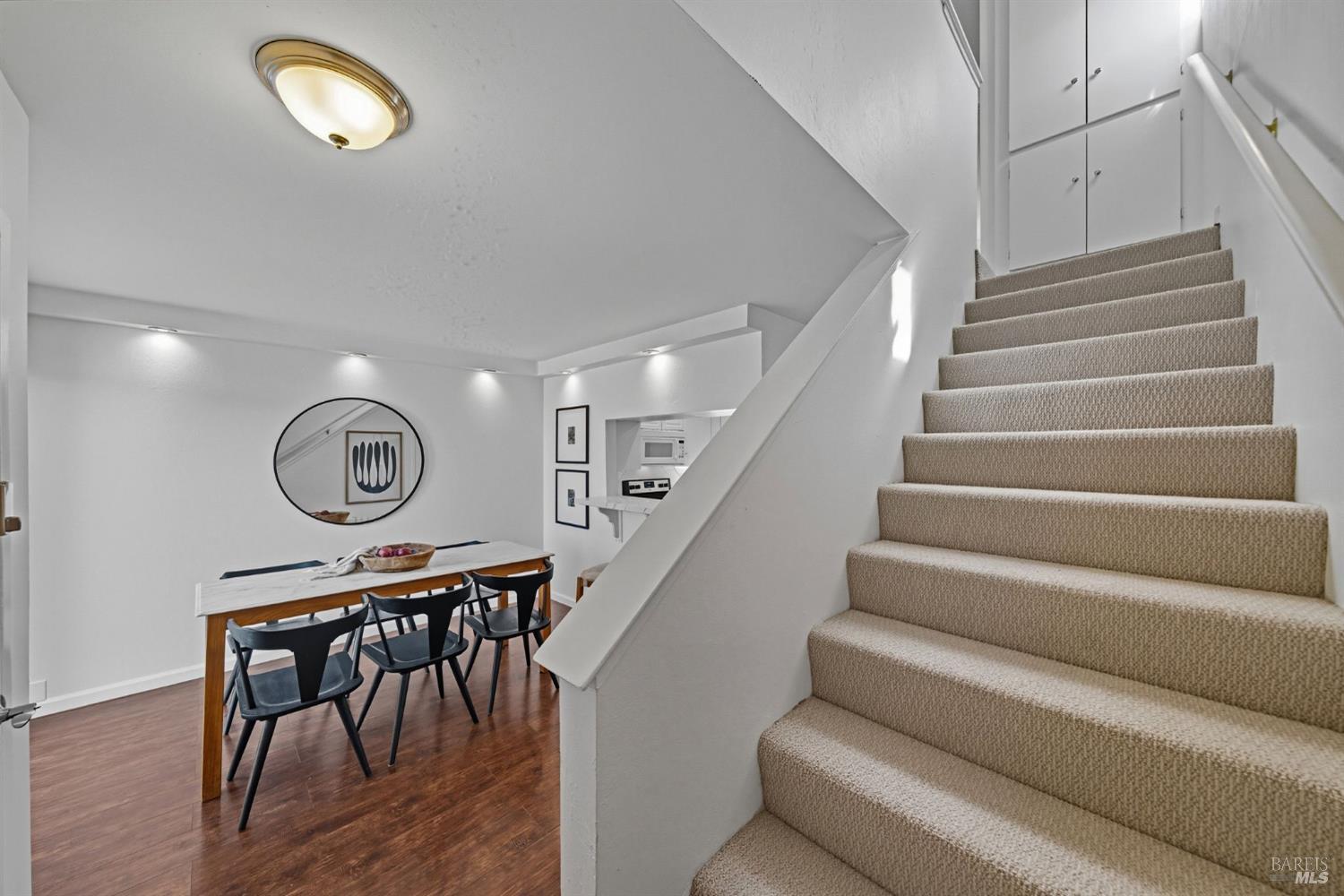 Bright and move-in ready, this updated two-story end-unit condo offers 2 bedrooms and 1.5 bathrooms in a convenient San Rafael location. The main level features a welcoming living area with fireplace, along with both a large patio and a balcony off the living room perfect for indoor-outdoor living. Updates include a refreshed kitchen, new carpet, and fresh paint. Enjoy the ease of covered parking and a community pool, with quick freeway access for commuters heading to San Francisco, the East Bay, or north to the wine country. A stylish Marin condo with upgrades, outdoor space, and modern comfort.