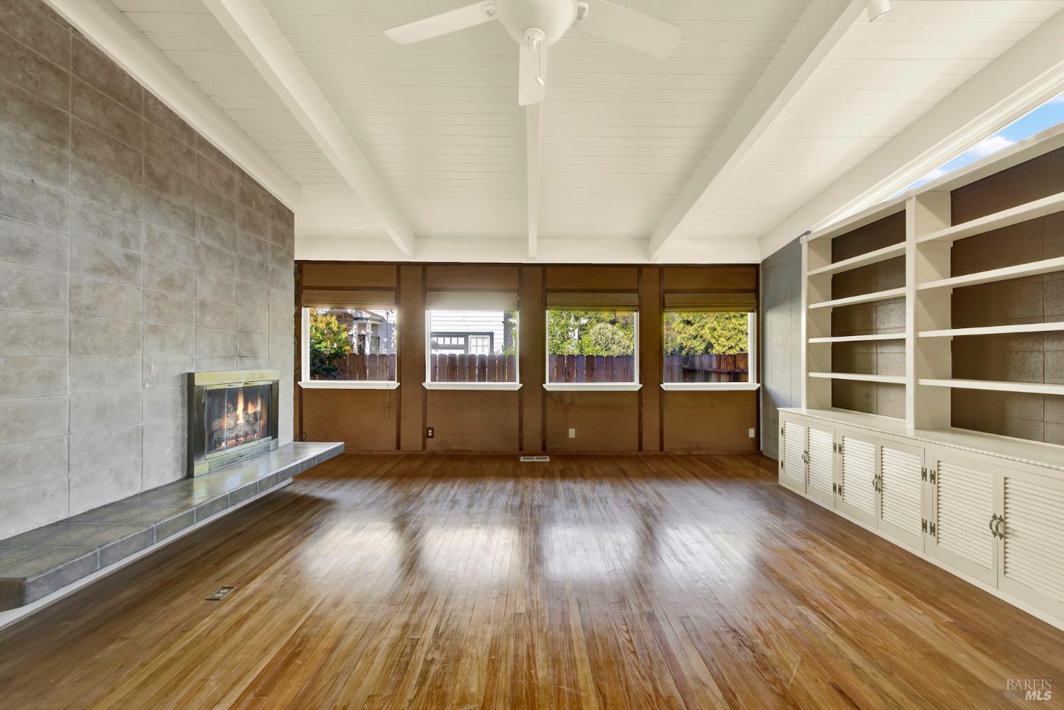 Discover this custom mid-century modern gem in the heart of Vacaville. Eichler-inspired design meets modern comfort in this 3 bed, 2 bath, 1,511 SF home featuring a striking dual-sided concrete fireplacethe true centerpiece of the living area. Large windows, exposed beam ceilings, and a thoughtfully updated kitchen enhance the home's timeless character. The finished basement offers endless potential for a workshop, office, or creative space. Enjoy privacy with no rear neighbors perfectly located within walking distance to downtown shops, dining, schools, and parks, this well-maintained home balances convenience with architectural charm.