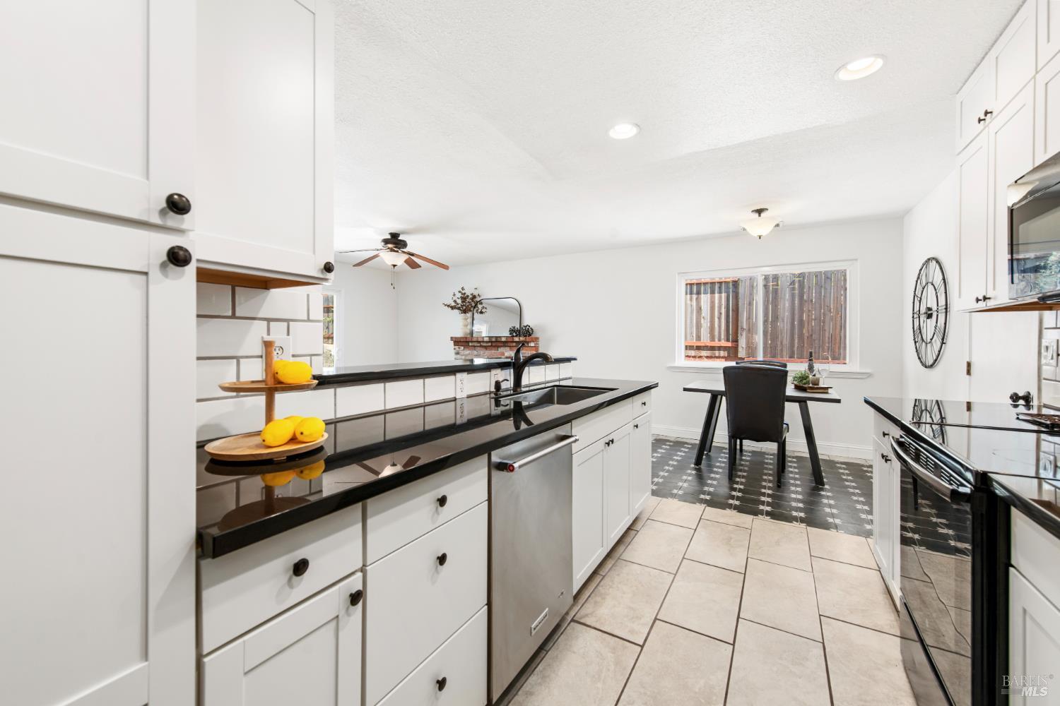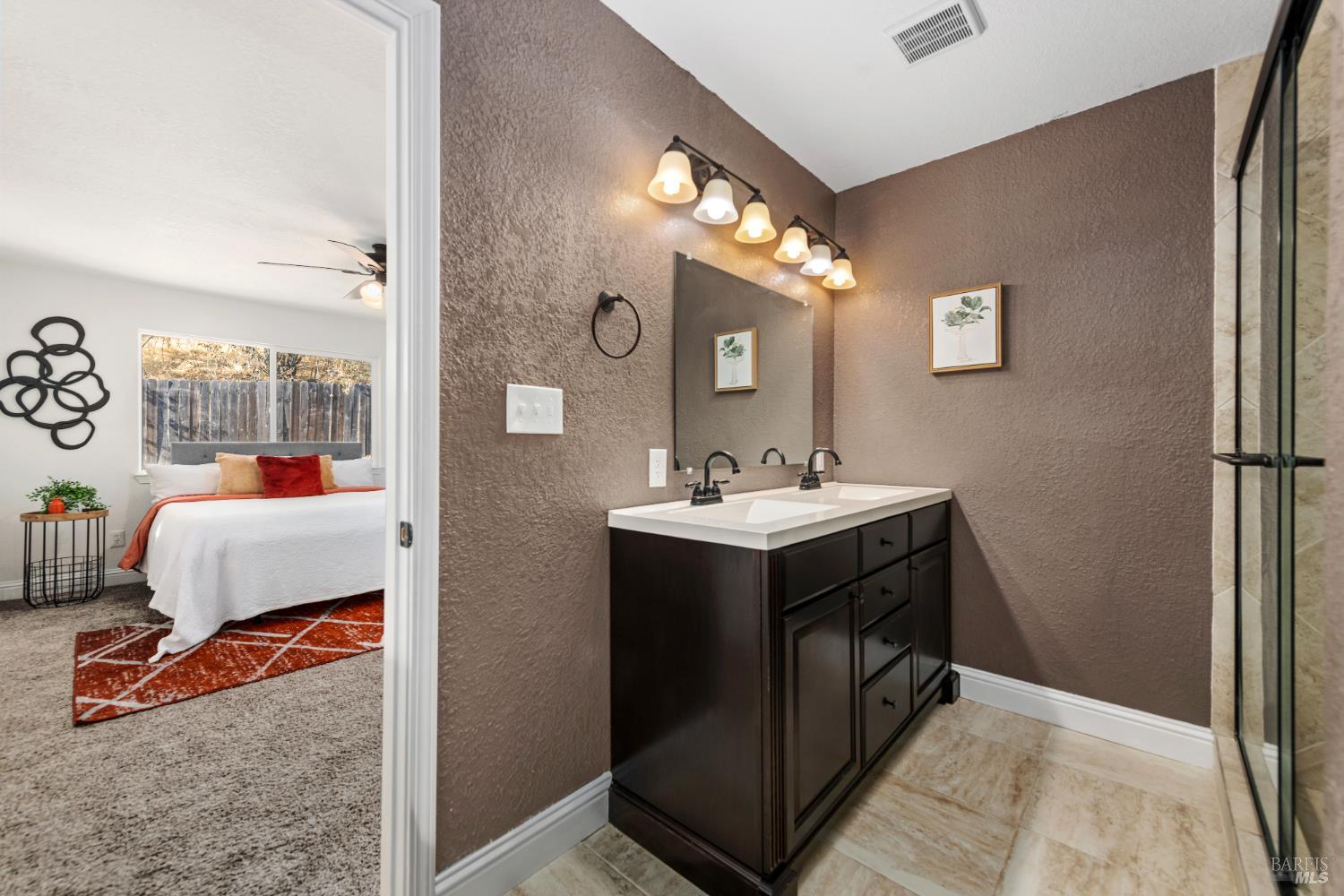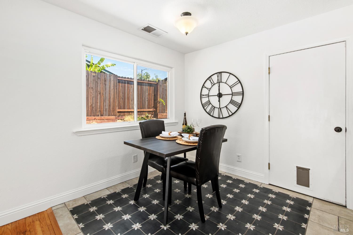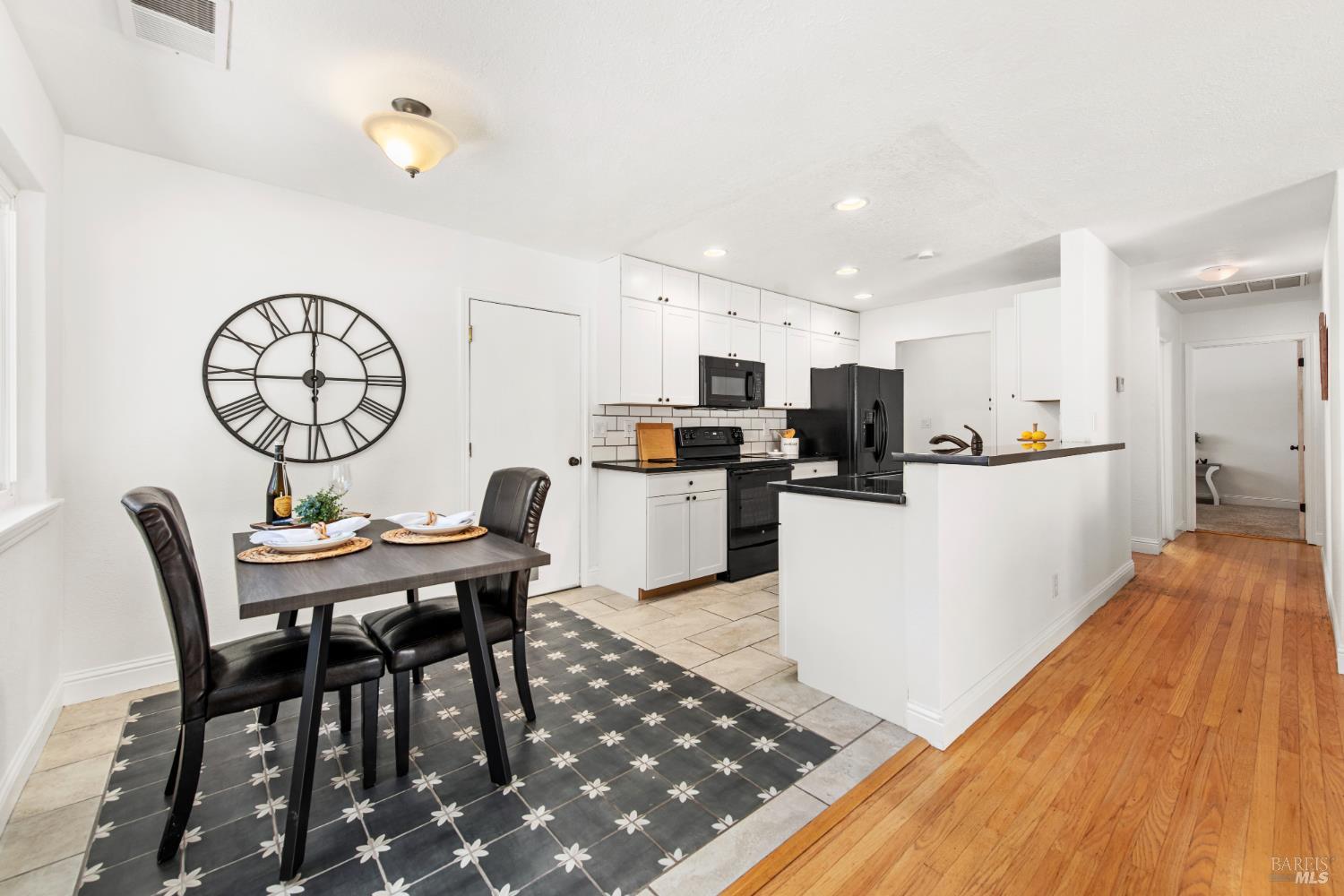 Welcome to this beautifully remodeled single-level home in the heart of Vacaville! This 3-bedroom, 2-bath gem was thoughtfully updated in 2016 w/a stunning primary suite addition. The spacious retreat offers a walk-in closet, sliding glass doors opening to the backyard, & a spa-like bathroom featuring a double-sink vanity & an oversized walk-in shower w/dual shower heads. Inside, you'll find a bright & functional layout. Living Area w/original hardwood floors showcase timeless charm. The kitchen is stylishly remodeled w/black granite countertops, custom tile backsplash, dovetail drawers, & black appliances incl refrigerator that conveys! The hallway bath remodel incls a custom tile surround!. The bedrooms have overhead lighting. Major system updates include Roof, A/C & ducting 9 years old, Dual-pane windows throughout & Water heater replaced 5 yrs ago. This 0.16-acre front & backyard lot been cleared & are ready for you to create your dream landscape. Extra perks incl. add'l off-street parking in front & behind the side gate. No HOA! No Mello Roos! Not in a Fire Zone! The prime location is just blocks from Hwy 80, Will C Wood High, Costco & more. Close to TAFB, downtown Vacaville & nearby country living. This home truly reflects pride of ownership & timeless taste-A must see