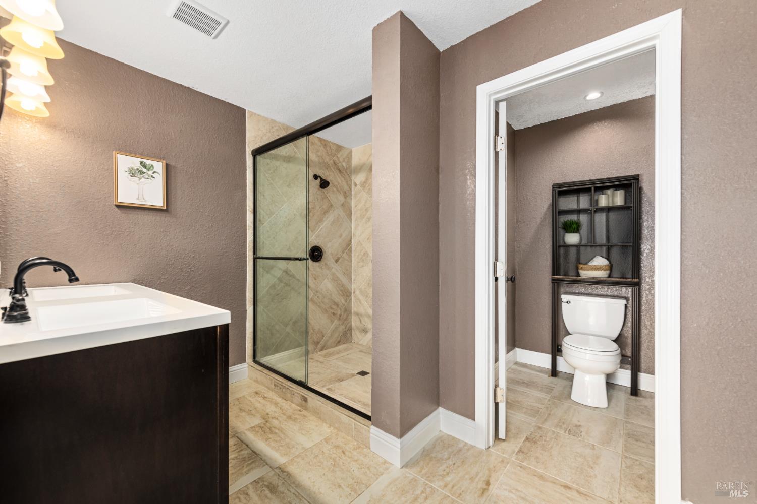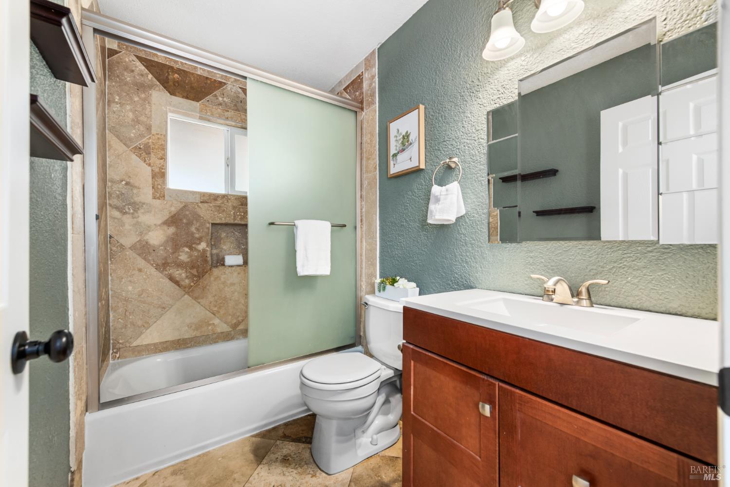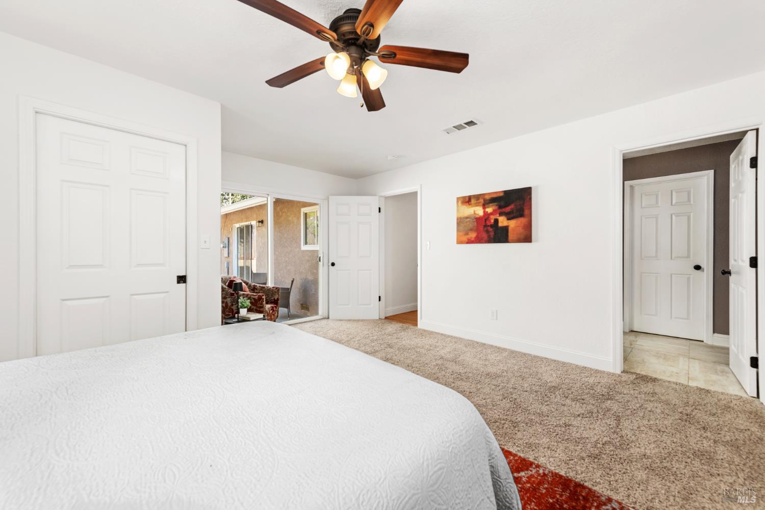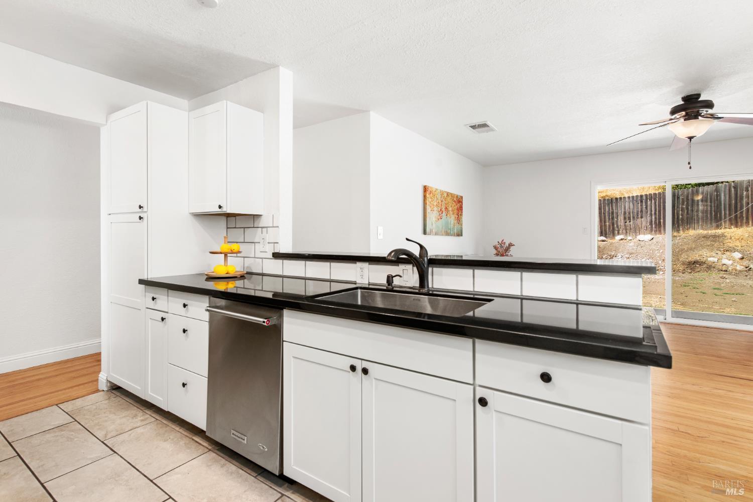 Welcome to this beautifully remodeled single-level home in the heart of Vacaville! This 3-bedroom, 2-bath gem was thoughtfully updated in 2016 w/a stunning primary suite addition. The spacious retreat offers a walk-in closet, sliding glass doors opening to the backyard, & a spa-like bathroom featuring a double-sink vanity & an oversized walk-in shower w/dual shower heads. Inside, you'll find a bright & functional layout. Living Area w/original hardwood floors showcase timeless charm. The kitchen is stylishly remodeled w/black granite countertops, custom tile backsplash, dovetail drawers, & black appliances incl refrigerator that conveys! The hallway bath remodel incls a custom tile surround!. The bedrooms have overhead lighting. Major system updates include Roof, A/C & ducting 9 years old, Dual-pane windows throughout & Water heater replaced 5 yrs ago. This 0.16-acre front & backyard lot been cleared & are ready for you to create your dream landscape. Extra perks incl. add'l off-street parking in front & behind the side gate. No HOA! No Mello Roos! Not in a Fire Zone! The prime location is just blocks from Hwy 80, Will C Wood High, Costco & more. Close to TAFB, downtown Vacaville & nearby country living. This home truly reflects pride of ownership & timeless taste-A must see