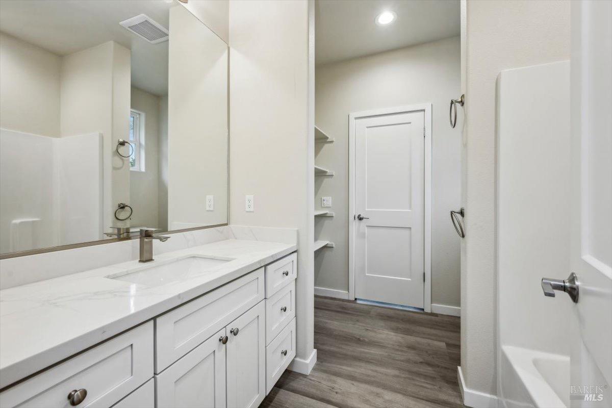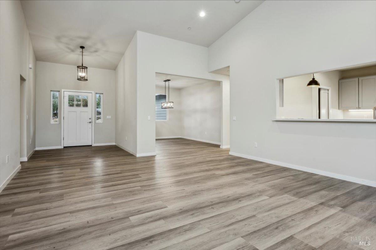 Welcome to this brand new, upgraded single level home situated on a quiet cul-de-sac, offering a perfect blend of privacy and modern amenities. The thoughtfully designed floor plan ensures maximum privacy, with the primary suite located on one side of the house and the two guest bedrooms, connected by a Jack and Jill bathroom, on the other. The primary suite offers an expansive walk-in closet, a luxurious soaking tub and an enclosed shower. An additional room provides flexible space that can be used as an office, playroom, or den to suit your needs. Half bathroom right off kitchen and living room for guests. The heart of the home is the kitchen, featuring elegant quartz countertops, stainless steel appliances, and a convenient breakfast bar, perfect for casual dining or entertaining. Large windows throughout the home offer breathtaking views of an oak tree-studded property, bringing nature's beauty right into your living space. Step out on to your covered deck to breath the fresh air and listen to the birds. A huge in-home laundry room offers ample space for all your laundry needs, adding to the home's practicality and convenience. Level driveway, large 2 car garage with ample room for parking and storage. Under home space to add-on .