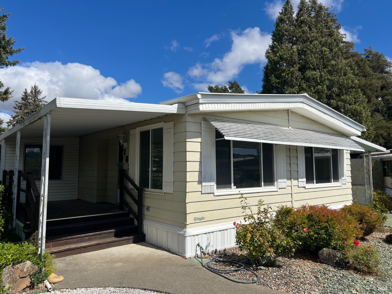 Prime cul-de-sac location with vineyard views - 2BR/2BA home. Open living/dining area with built-in buffet, kitchen with island and two pantries, plus adjoining family room. Light-filled with skylight tubes, new carpet, and fresh paint. Enclosed sun porch, multiple decks, and two storage sheds. Covered tandem carport plus ample street parking. Community pool, clubhouse, and recreation areas in a desirable 55+ park.