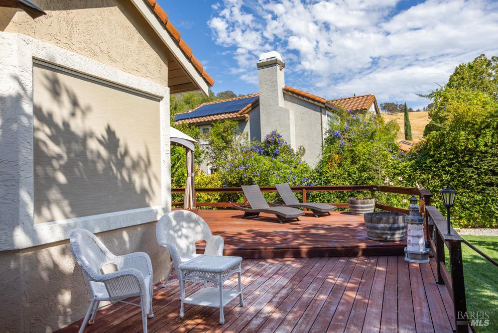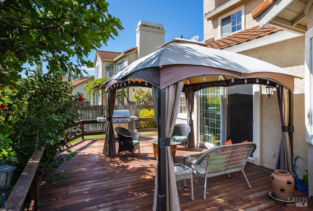Welcome to this stunning 4-bedroom, 3-full bathroom home nestled in the highly sought-after gated community of Rancho Solano. Meticulously maintained and move-in ready, this inviting residence offers the perfect blend of comfort, style, and convenience. Inside, enjoy a warm and welcoming atmosphere with elegant features such as French doors leading to a balcony from the spacious living room. The beautifully manicured backyard is a private oasis, complete with lush landscaping, fruit trees, and multiple seating and relaxation areas, ideal for entertaining or simply unwinding. Located just a short walk, jog, or golf cart ride to the clubhouse, residents can enjoy exceptional amenities including dining, golf with pro shop access, a gym, pool, tennis and pickleball courts, and two private parks. Come and live in the Rancho Solano community, which offers an active lifestyle with convenient access to shopping, wine tasting in nearby Suisun Valley and Napa Valley, and local eateries. Whether you're relaxing at home or exploring nearby attractions, this property provides the ideal setting for comfortable, stylish living in one of Fairfield's most desirable neighborhoods.