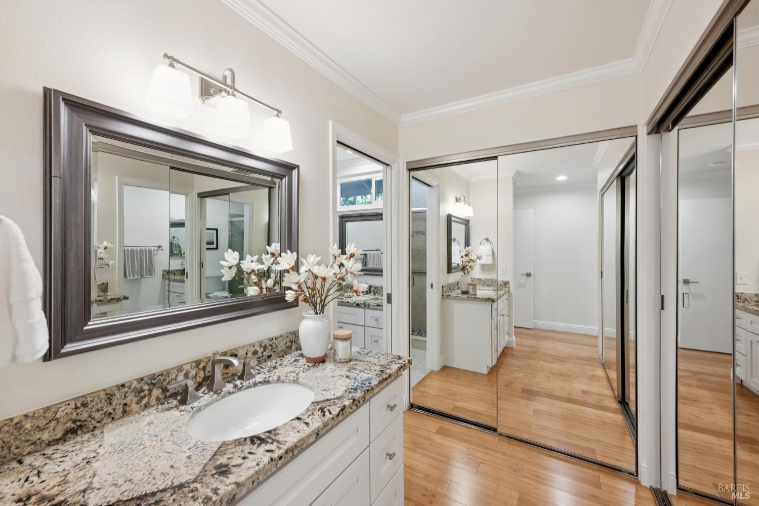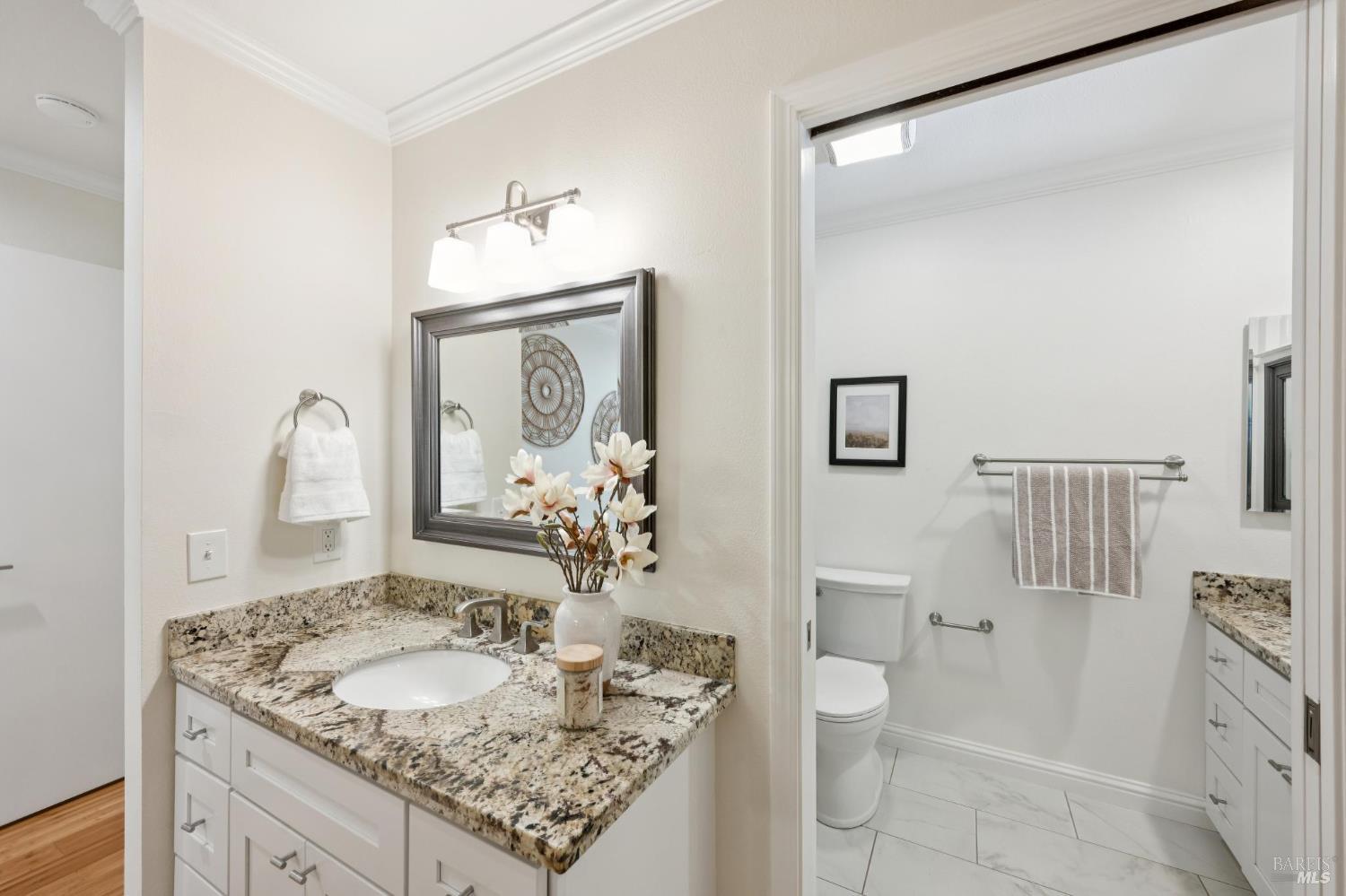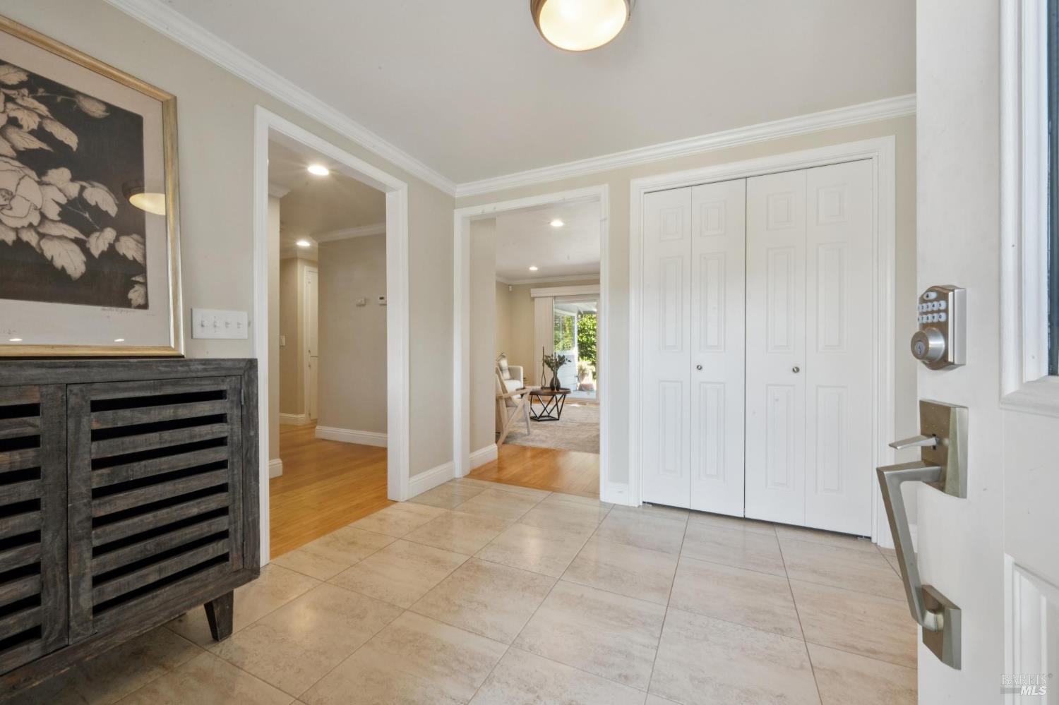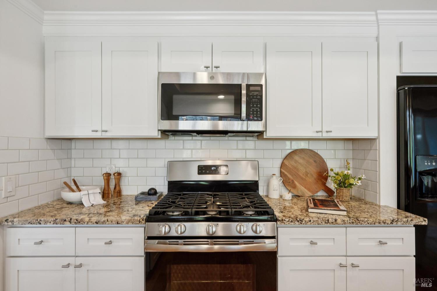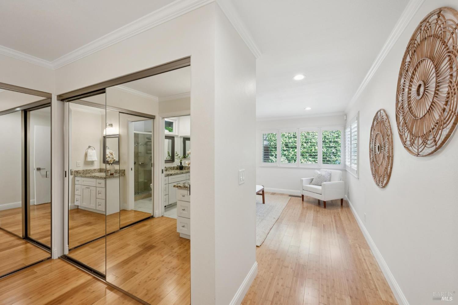Pristine home with classic beauty and thoughtful updates throughout. This 2-bedroom, 2-bath residence with an additional den features gleaming bamboo flooring and abundant natural light. The spacious living room offers crown molding, plantation shutters, a gas fireplace with timeless surround, and built-in bookcases for charm and function. The bright kitchen includes granite countertops and white cabinetry, opening to a cozy den or dining area. Updated baths feature a tub/shower combo in one and dual sinks with a walk-in shower in the primary suite. Additional upgrades include a new electrical panel and a whole-house generator. Lovely gardens surround the expansive back patio, where a covered outdoor seating area provides year-round living space, perfect for entertaining friends and family. Nestled in Oakmont, a 55+ community in Sonoma County offering golf courses, clubhouses, swimming pools, and scenic trails. Enjoy the wide, quiet street and surrounding hills in this move-in ready home!