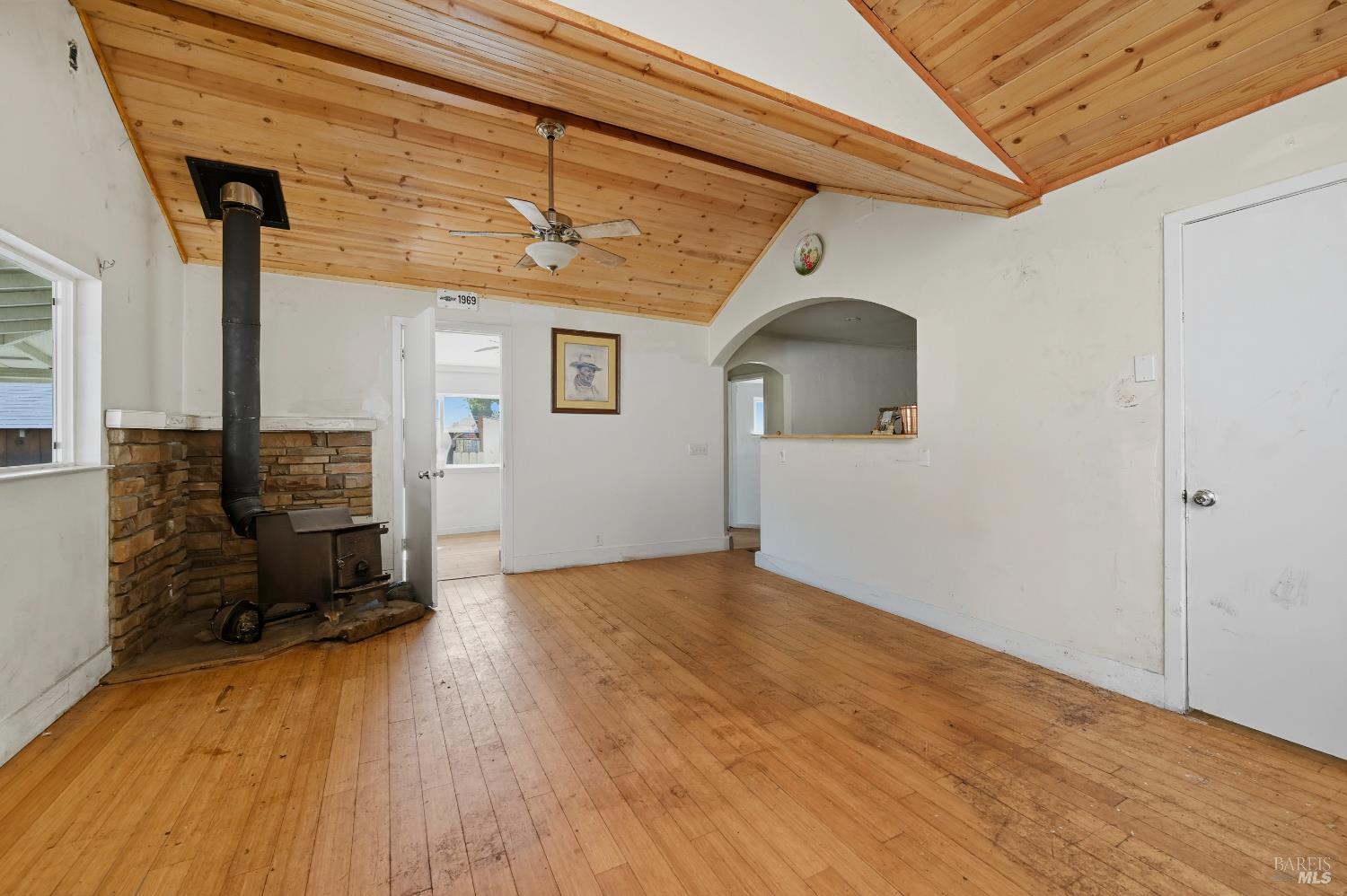Welcome to 625 10th Street, a two-bedroom, one-bath home with a one-car garage located in the heart of Downtown Lakeport. This charming cosmetic fixer blends comfort, style, and convenience, offering the perfect opportunity to make it your own while enjoying one of Lakeport's most desirable neighborhoods. Upgrades include modernized electrical and plumbing systems, a mini-split system for year-round comfort, and knotty pine vaulted ceilings that create a cozy, inviting atmosphere. Hardwood floors add warmth and character, while a woodstove is perfect for chilly evenings. Outdoor decking offers a great spot to relax and enjoy Lake County's natural beauty. This home provides peace of mind with essential upgrades already completed, while leaving room for your personal touch. Just blocks from local shops, restaurants, and community activities, this property offers a lifestyle where affordability meets charm. Don't miss this chance to own a true Lakeport gem!