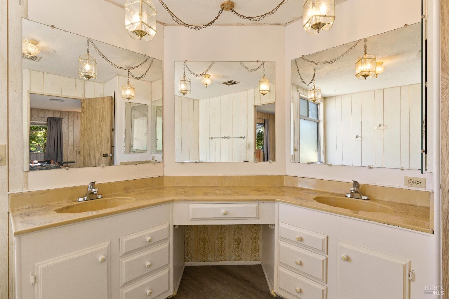 THIS SPACIOUS 3 bedroom, 2 bathroom manufactured home located in a gated 55+ park offers comfort and many upgrades. The open concept design seamlessly connects the living room and updated kitchen featuring new flooring, quartz countertops, new appliances and ample cabinet space for storage. The dining area is perfect for entertaining or quiet meals. The roomy primary bedroom and en-suite bathroom are located at one side of the home while guest bedrooms and second bathroom are situated at the opposite side. There are energy efficient split units in each of the three bedrooms as well as the living room for heating and cooling. New flooring throughout. For added storage there is a shed at the end of the carport. Mountain and vineyard views! Lake Village Estates offers a clubhouse, pool, storage area for boats and RVs. Just minutes from wineries!
